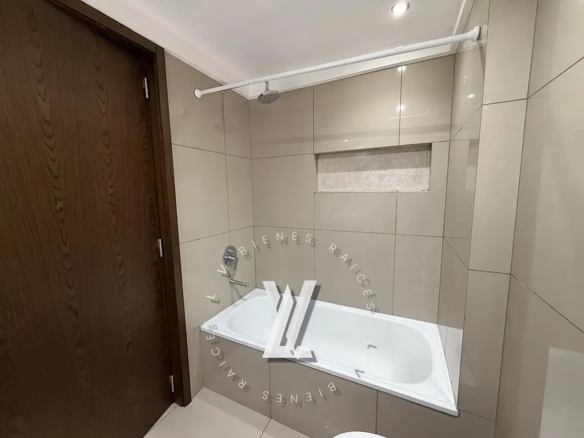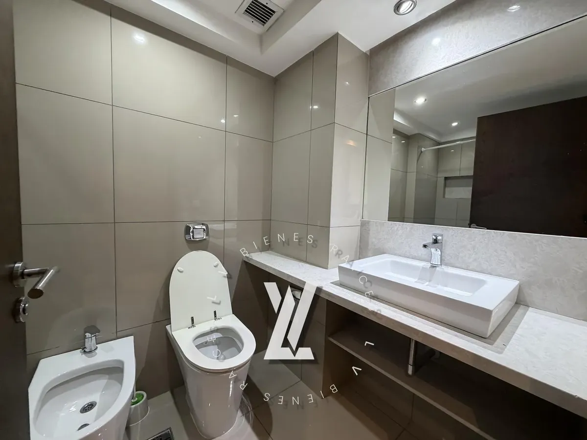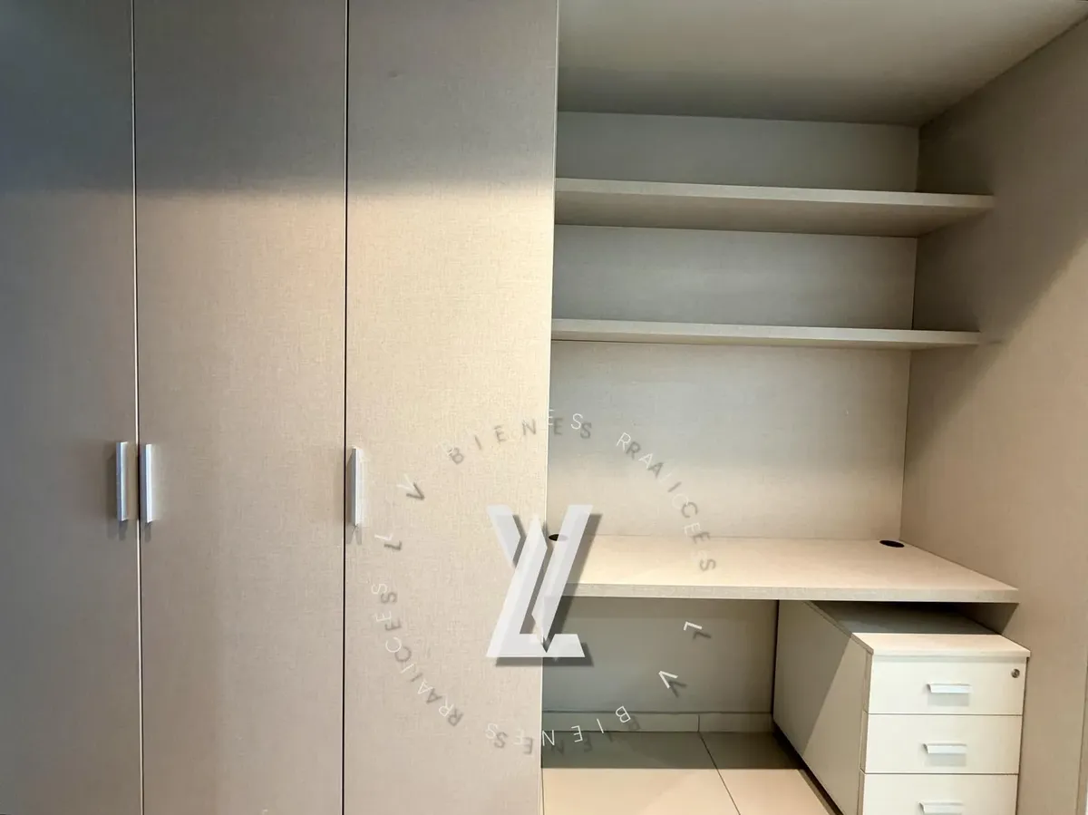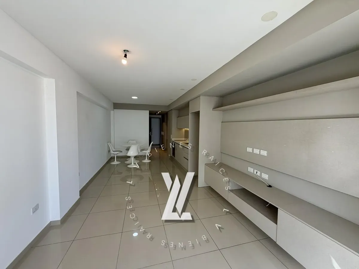 Studio apartment for rent in Palermo Chico. One main room with natural light, with space for a living and sleeping area, plus a functional kitchen with storage and a full bathroom. The unit is in a well-maintained building in a residential setting.