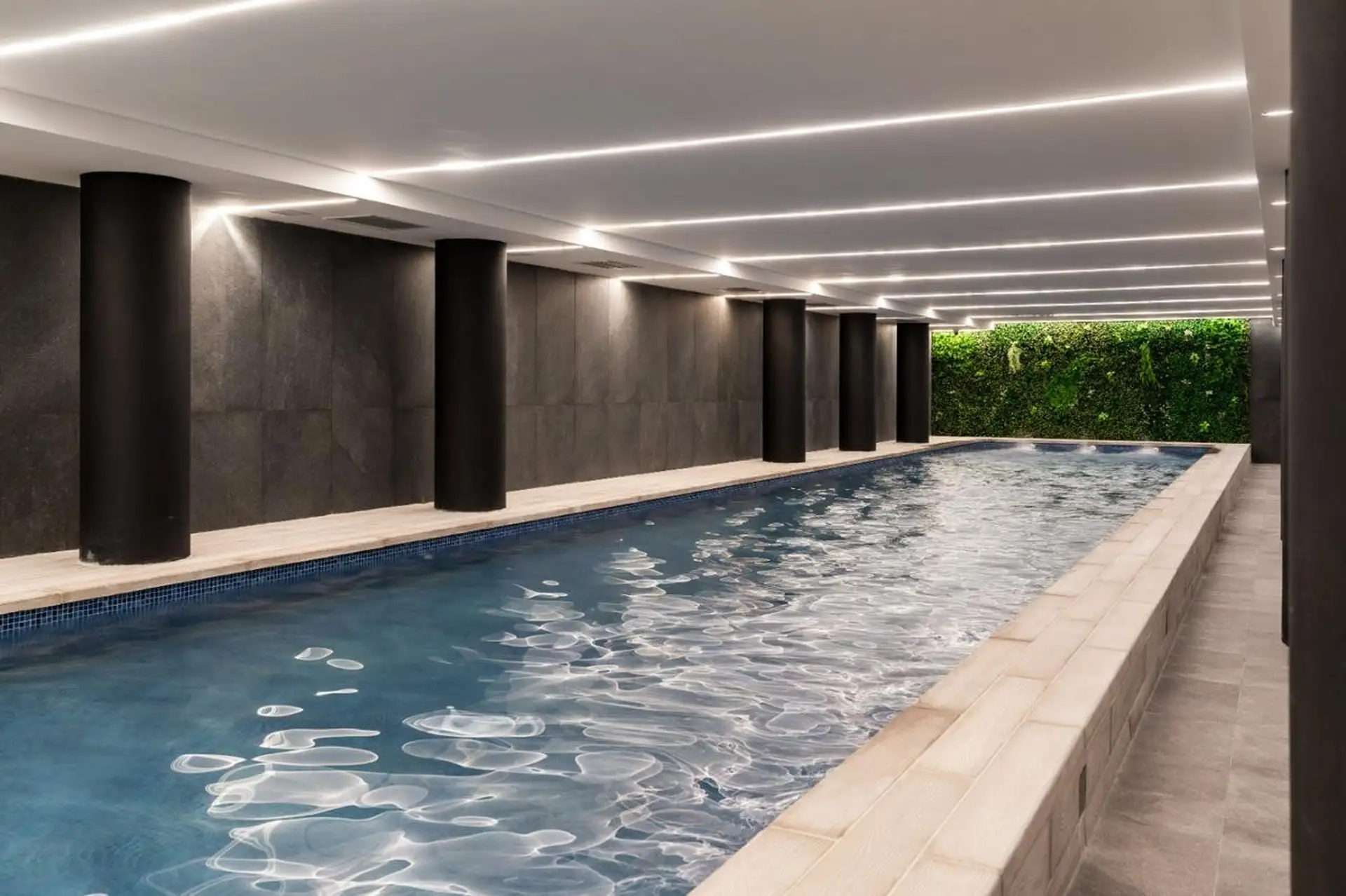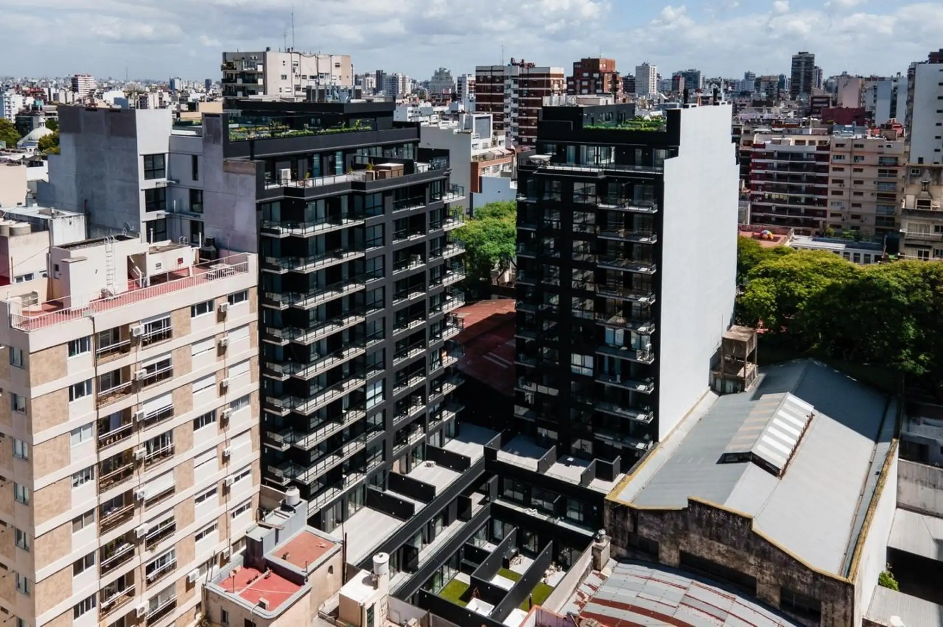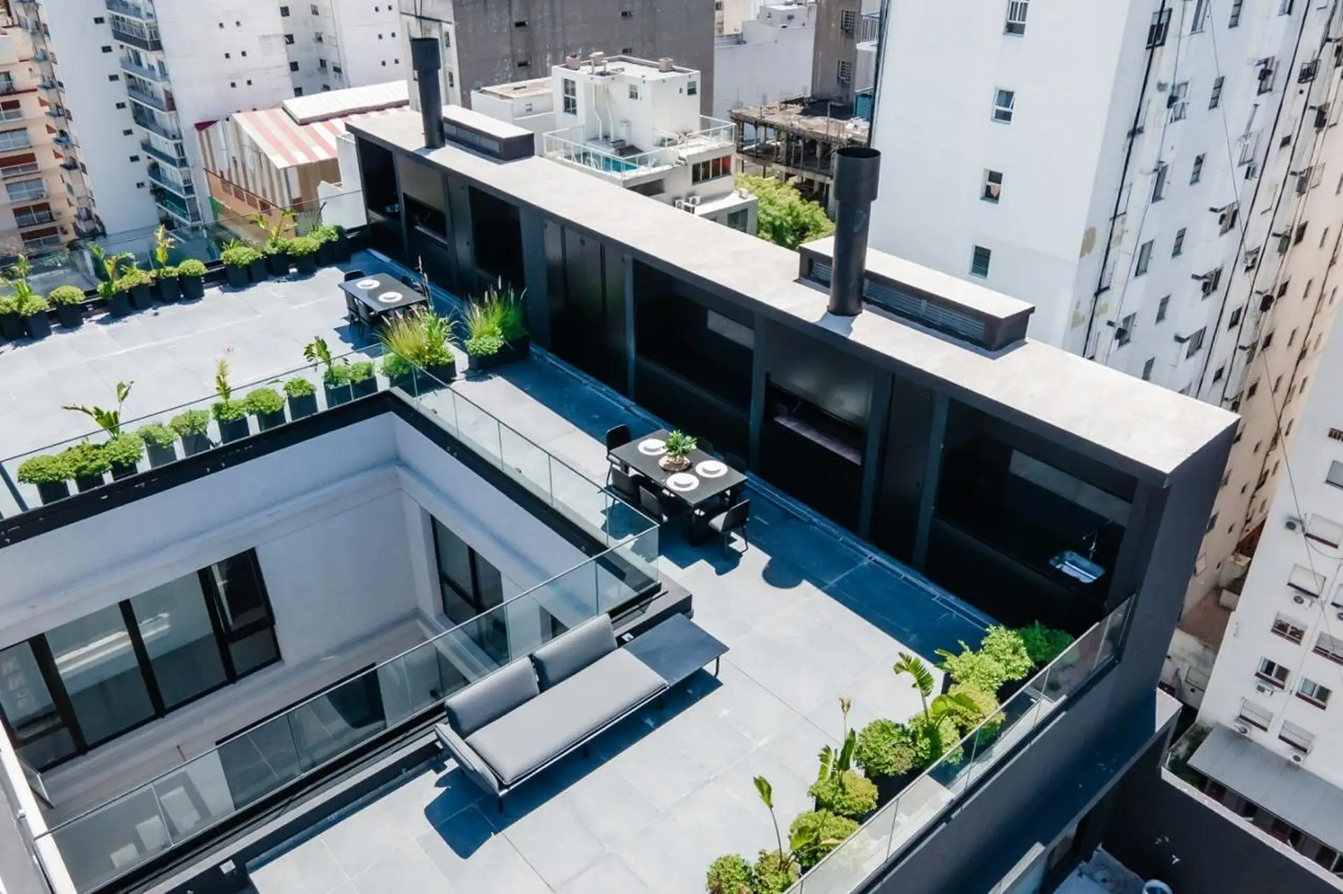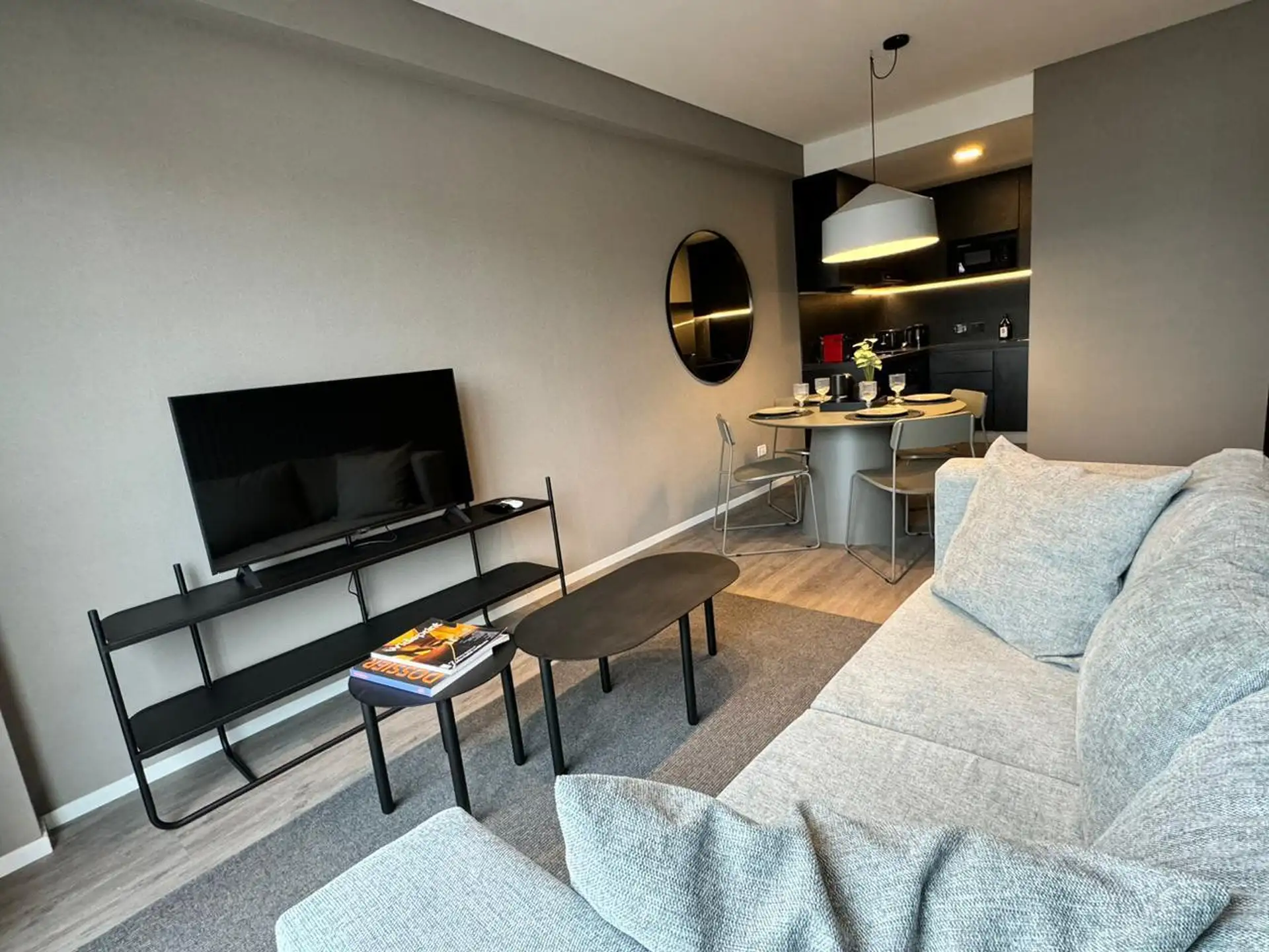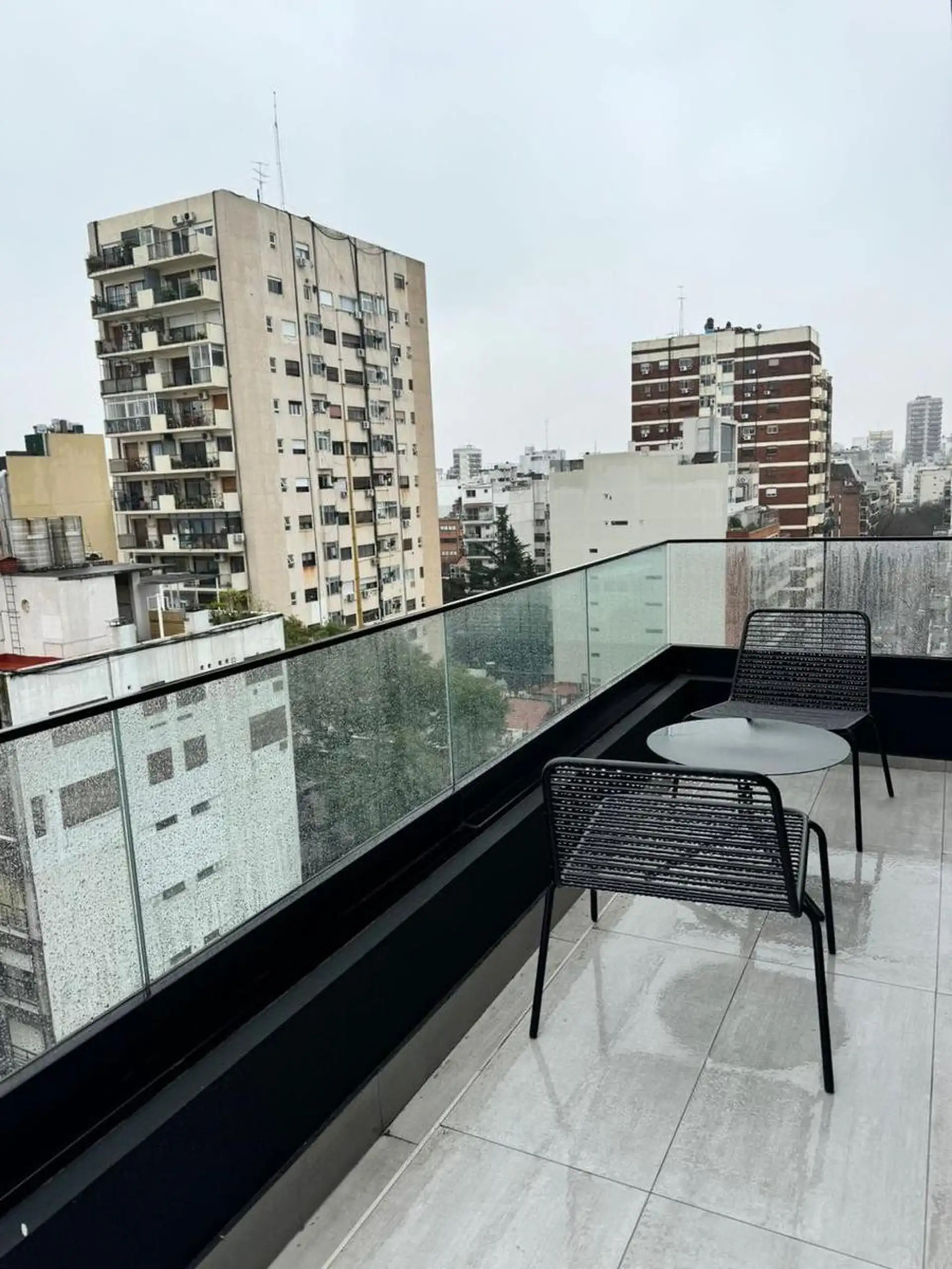 Two-room apartment in Palermo, furnished and fully equipped, with a private balcony. It includes a living-dining area, integrated kitchen with oven, fridge, microwave, and electric kettle, a bedroom with a queen bed and wardrobe, and a full bathroom with a bathtub. Heating and cooling are provided by split air-conditioning (cold/hot) in both rooms; the building has indoor heated pool (semi-Olympic), outdoor pool on the terrace, a 500 m2 fully equipped gym, yoga and meditation room, co-working ro