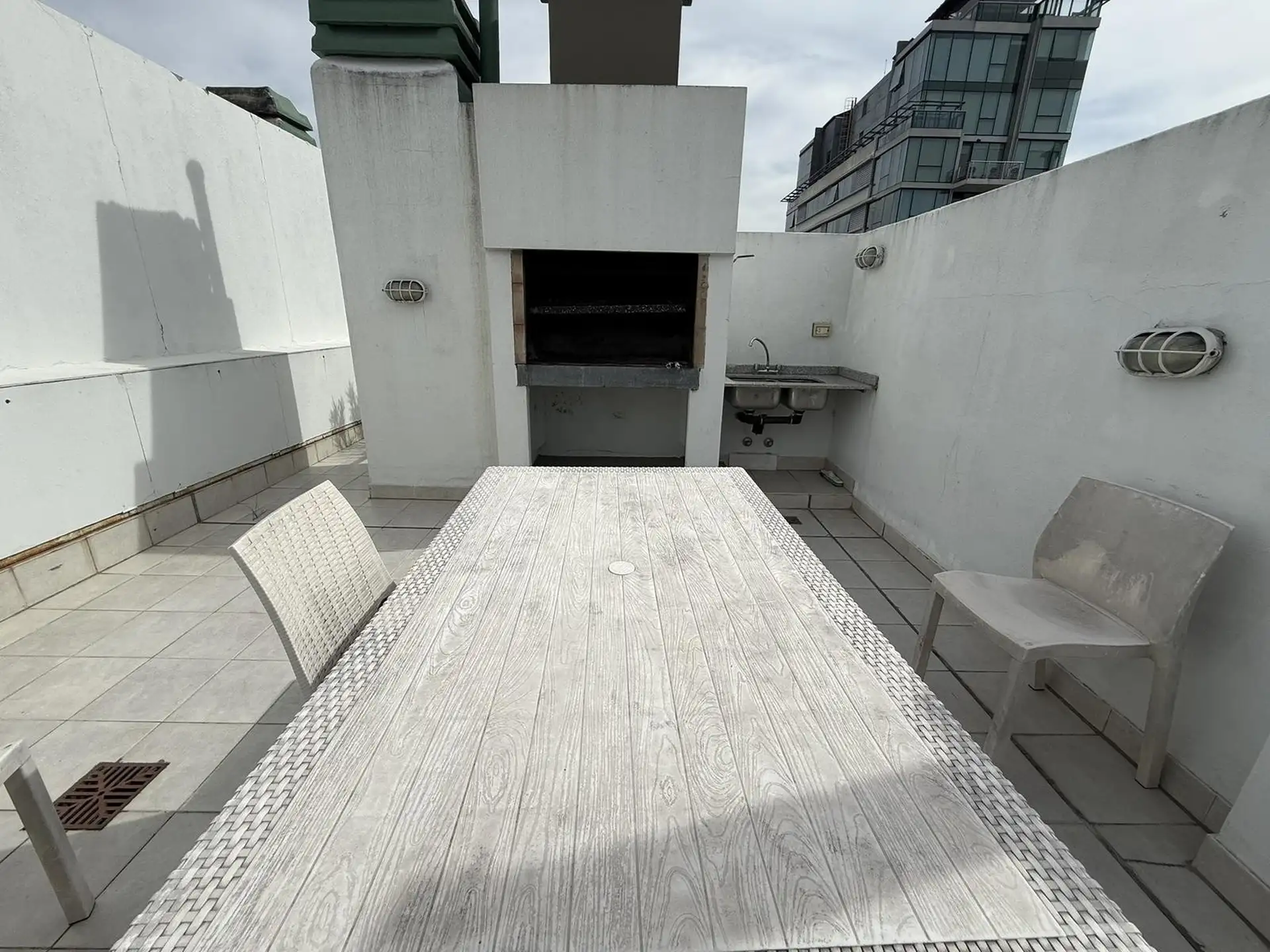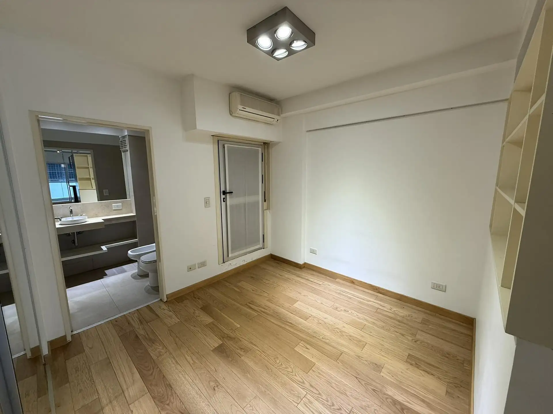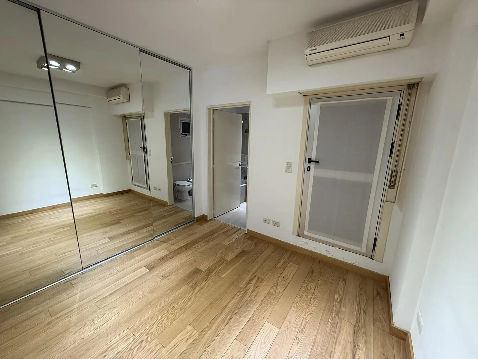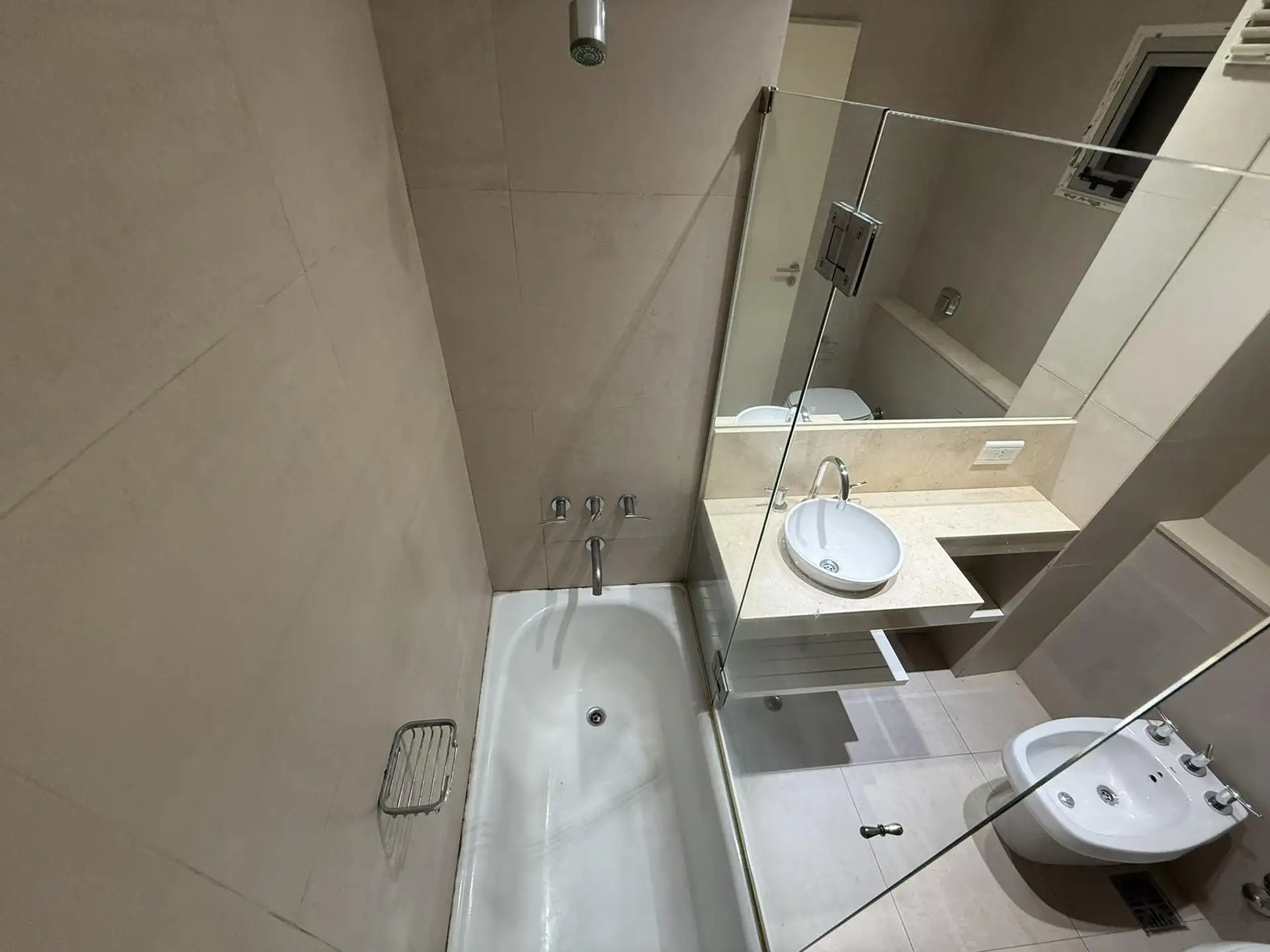 Studio apartment of 45.82 m² in Palermo with an (assigned) parking space. Street-facing unit with balcony with deck. Integrated kitchen and full bathroom plus a separate toilet. The building is under 15 years old and offers pool, solarium with shower, gym, grill, laundry and dry sauna; it also has electronic digital locks. Rental terms include a USD rent and a rental guarantee bond (CABA owner or insurance caución). The unit is on Beruti at 4500, a few metres from La Rural, with access via Subte