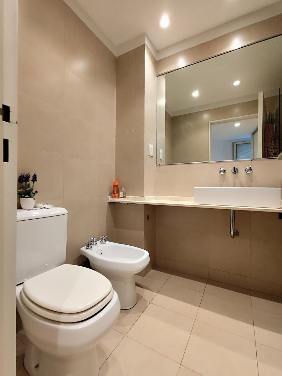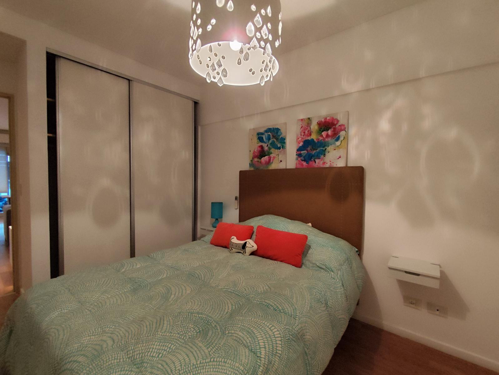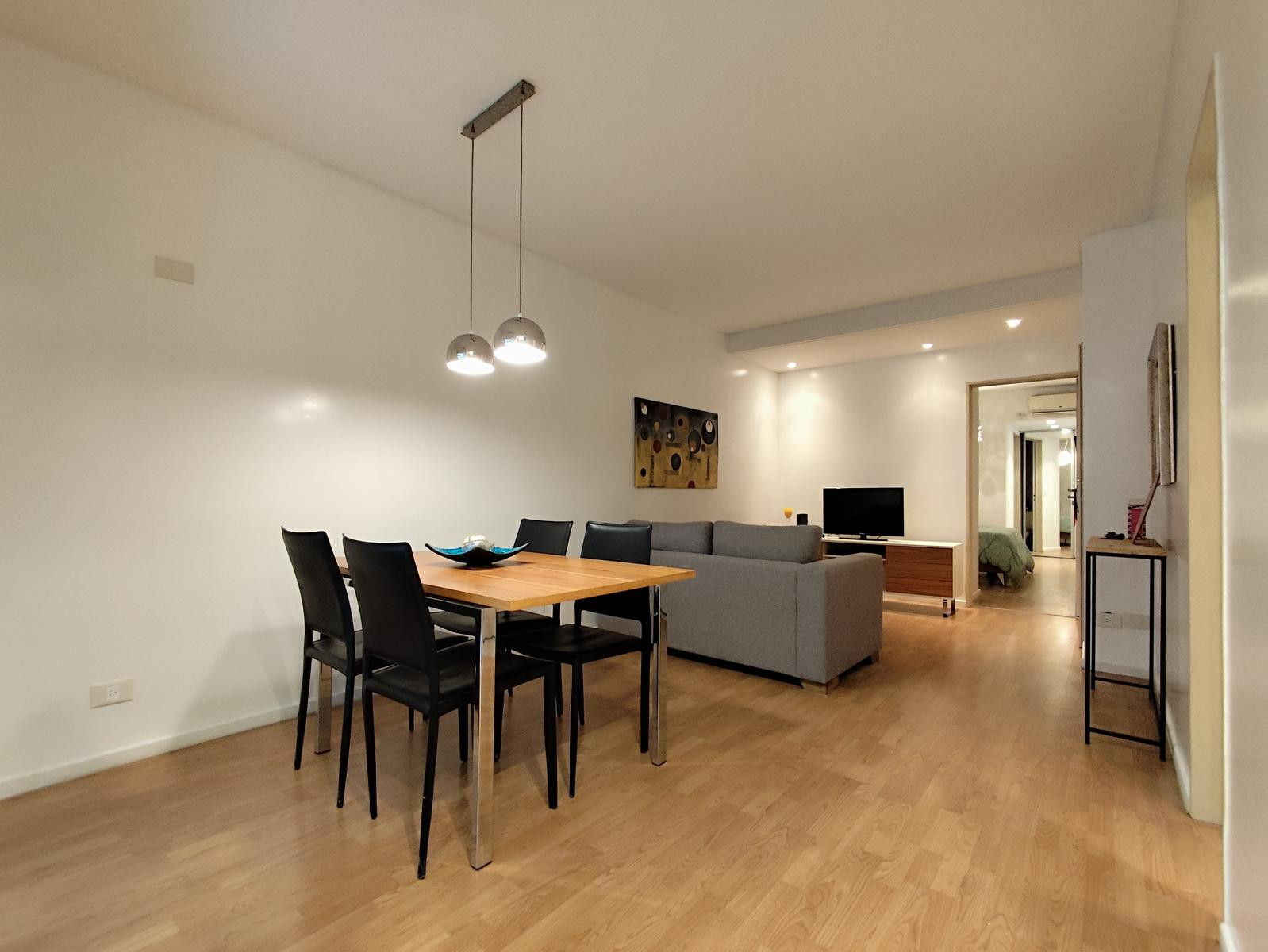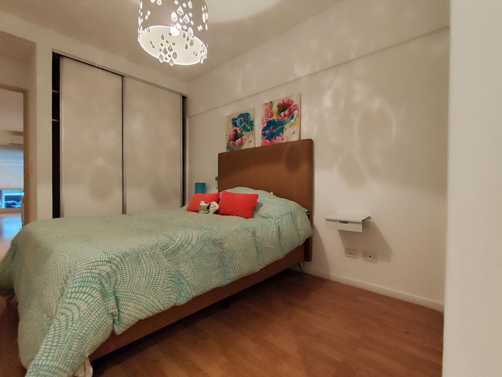 Two-room apartment in Palermo with a terrace balcony, located on the streets of local bus lines and two blocks from estación Scalabrini Ortiz (Subte Línea D). The unit has a living-dining area with sofa, 32-inch TV, a dining table for four and air conditioning. The kitchenette is semi-integrated and includes a gas hob and oven, extractor, fridge with no-frost freezer, electric kettle and microwave, with space to install a washing machine. There is a guest toilet and an en-suite bedroom with dre