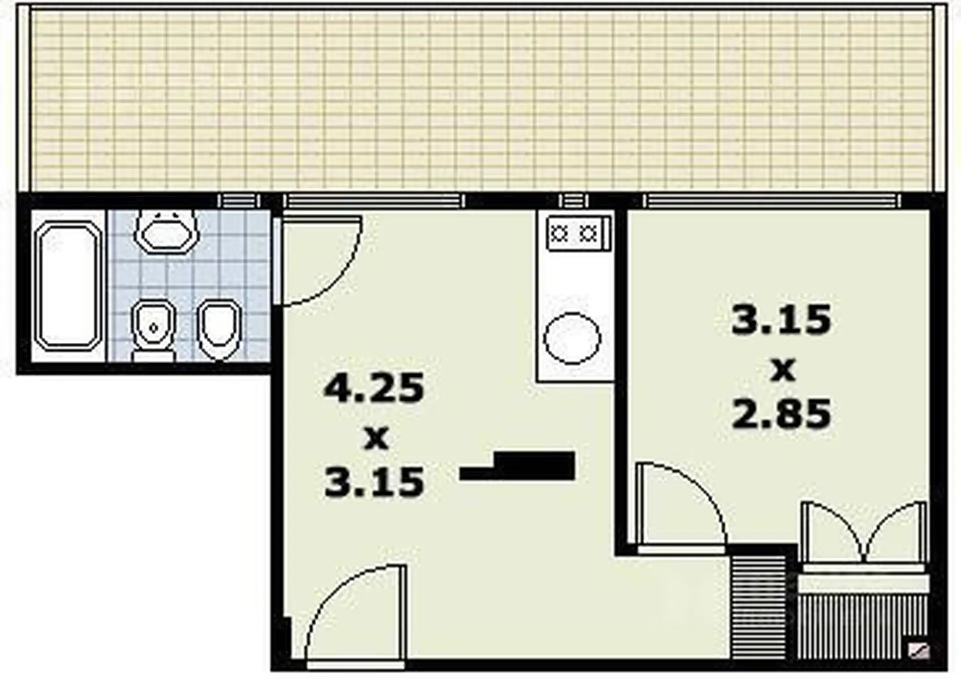Two-room apartment (atypical layout with dining kitchen plus a separate bedroom) in Palermo. No building fees or taxes are charged. The building has a pool, laundry, sauna and exercise equipment. Lease is for 2 years with adjustments every 3 months based on IPC; at signing, the first month’s rent and a rental guarantee deposit of 1.5 months are paid in USD. Pets are not accepted.