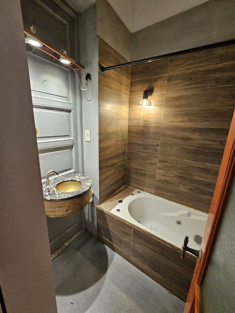 Ground-floor PH with private entrance, 80 m² total (38 m² covered, 42 m² uncovered) in Colegiales, Palermo. Office unit with one bedroom plus a mezzanine for storage, a full bathroom, a kitchen and a laundry area, and a uncovered terrace at the back (PB al fondo). Hot water is provided by a gas water heater (calefón). Building fees are not charged. ABL is $15.000 and AYSA is $10.000. Located on Calle Conesa between Zabala and Aguilar, two blocks from Estación Colegiales (Ferrocarril Mitre) and t