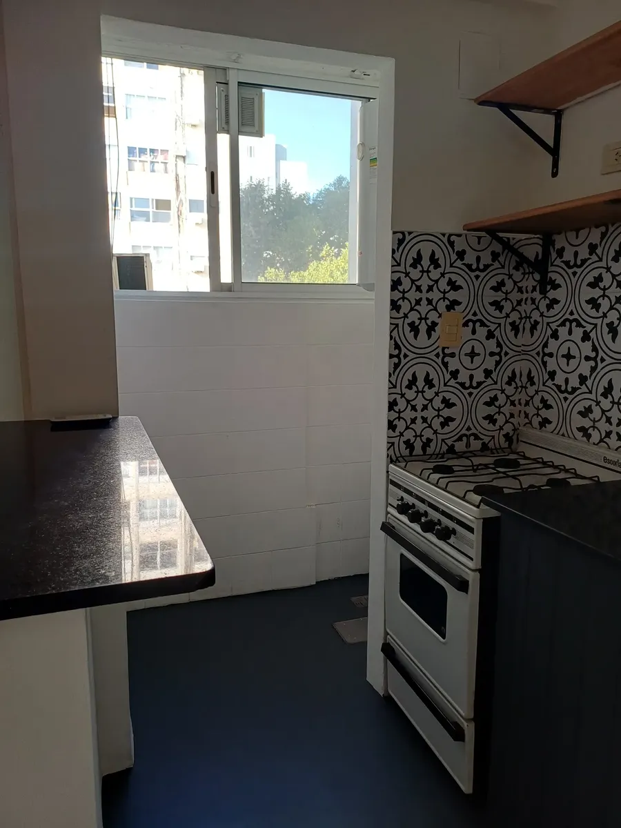 Two-room apartment in Palermo Soho, at Thames 2100 between Paraguay and Guatemala. It has a living-dining room, bedroom, complete bathroom with shower, and a kitchen with breakfast bar. Integrated laundry area with connection for a washing machine and an electric water heater; vinyl flooring and hot-and-cold air conditioning. Building fees (expensas) are $200,000.