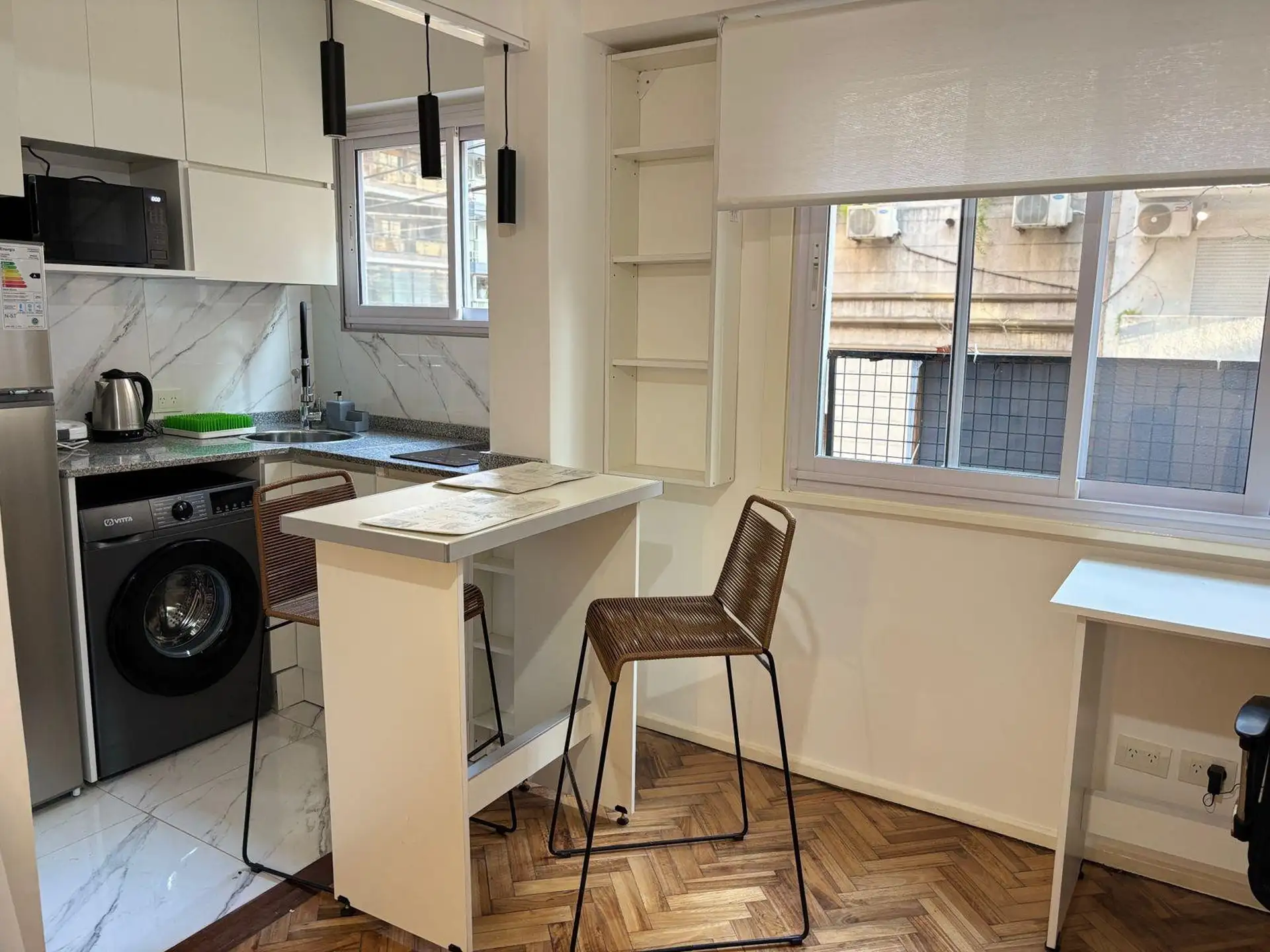One-room apartment in Palermo with 22 m² total area, available from 22 April. Refurbished, with parquet floors, an integrated and equipped kitchen, a full bathroom with new finishes, and front-facing open view over the passage of El Signo. Building fees (expensas) are approximately $80,000, with estimated charges for electricity ($20,000), internet ($28,962) and AYSA water ($18,000). Rental terms: 1 month paid in advance and a rental guarantee bond of 1 month (refundable). In addition, real-esta