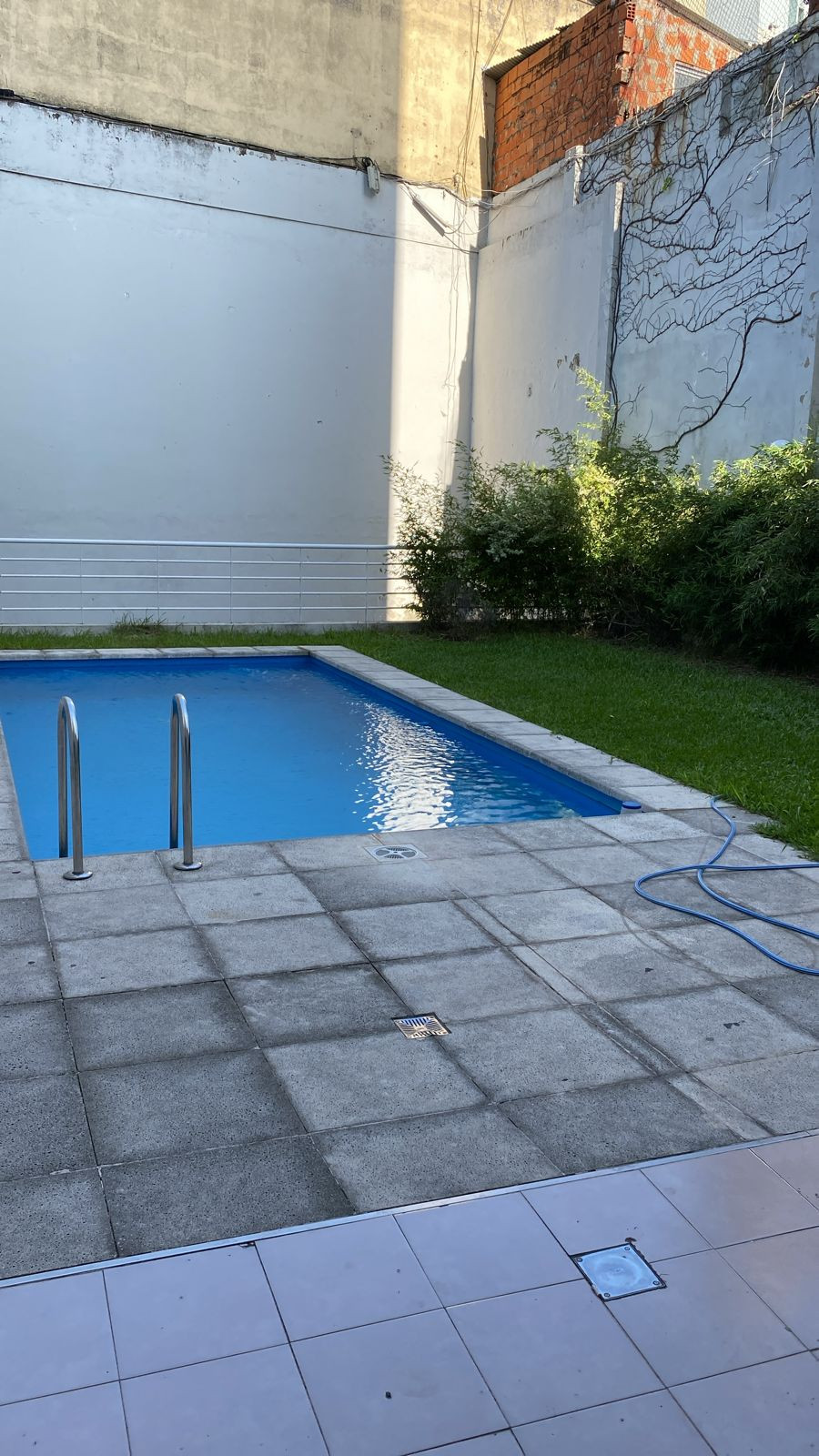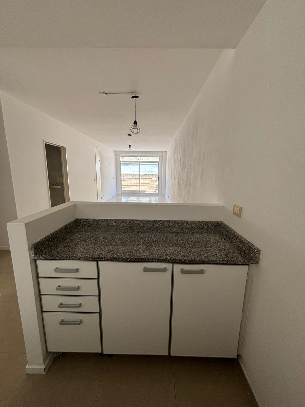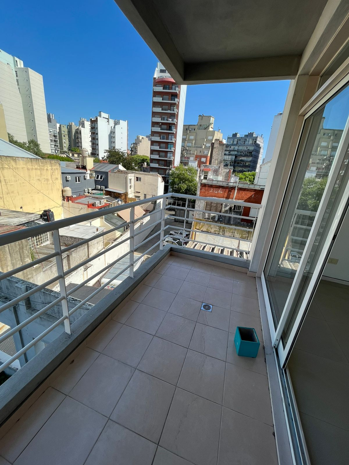 Studio apartment of 39 m² with a balcony on the interior courtyard-facing side. Parquet porcelain floors, built-in wardrobe, integrated kitchen with breakfast bar, electric water heater and a full bathroom. Building amenities include a pool and a communal residents' lounge. Rent is for a 2-year contract with quarterly updates based on CPI; the monthly rent is paid in advance, with a $700 security deposit. Building fees, gas, electricity and ABL are paid separately, along with administrative expe