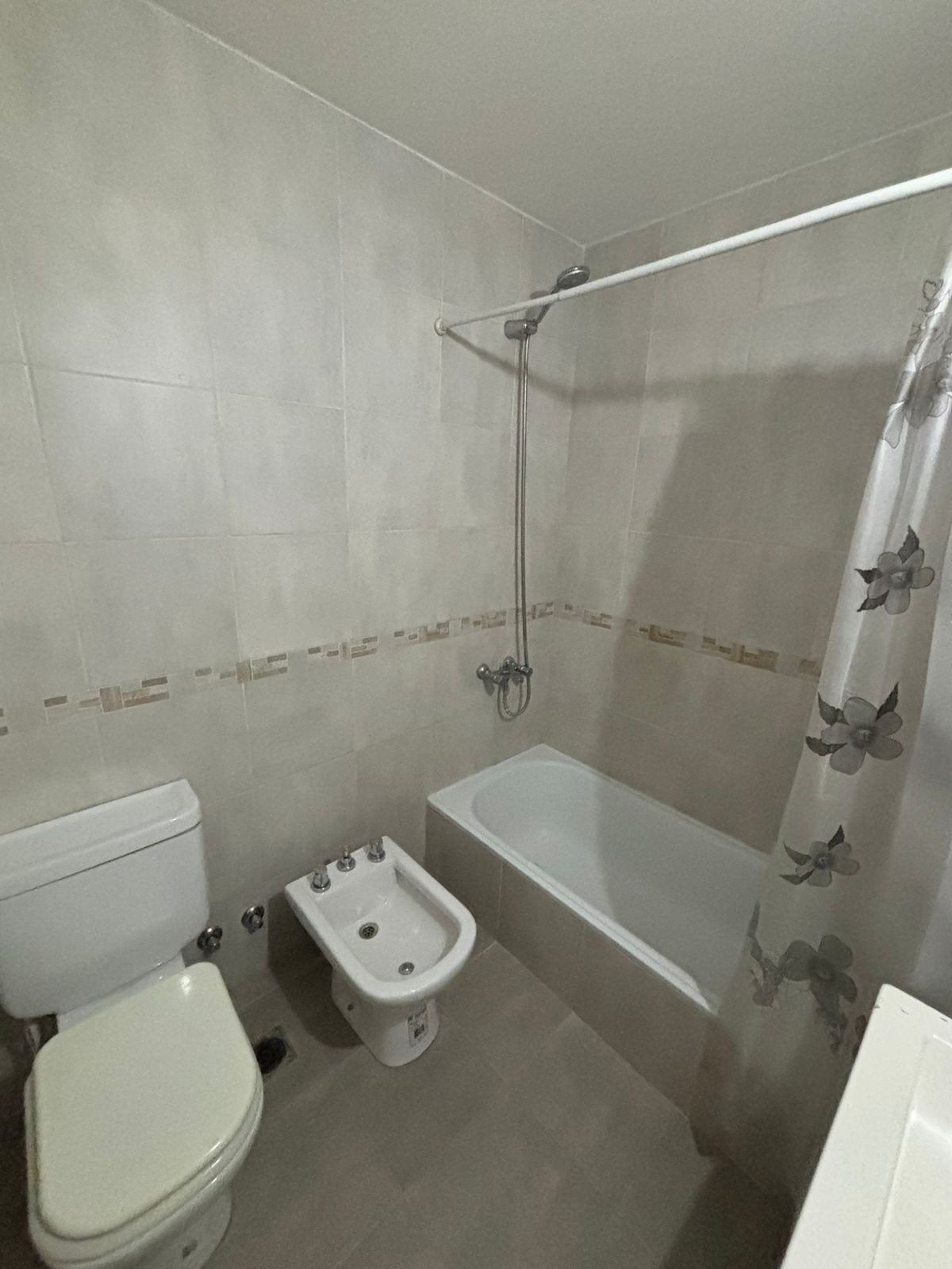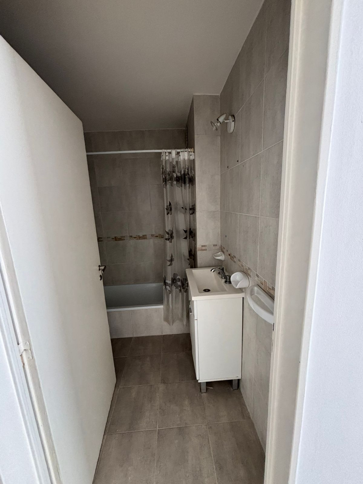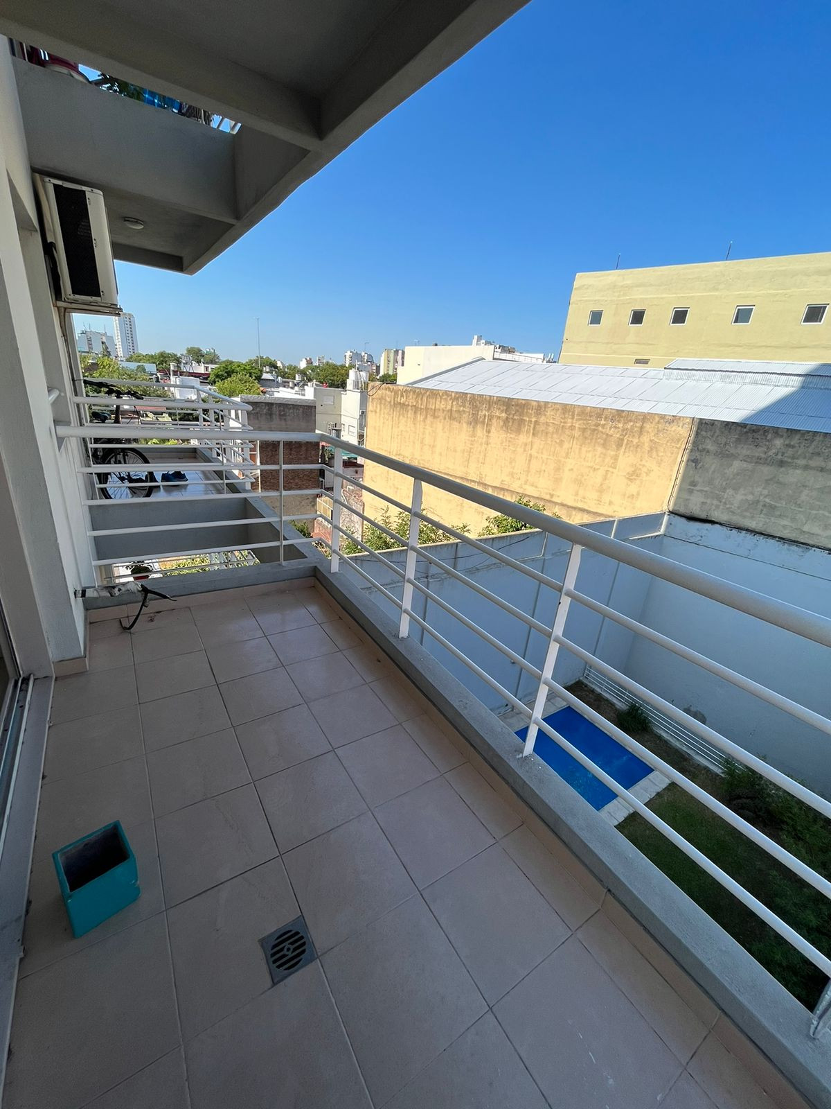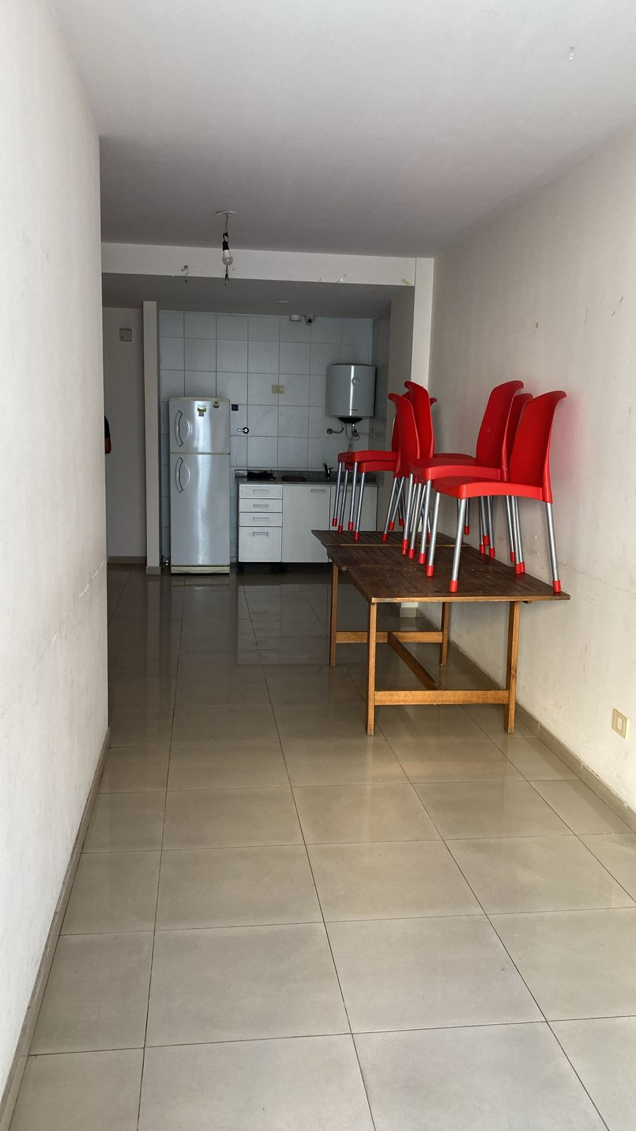 Studio apartment of 39 m² with a balcony on the interior courtyard-facing side. Parquet porcelain floors, built-in wardrobe, integrated kitchen with breakfast bar, electric water heater and a full bathroom. Building amenities include a pool and a communal residents' lounge. Rent is for a 2-year contract with quarterly updates based on CPI; the monthly rent is paid in advance, with a $700 security deposit. Building fees, gas, electricity and ABL are paid separately, along with administrative expe