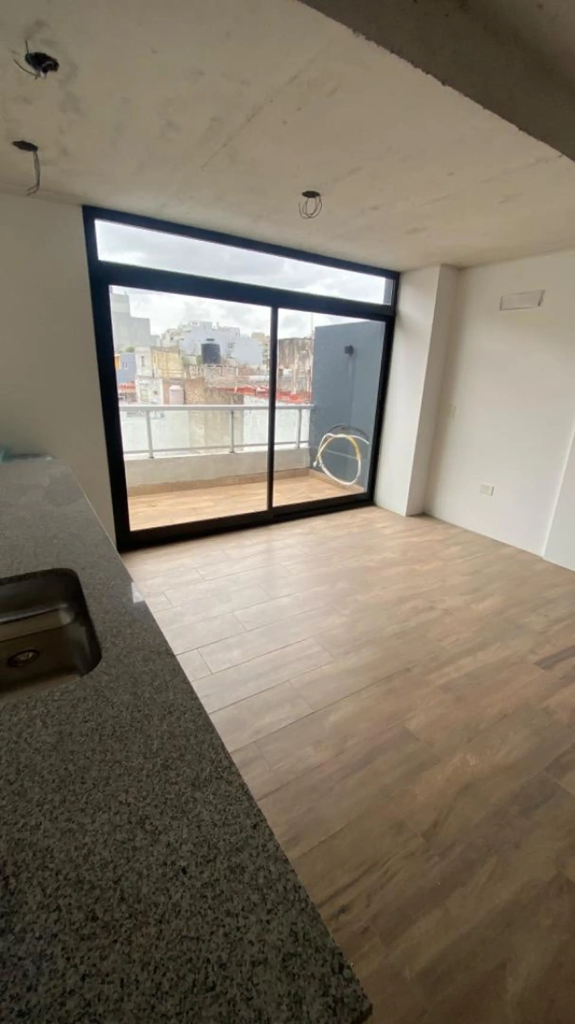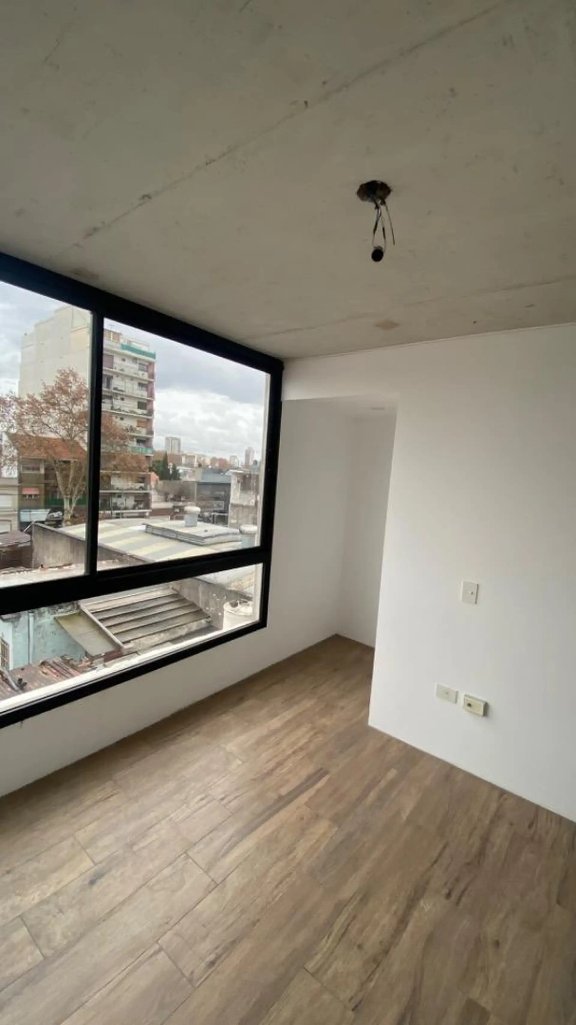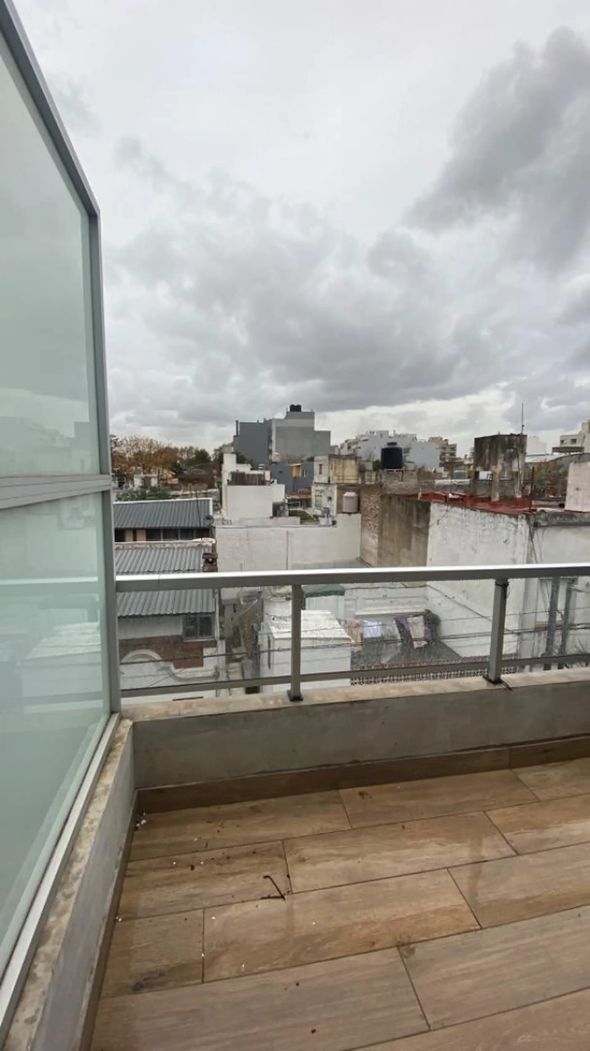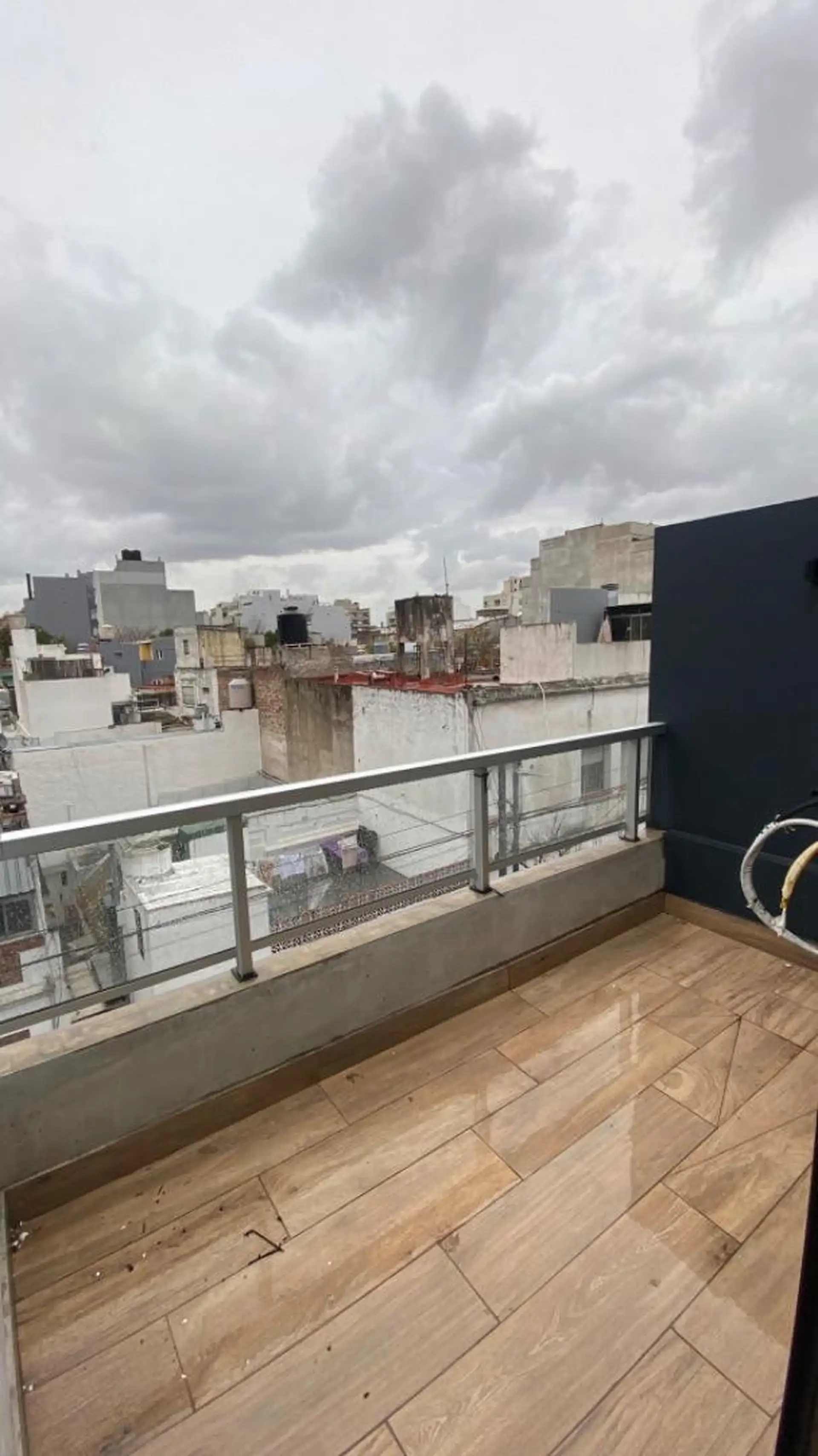 Semi-floor two-room apartment with a balcony on the 3rd floor in Parque Chas. It has a built-in kitchen, a full bathroom and a toilet, a bedroom with a closet including interior fittings, and cross ventilation with large windows. Floors are ceramic. The building has an electric water heater for hot water; no heating is provided. Services listed include sewers (cloacas).