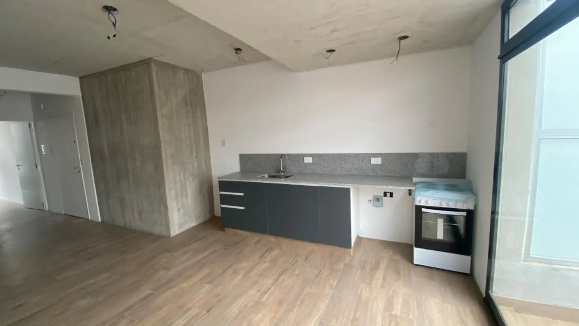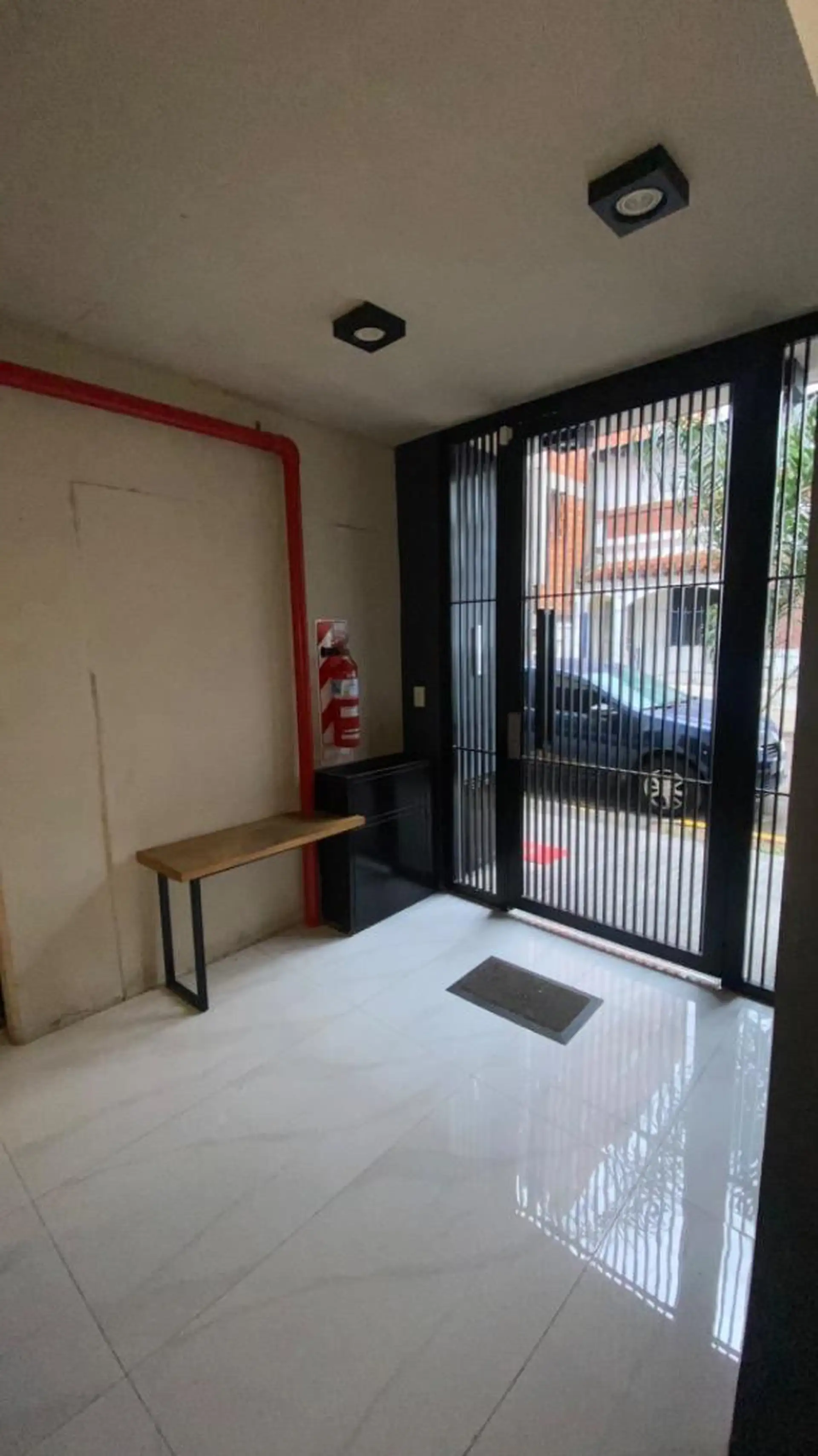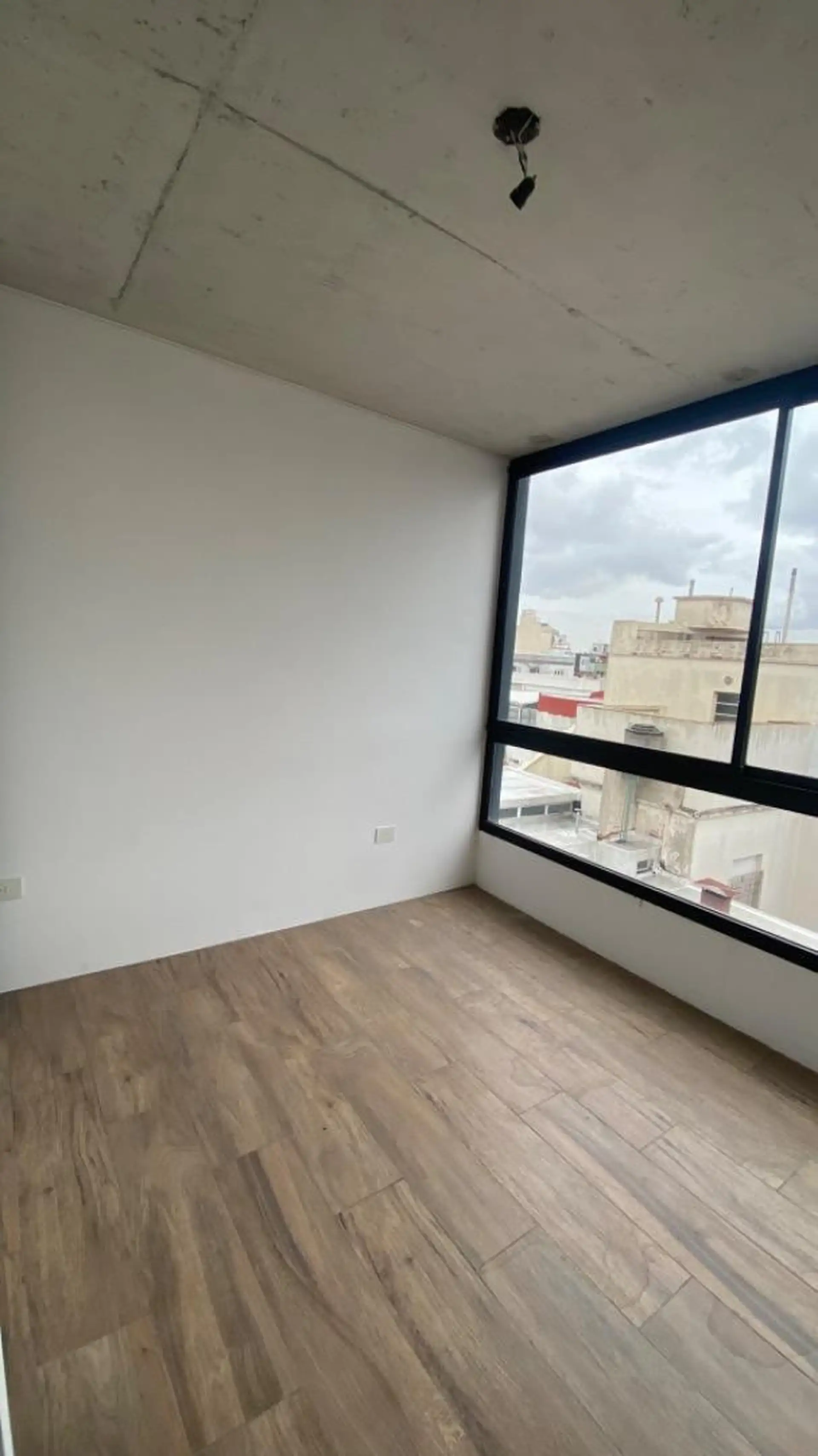 Semi-floor two-room apartment with a balcony on the 3rd floor in Parque Chas. It has a built-in kitchen, a full bathroom and a toilet, a bedroom with a closet including interior fittings, and cross ventilation with large windows. Floors are ceramic. The building has an electric water heater for hot water; no heating is provided. Services listed include sewers (cloacas).