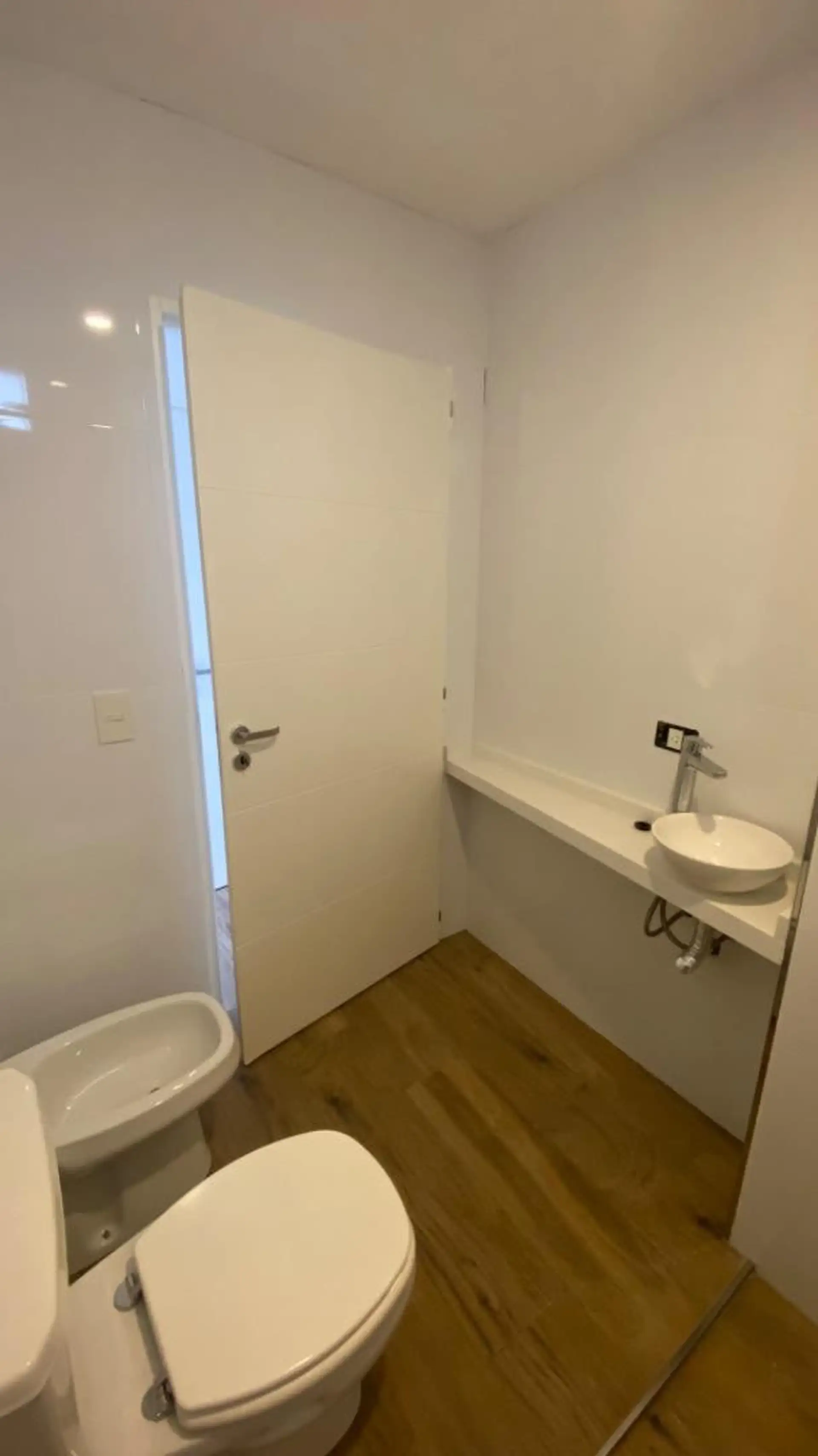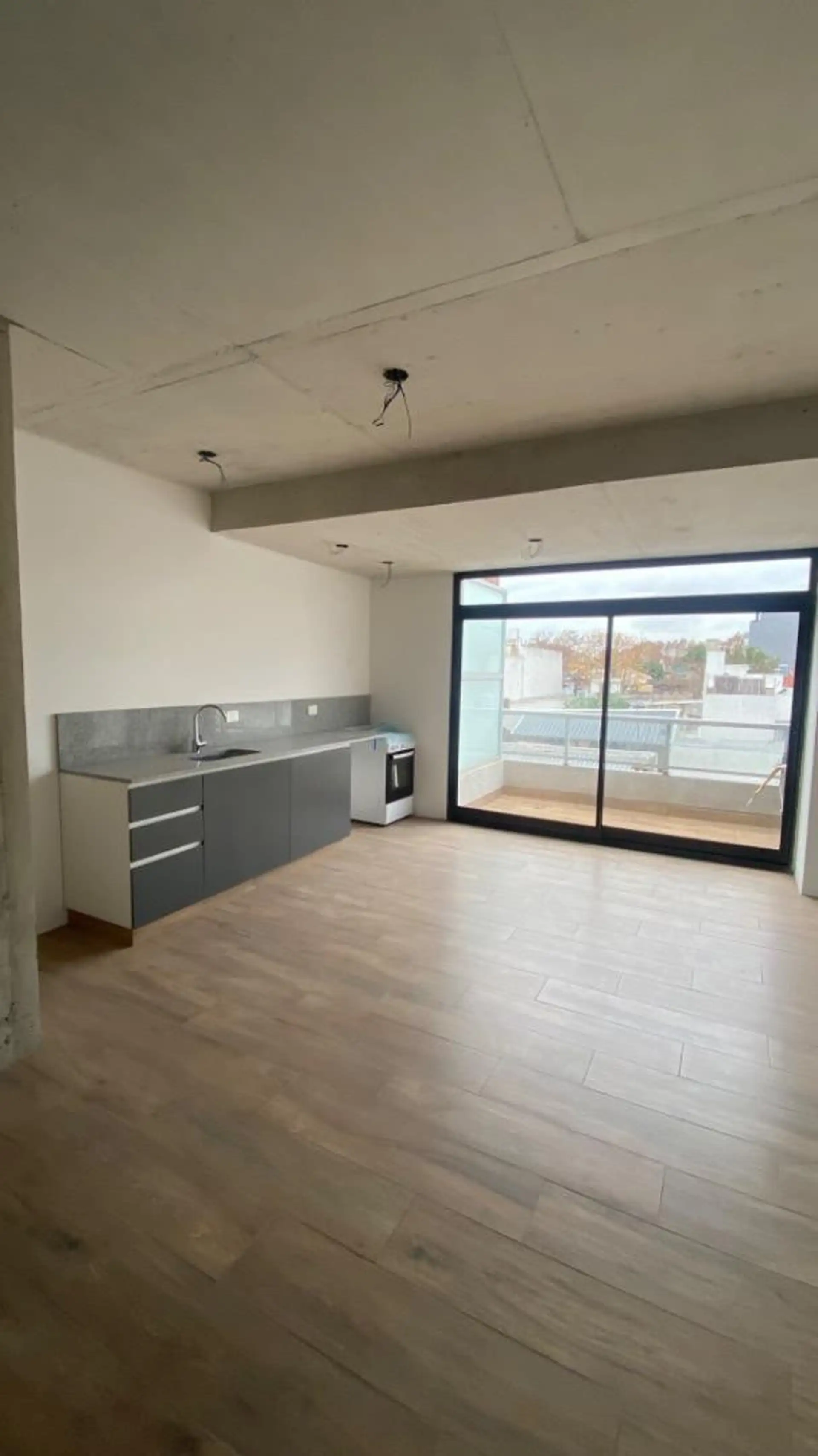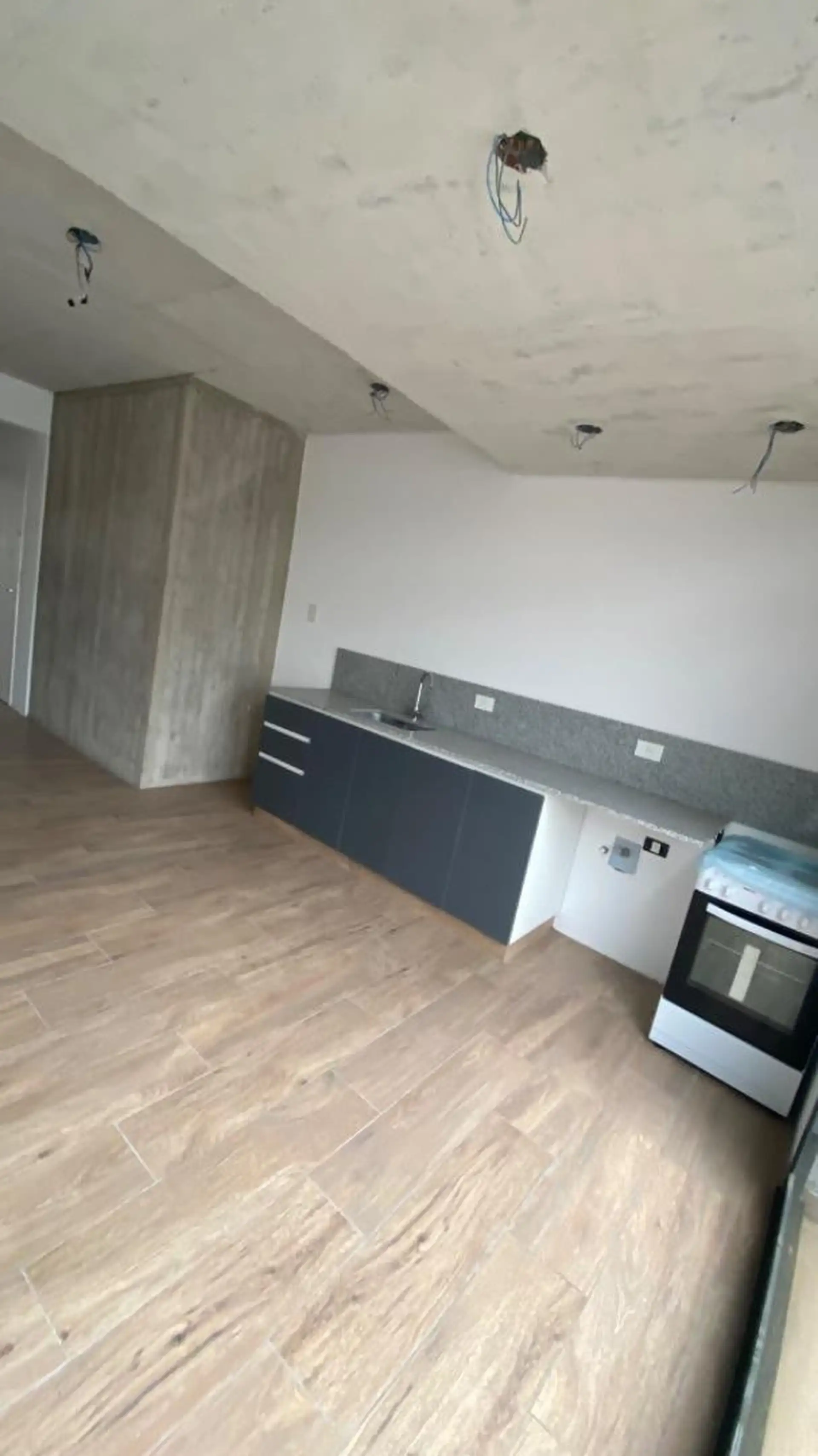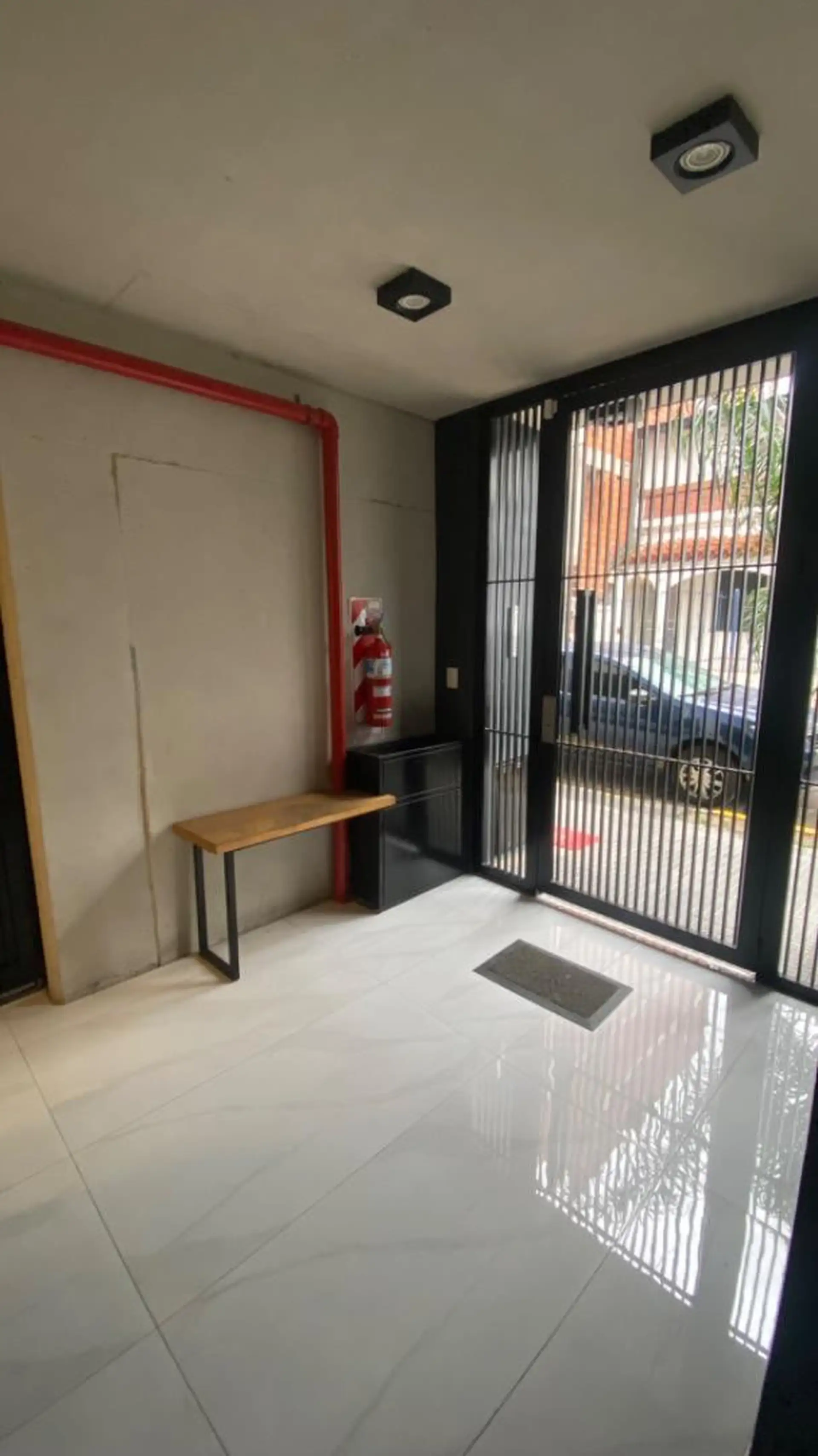Semi-floor two-room apartment with a balcony on the 3rd floor in Parque Chas. It has a built-in kitchen, a full bathroom and a toilet, a bedroom with a closet including interior fittings, and cross ventilation with large windows. Floors are ceramic. The building has an electric water heater for hot water; no heating is provided. Services listed include sewers (cloacas).