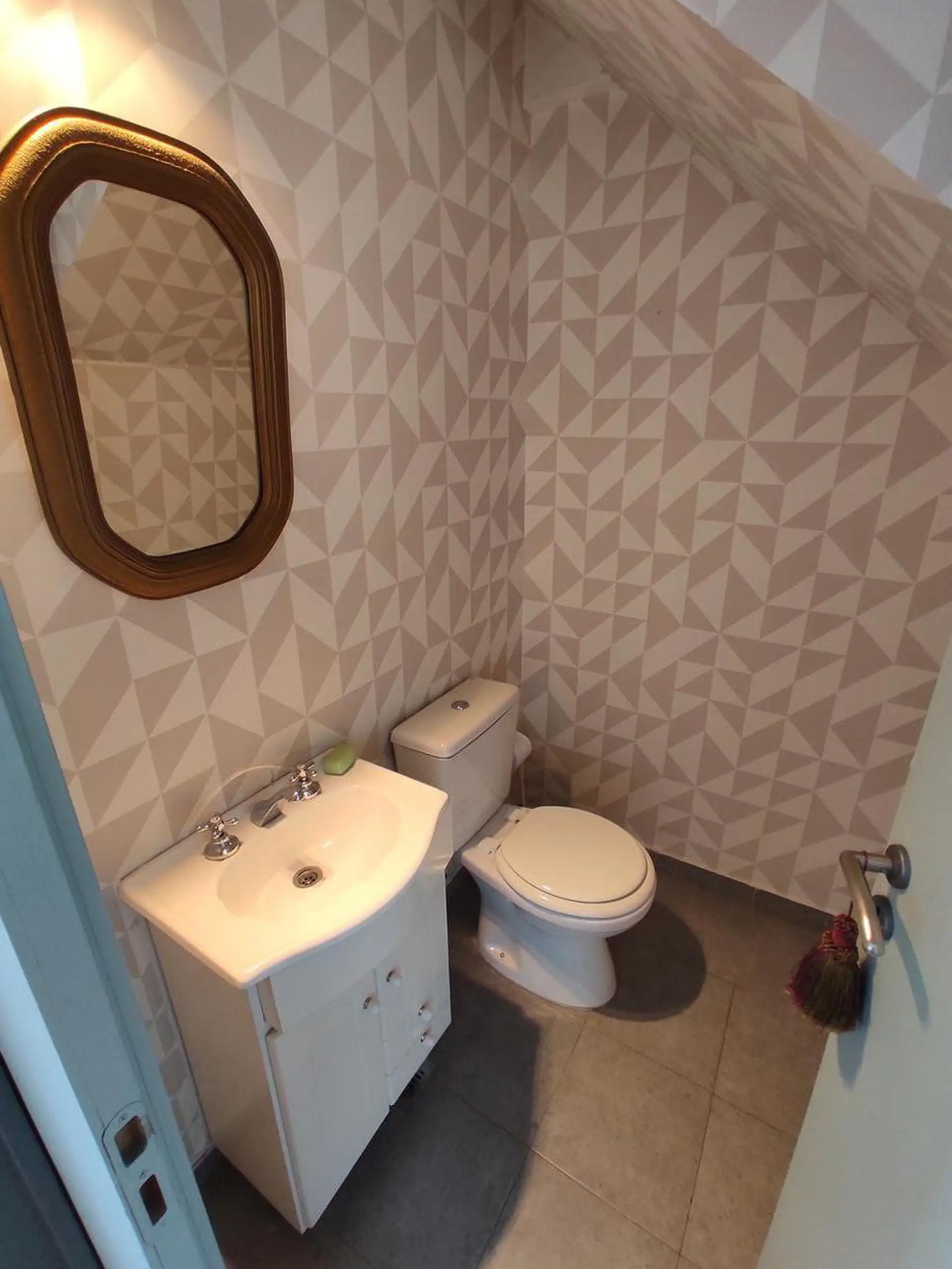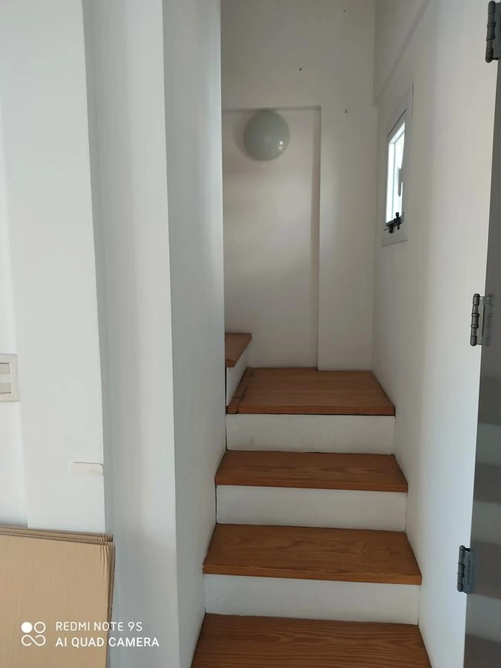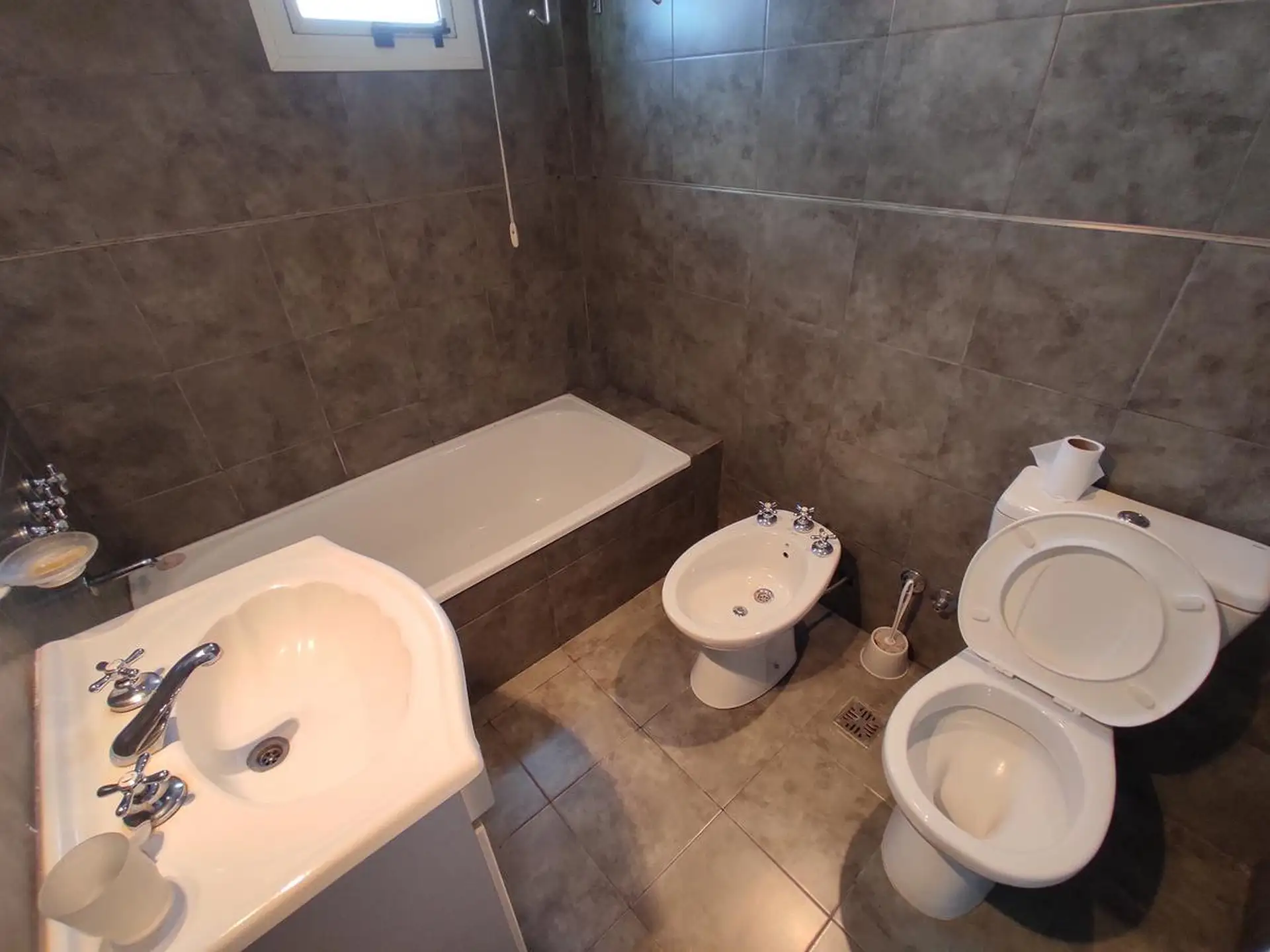 Furnished duplex apartment in Parque Chas, available from 1 June 2026. Two-room layout with 1 bedroom, arranged over three levels: a living-dining room with air conditioning and TV, semi-integrated electric kitchen with fridge with freezer, electric hob and oven, and space for a washing machine; a guest toilet on the first level; a bedroom with air conditioning and storage space, plus a full bathroom and a small balcony with stairs to the third level. The third level has a private uncovered terr