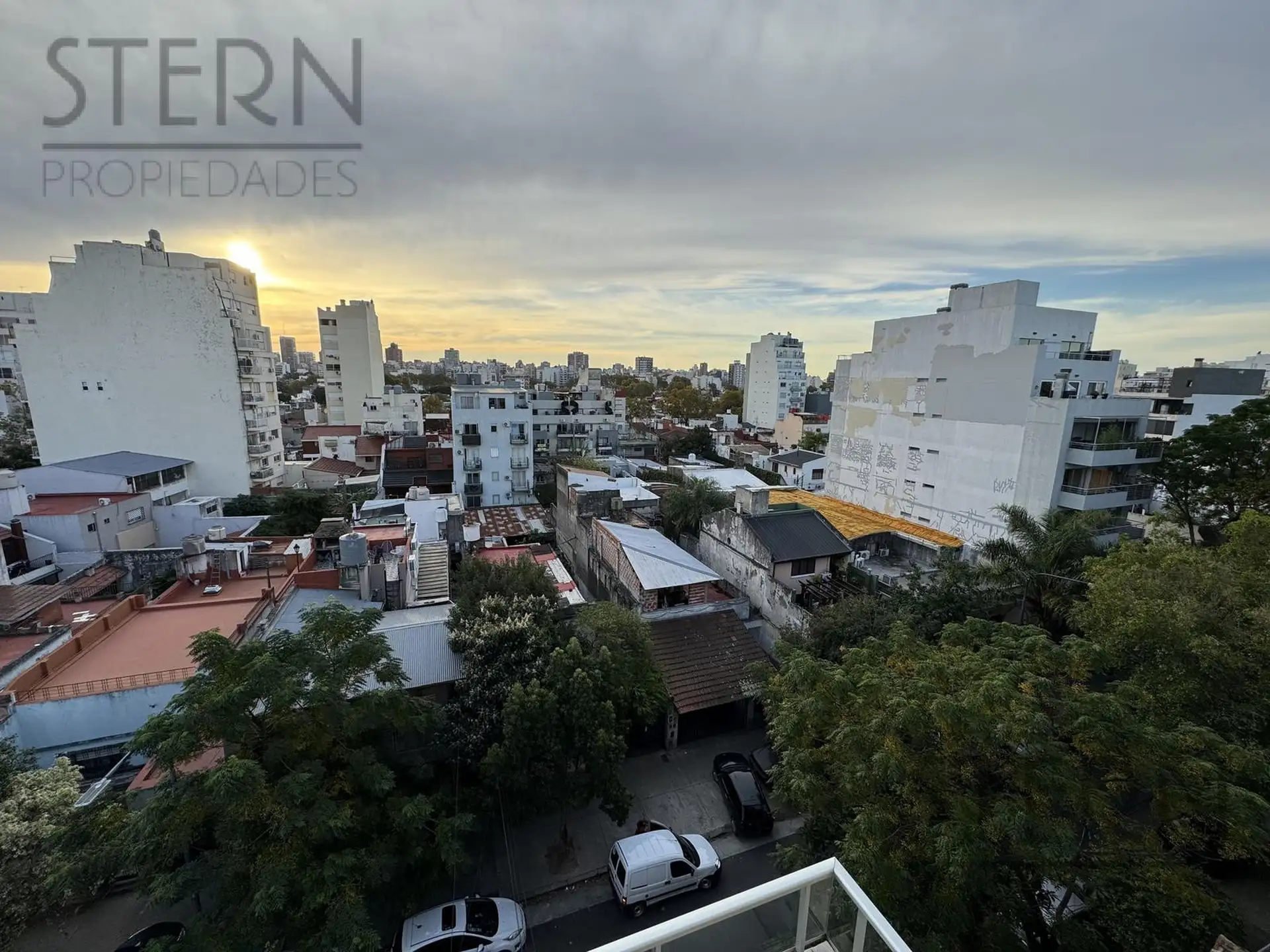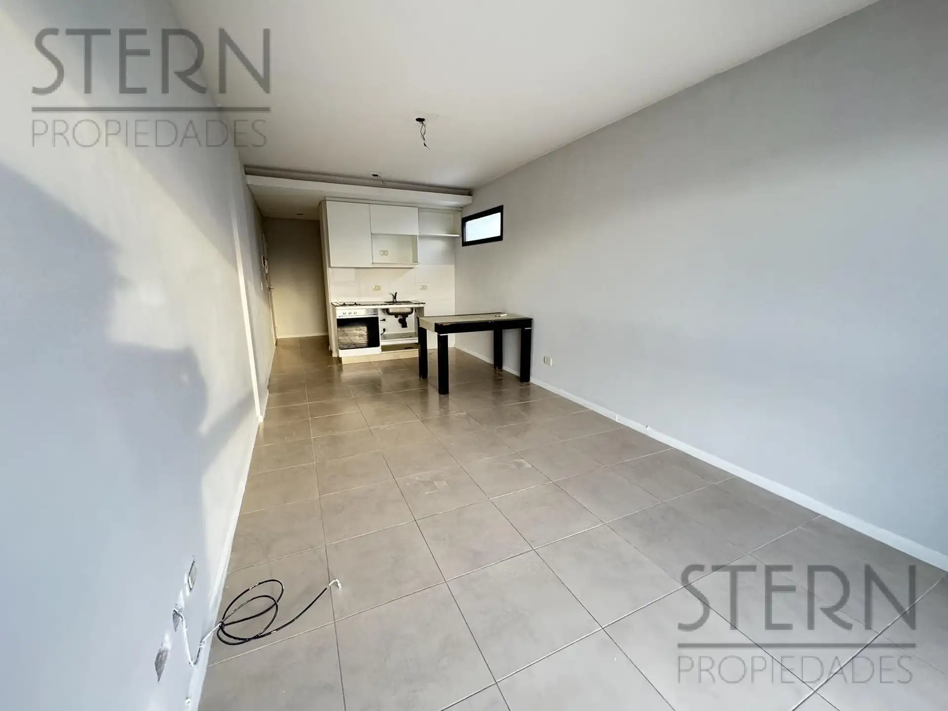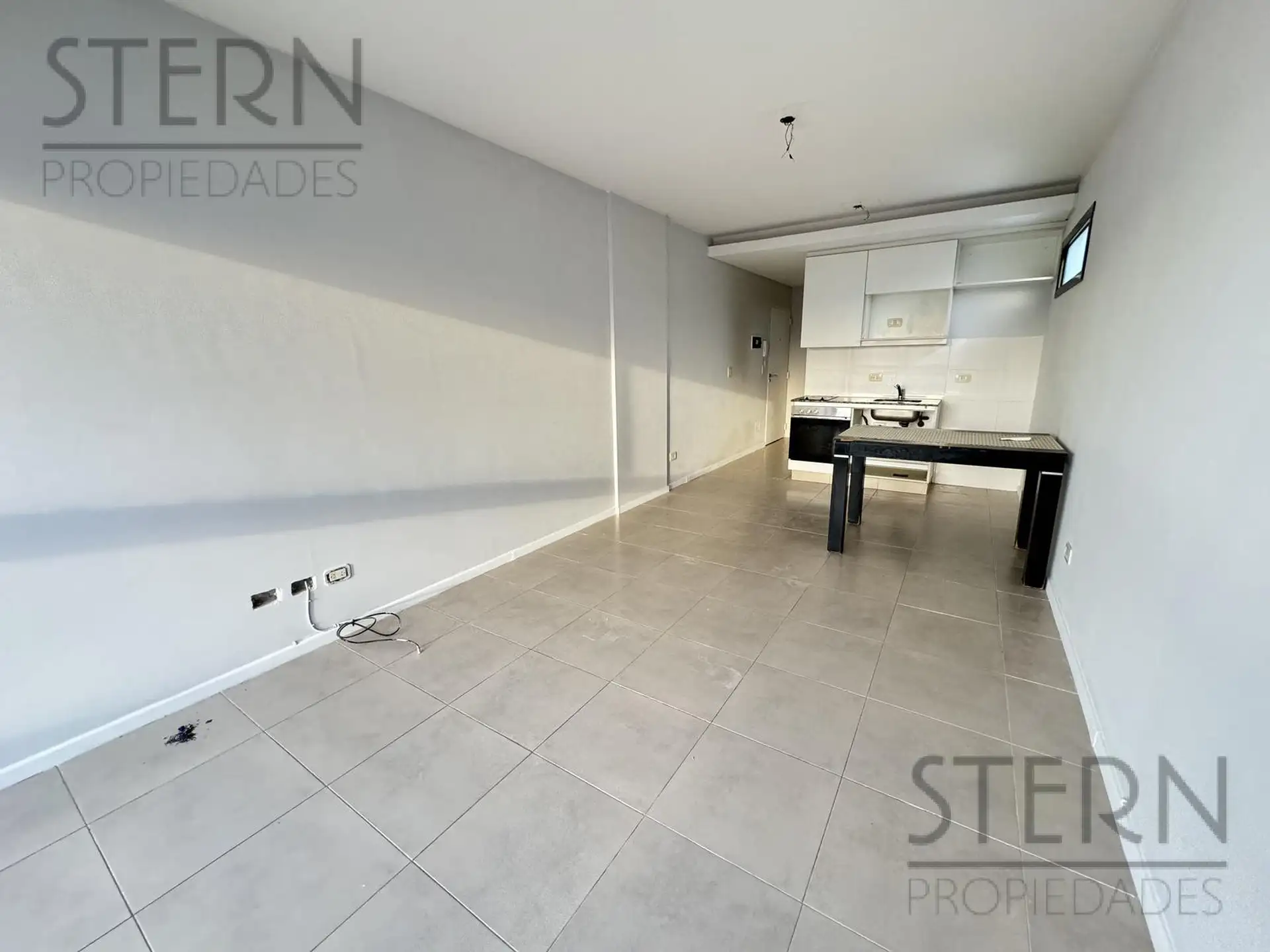 Studio apartment in Parque Chas with a front-facing balcony. 30 m² total, with integrated kitchen and laundry in the unit. ABL is approx. $12,300. Requirements include proof of income of at least three times the rent, plus a property guarantee or rental-guarantee insurance, and fire insurance.