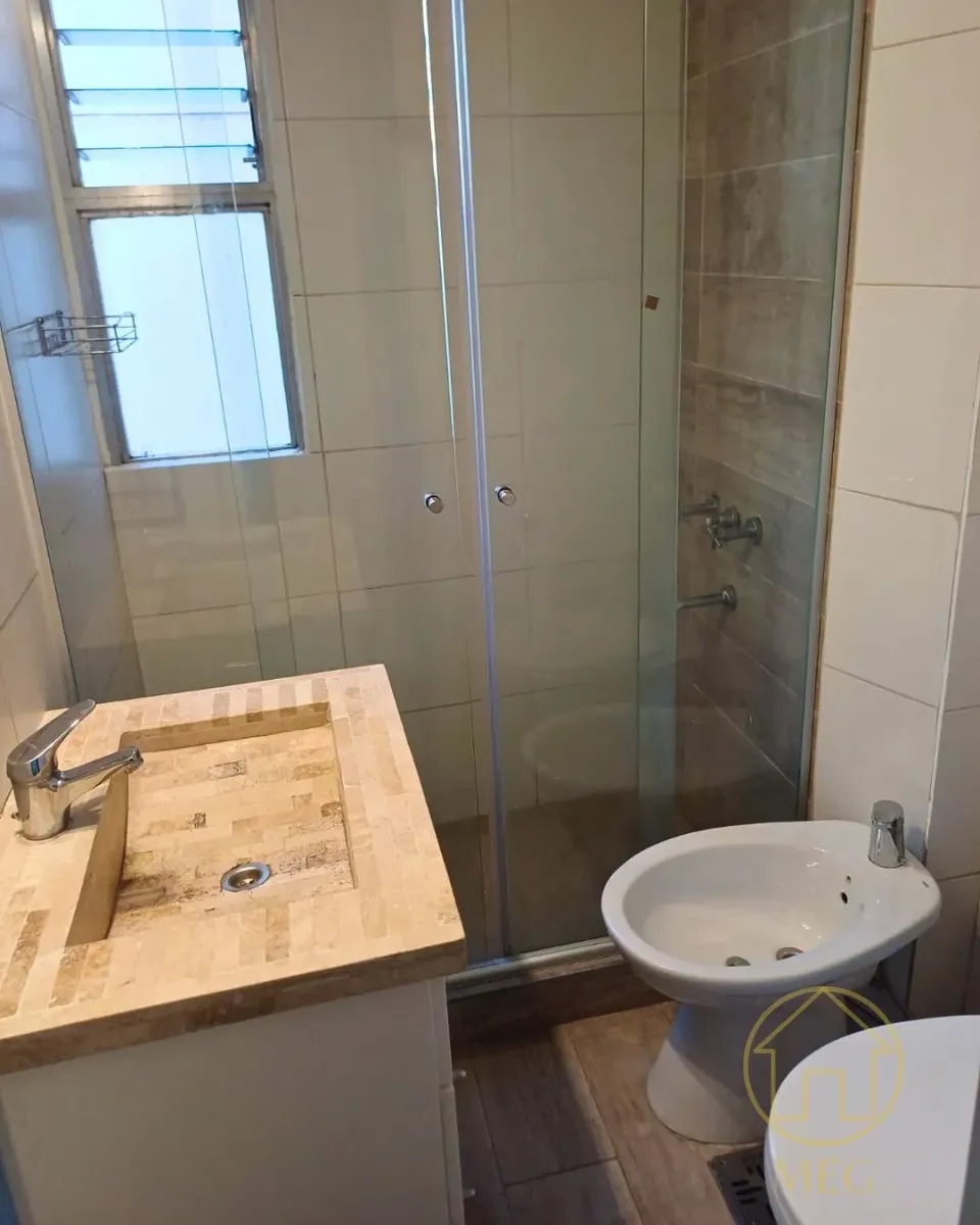 Front-facing two-room apartment with living-dining room and a balcony. Separate kitchen, bedroom with fitted wardrobe, and bathroom with a shower. Recently refurbished and in good condition; small pets are accepted.