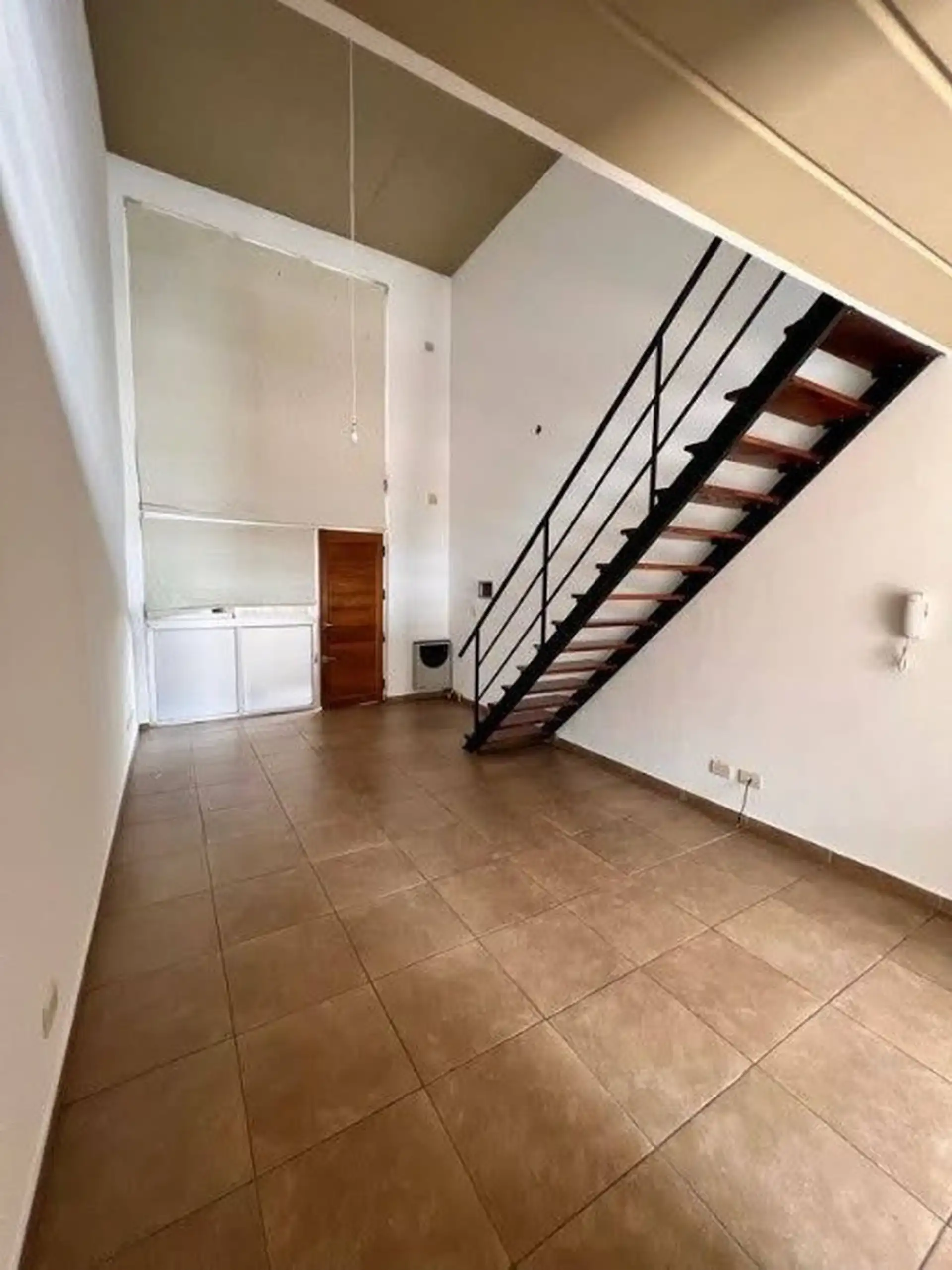 Two-storey loft apartment with a living and dining area and a fully fitted kitchen with cupboards, under-counter units, a cooking appliance and a water purifier. A full bathroom with a bathtub, a balcony and a laundry area. One bedroom on a mezzanine level, with a heating and cooling air-conditioning unit and blackout curtains. Assigned covered parking space with an automatic gate.