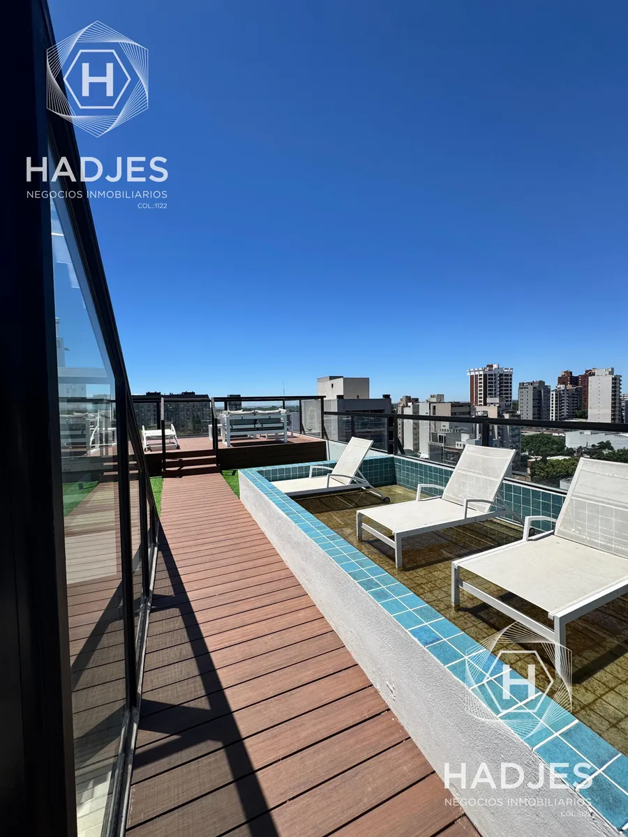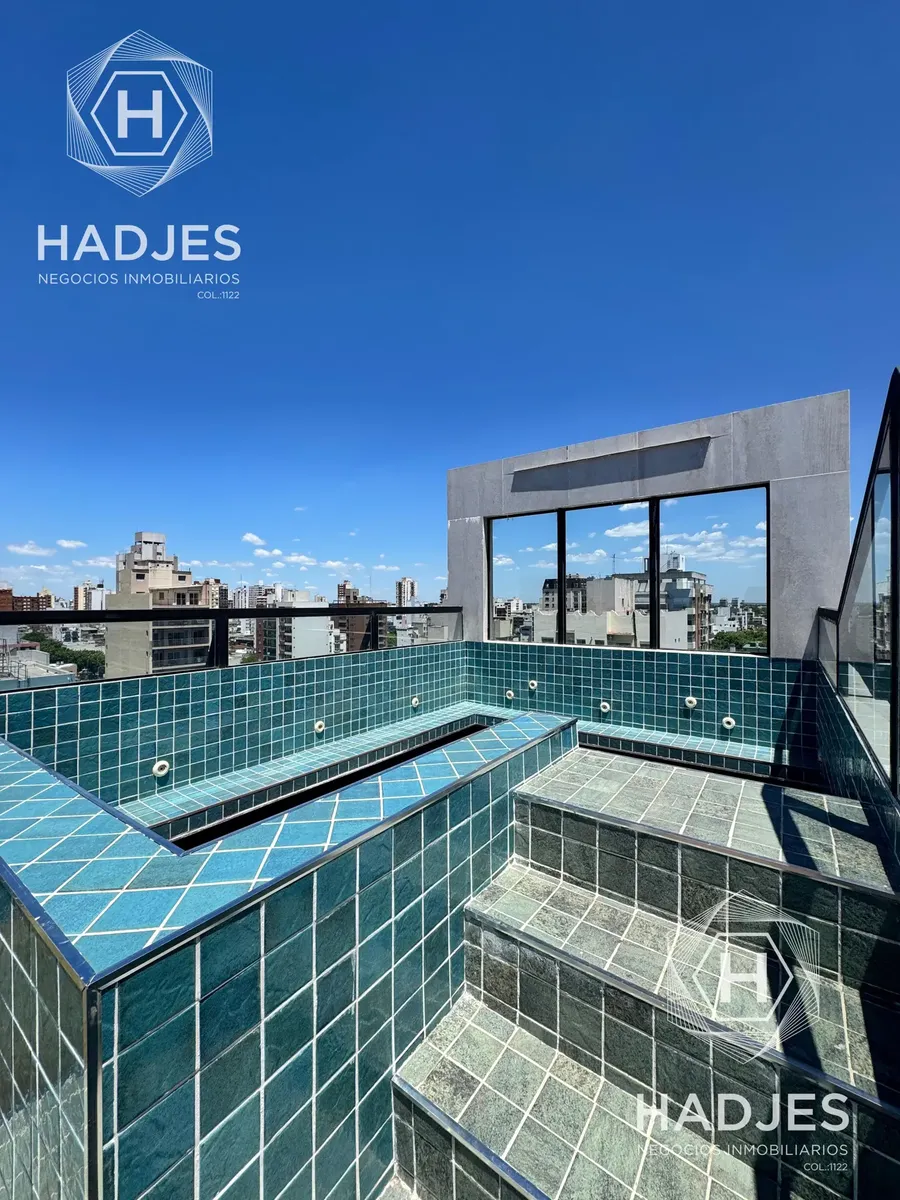 Two-room apartment with a modern layout in Quilmes near Plaza Conesa. It has a semi-integrated kitchen with a breakfast bar, a living-dining room, and a bedroom with air conditioning and built-in wardrobes with interior fittings. The building has a fully equipped communal room (SUM), a balcony-terrace with a grill, sauna, a Scottish-style shower on the terrace, a solarium and a pool on the terrace with views.
