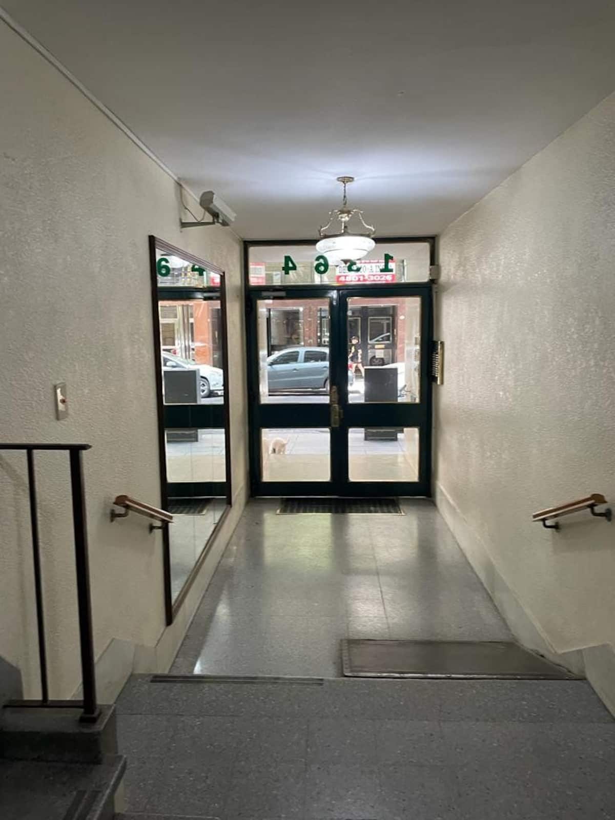 Elevator, laundry in-unit, groceries walkable, quiet bedroom.