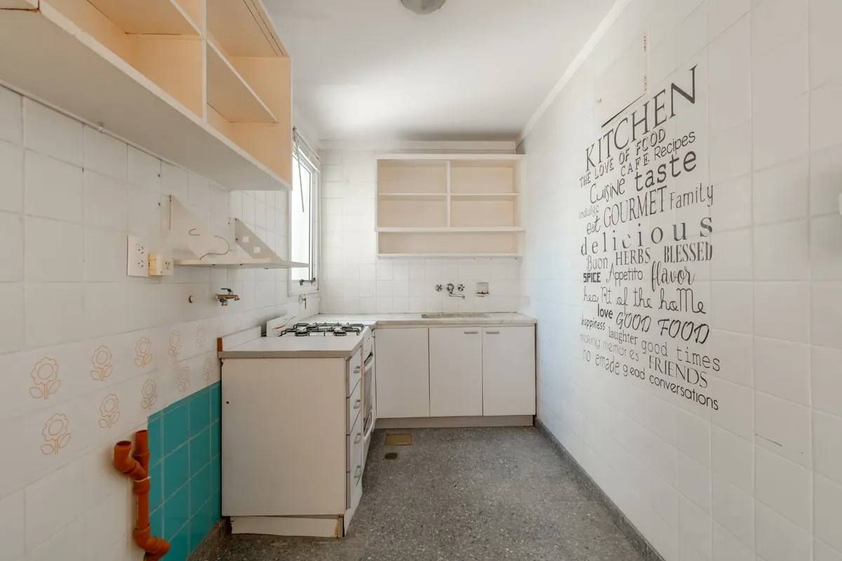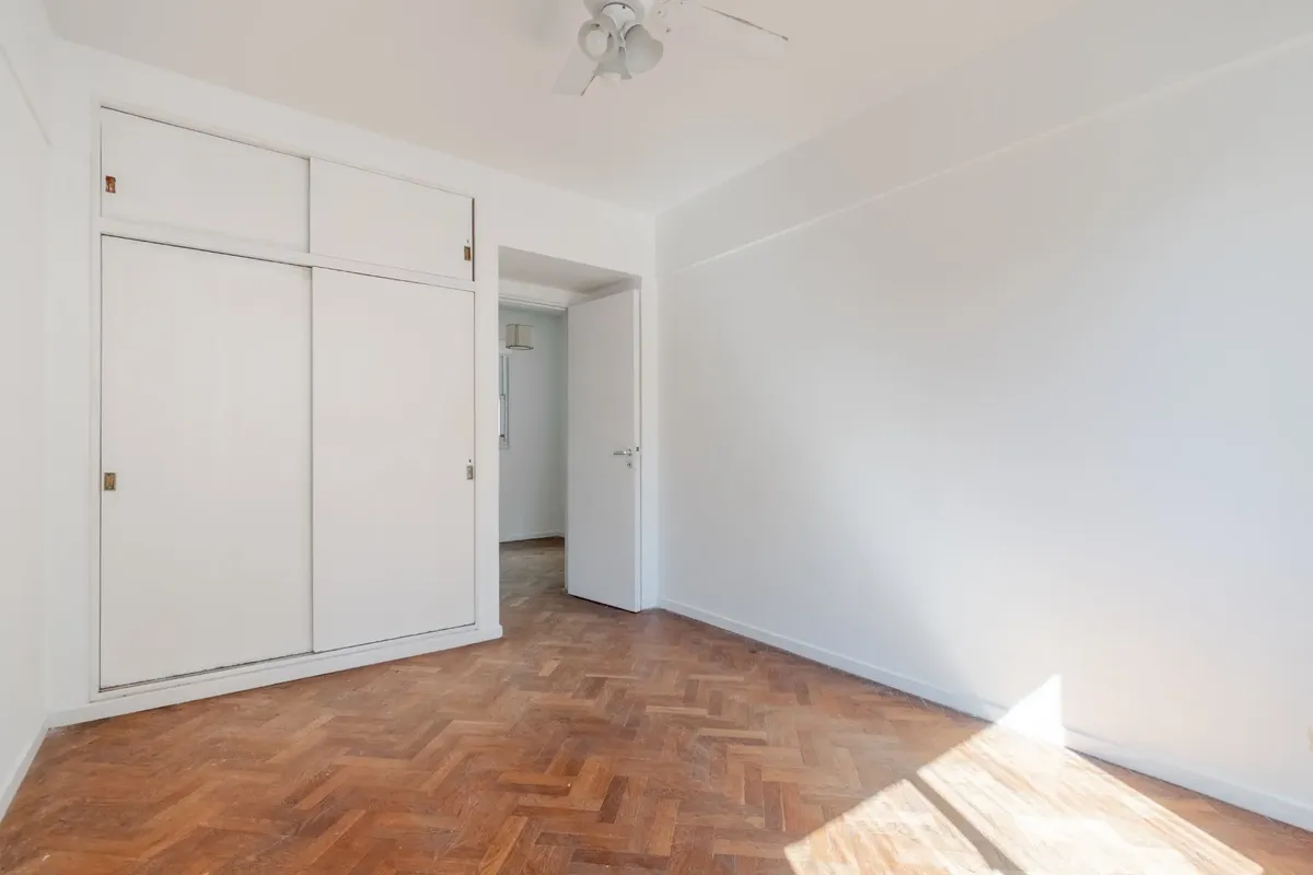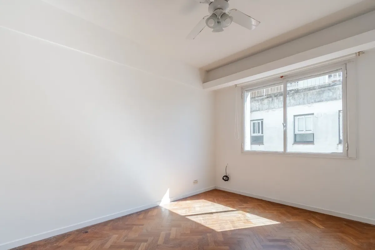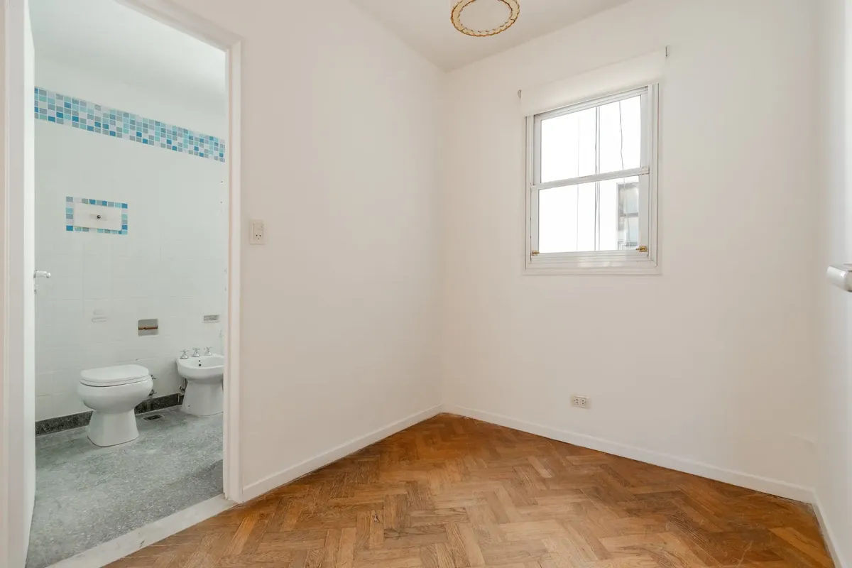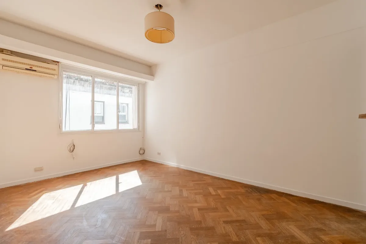 Half-floor apartment with 2.5 rooms and a high floor in Recoleta. Street-facing view over Calle Billinghurst despite being an interior unit. Hardwood parquet floors, a distributor room with a window, full bathroom with natural light and ventilation, and an open-plan kitchen to the living area with space for a washing machine. The building has 2 updated elevators.