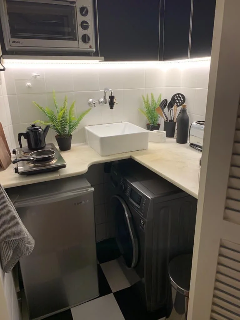 Two-room apartment for rent in Recoleta, 1 bedroom, without furniture. Entry hall, living room, bedroom with access to a balcony, and a full bathroom. Small kitchen with space for a washing machine and under-bench refrigerator. Double-glazed windows and double heating and cooling via split air conditioners (one in the living room and one in the bedroom). The rent excludes building fees and includes quarterly adjustments based on IPC.