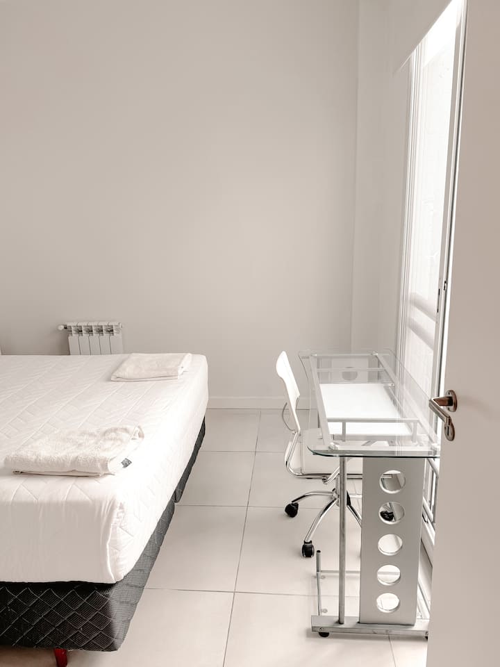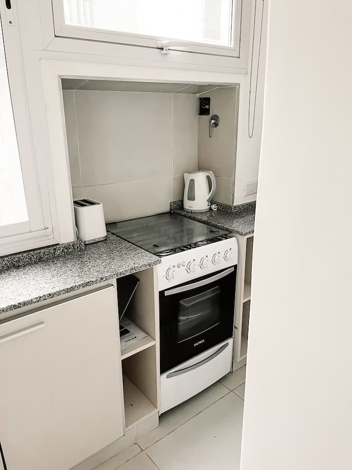 Apartment in Recoleta, Buenos Aires. Modern unit in a residential area with access to two subway lines about 3 blocks away and multiple bus routes.