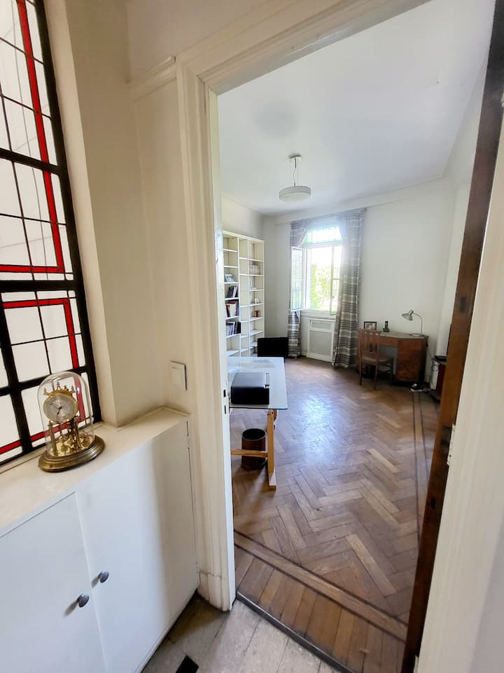Quiet barrio, elevator, pharmacy + parks walkable.