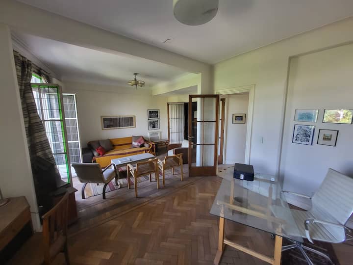 Apartment in Recoleta with 70 m². One master bedroom and a sofa bed in the living room. Located opposite the gothic faculty building for engineering and Mitre square, about 50 metres from the Metro and 300 metres from Recoleta Cemetery.