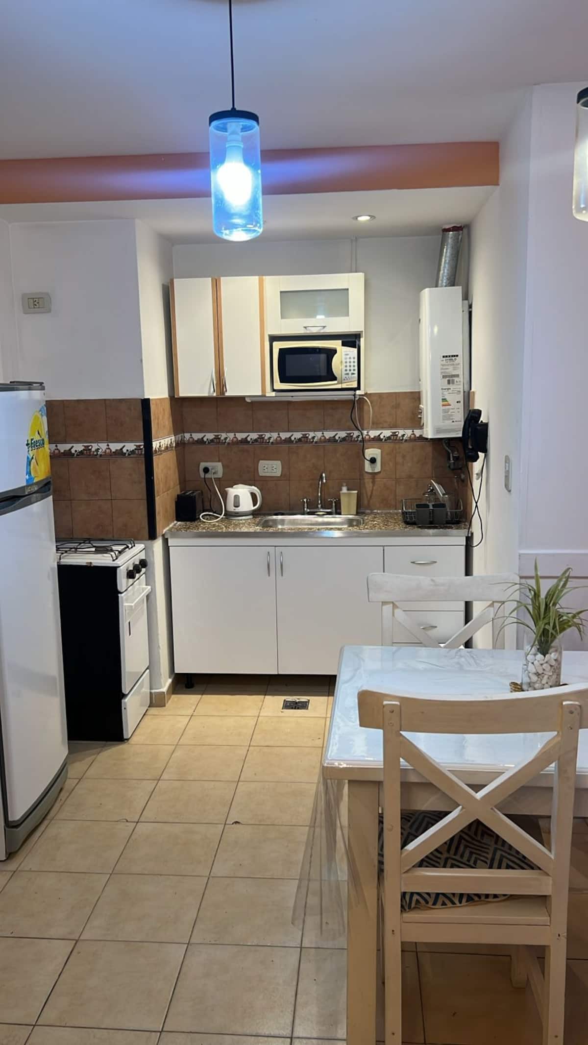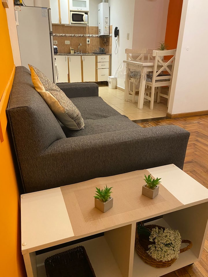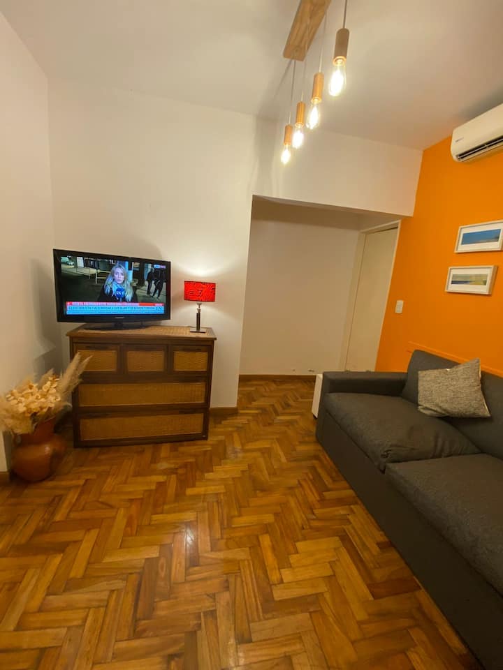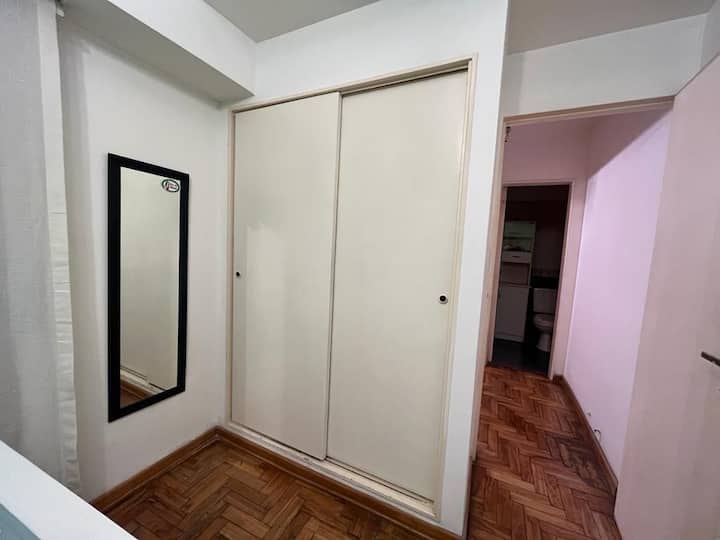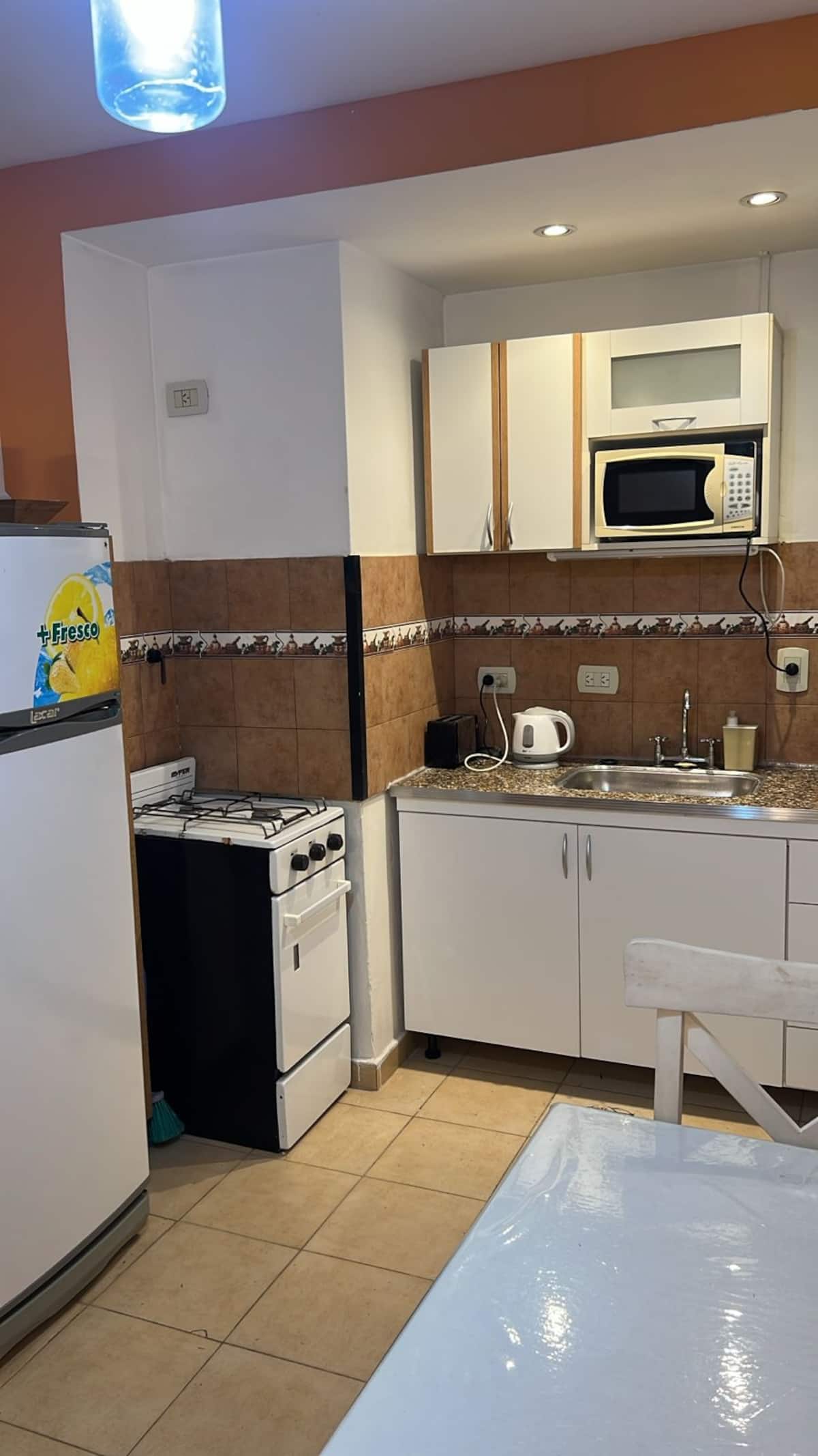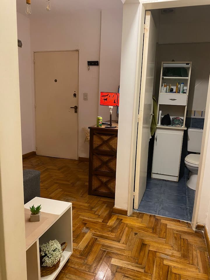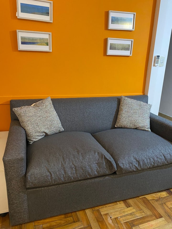 Two-room apartment in Recoleta with 1 bedroom. Includes a full kitchen, full bathroom, TV and WiFi, and air conditioning. Kitchen utensils and bedding and towels are provided.