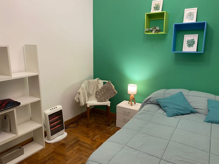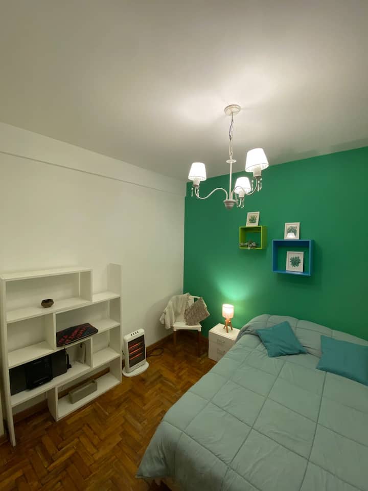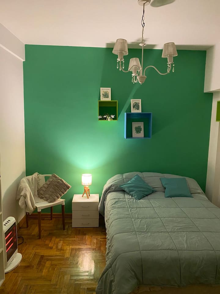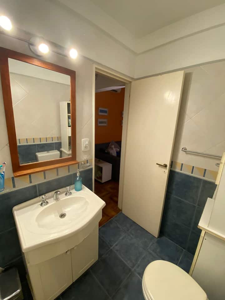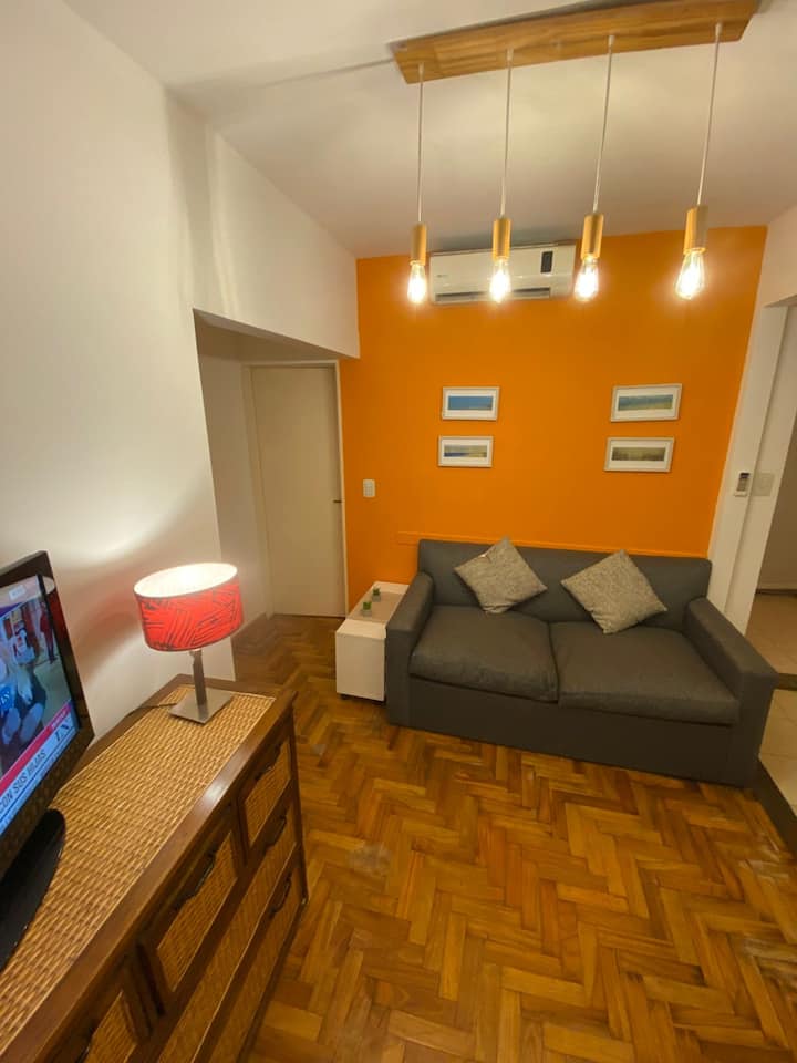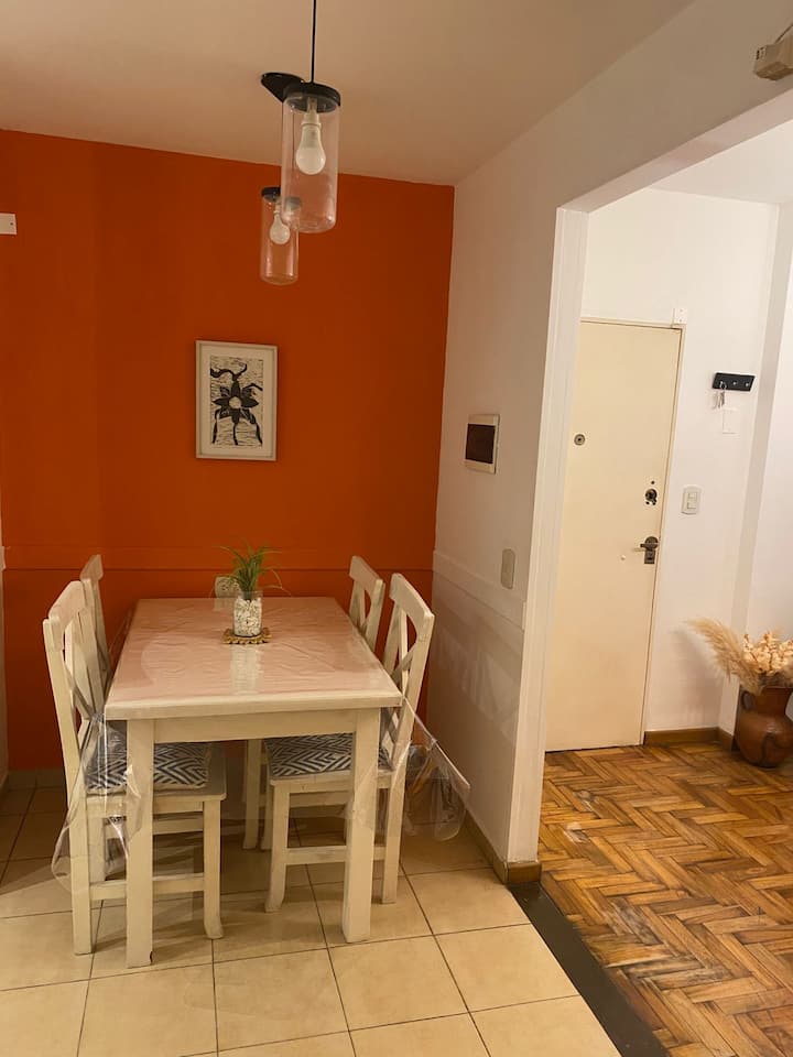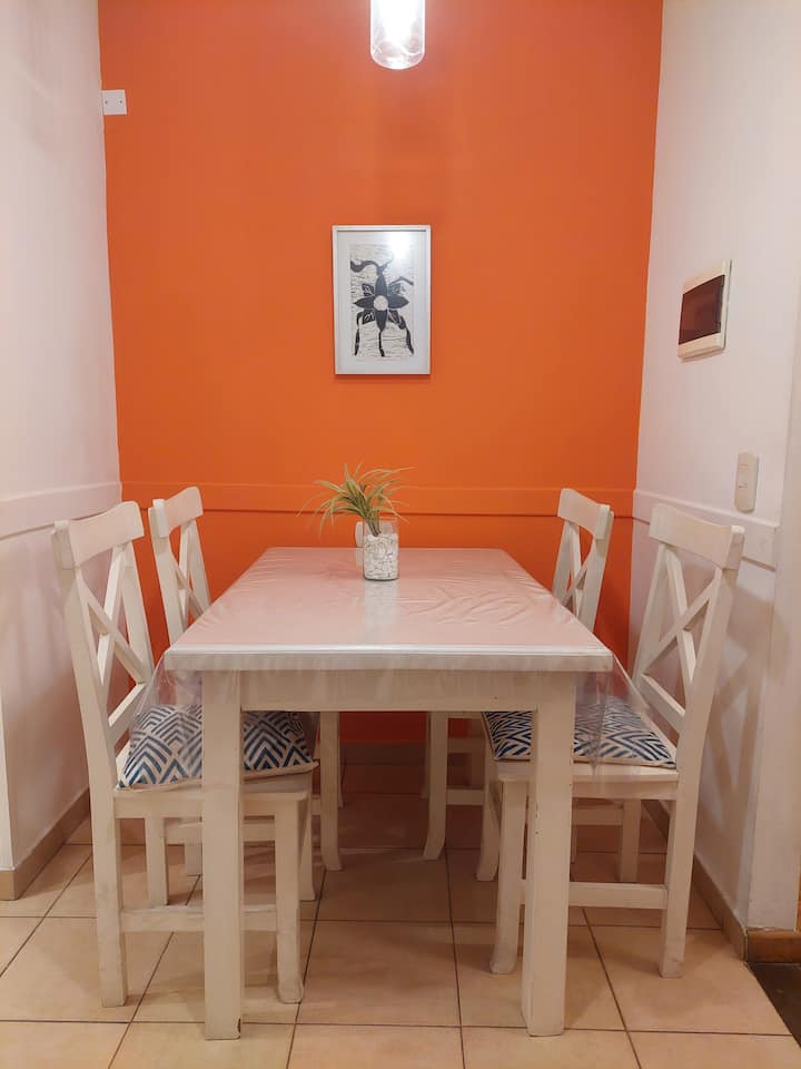 Two-room apartment in Recoleta with 1 bedroom. Includes a full kitchen, full bathroom, TV and WiFi, and air conditioning. Kitchen utensils and bedding and towels are provided.