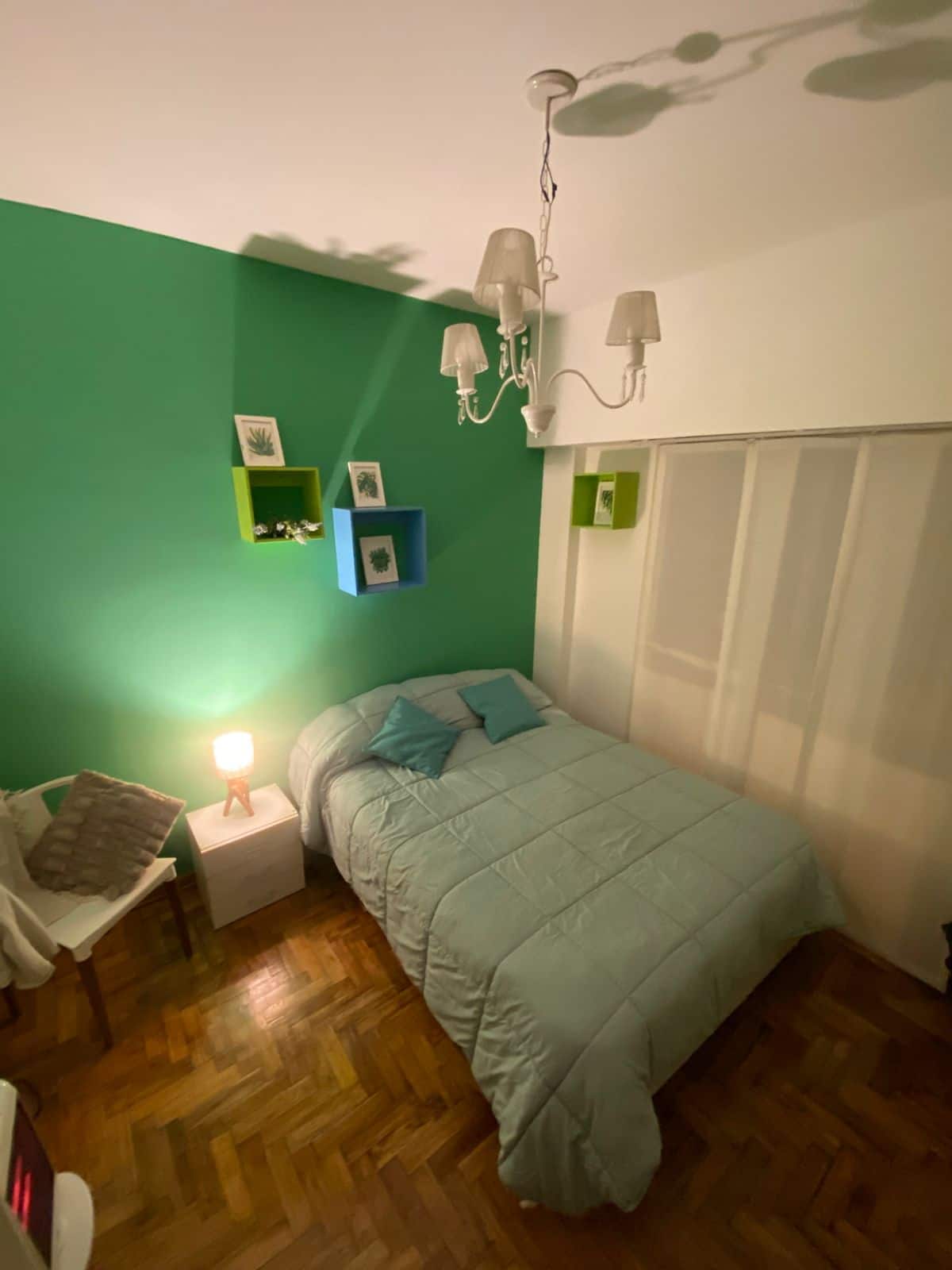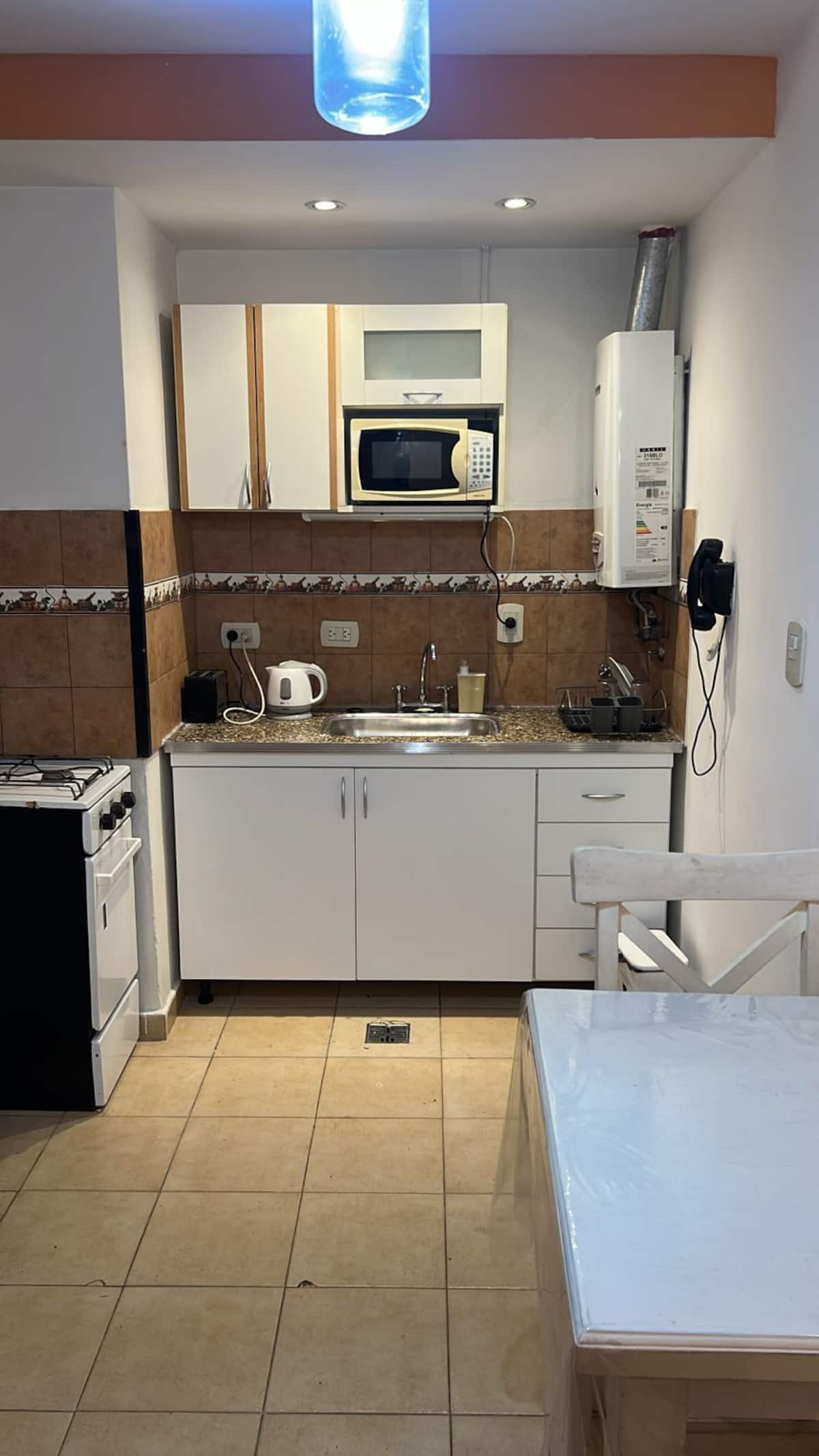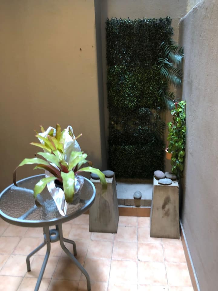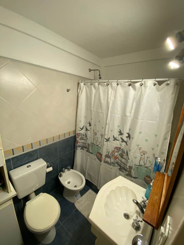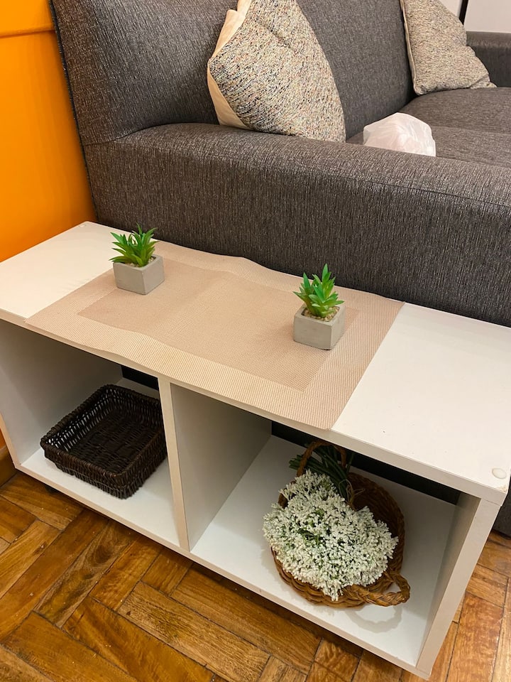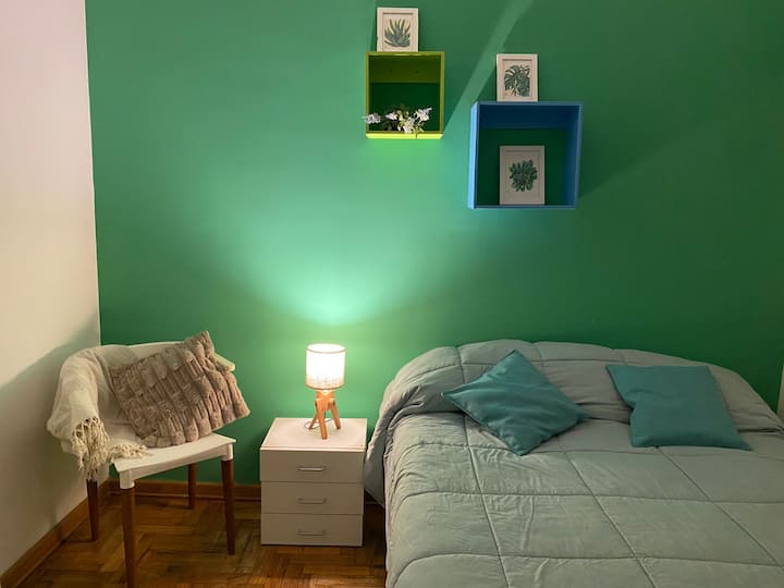 Two-room apartment in Recoleta with 1 bedroom. Includes a full kitchen, full bathroom, TV and WiFi, and air conditioning. Kitchen utensils and bedding and towels are provided.