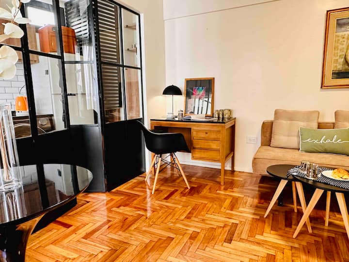 Apartment in Recoleta. Located three blocks from Alto Palermo Shopping and Las Heras Park, and one block from Subte line D and Av. Santa Fe. Within three blocks of hospitals including Alemán, Bazterrica and Suizo.