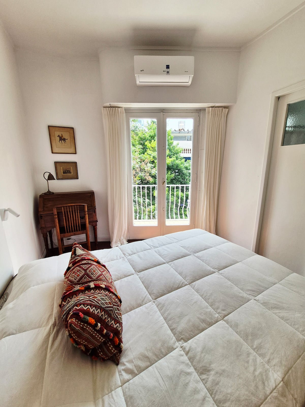 Two-room apartment in Recoleta, on Anchorena street, on the 2nd floor of a well-preserved, quiet older building. Street-facing and bright, with windows in the bedroom, living room, bathroom and kitchen. Equipped with fibre-optic internet, air conditioning in each room and cable TV.