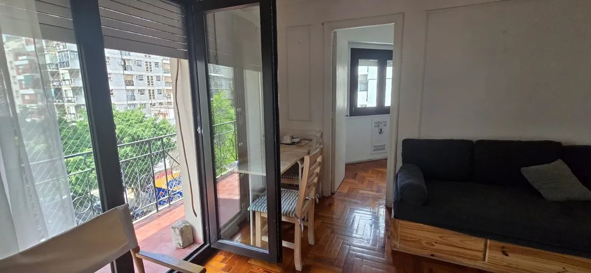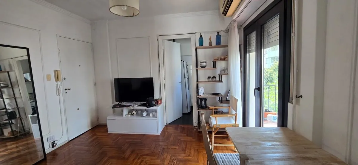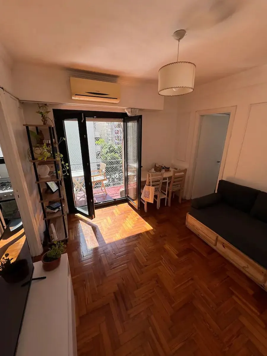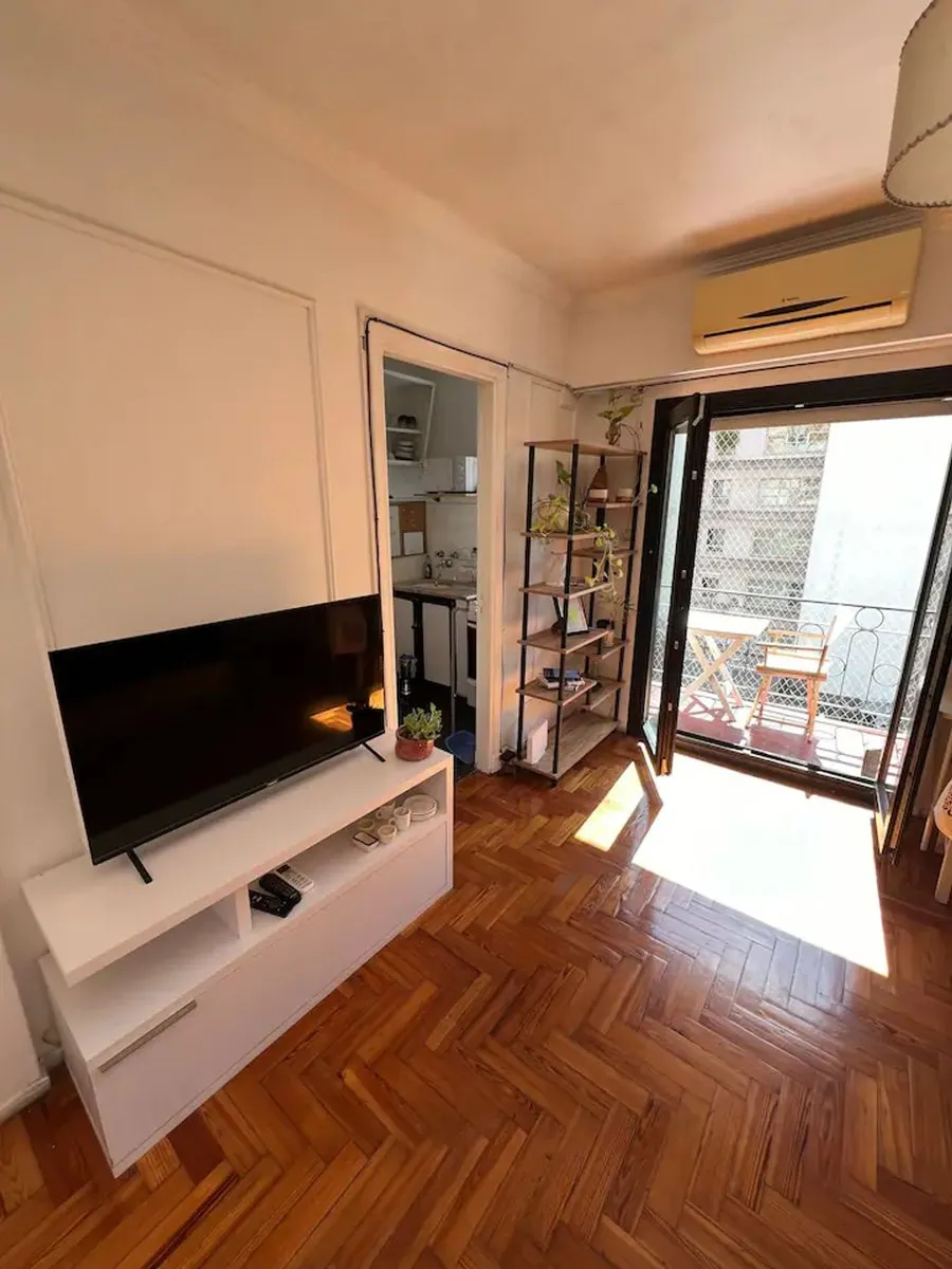 Furnished two-room apartment in Recoleta on French street, in a building completed in 1962. Located on the 5th floor, it has 29 m² covered and 3 m² semi-covered for a total of 32 m², with a balcony street-facing to French. It has 1 bedroom, a living-dining area with space for an additional bed, an equipped kitchen, and a full bathroom with bidet and bathtub. Features include hot-and-cold air conditioning, Smart TV, gas oven, fridge, electric kettle and microwave, and double-glazed sealed windows