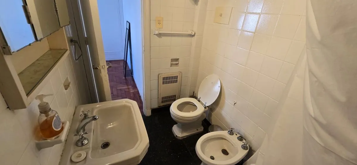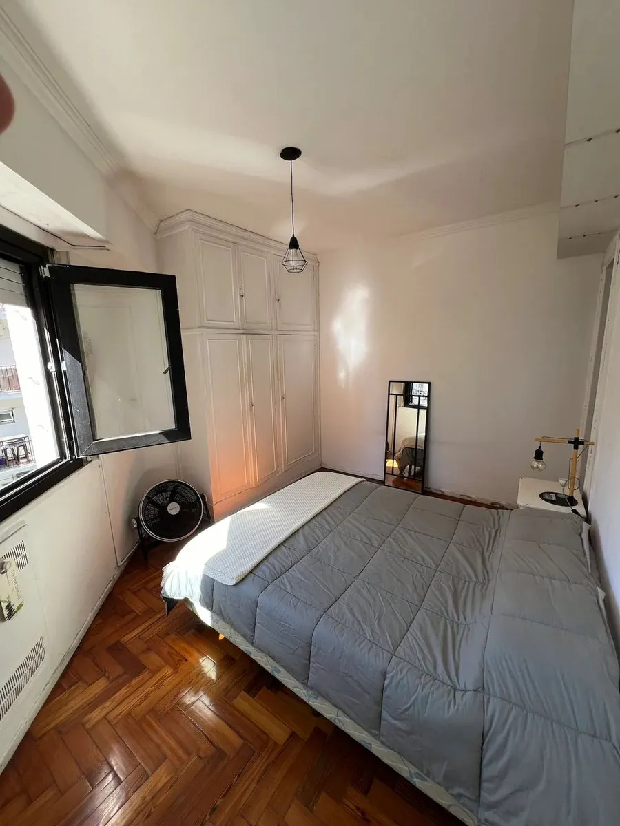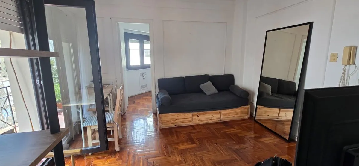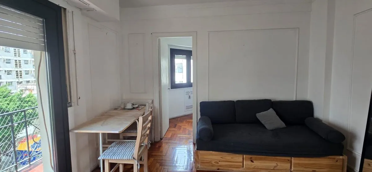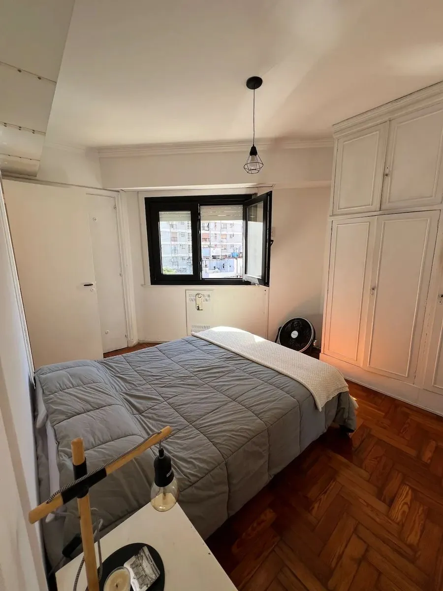 Furnished two-room apartment in Recoleta on French street, in a building completed in 1962. Located on the 5th floor, it has 29 m² covered and 3 m² semi-covered for a total of 32 m², with a balcony street-facing to French. It has 1 bedroom, a living-dining area with space for an additional bed, an equipped kitchen, and a full bathroom with bidet and bathtub. Features include hot-and-cold air conditioning, Smart TV, gas oven, fridge, electric kettle and microwave, and double-glazed sealed windows