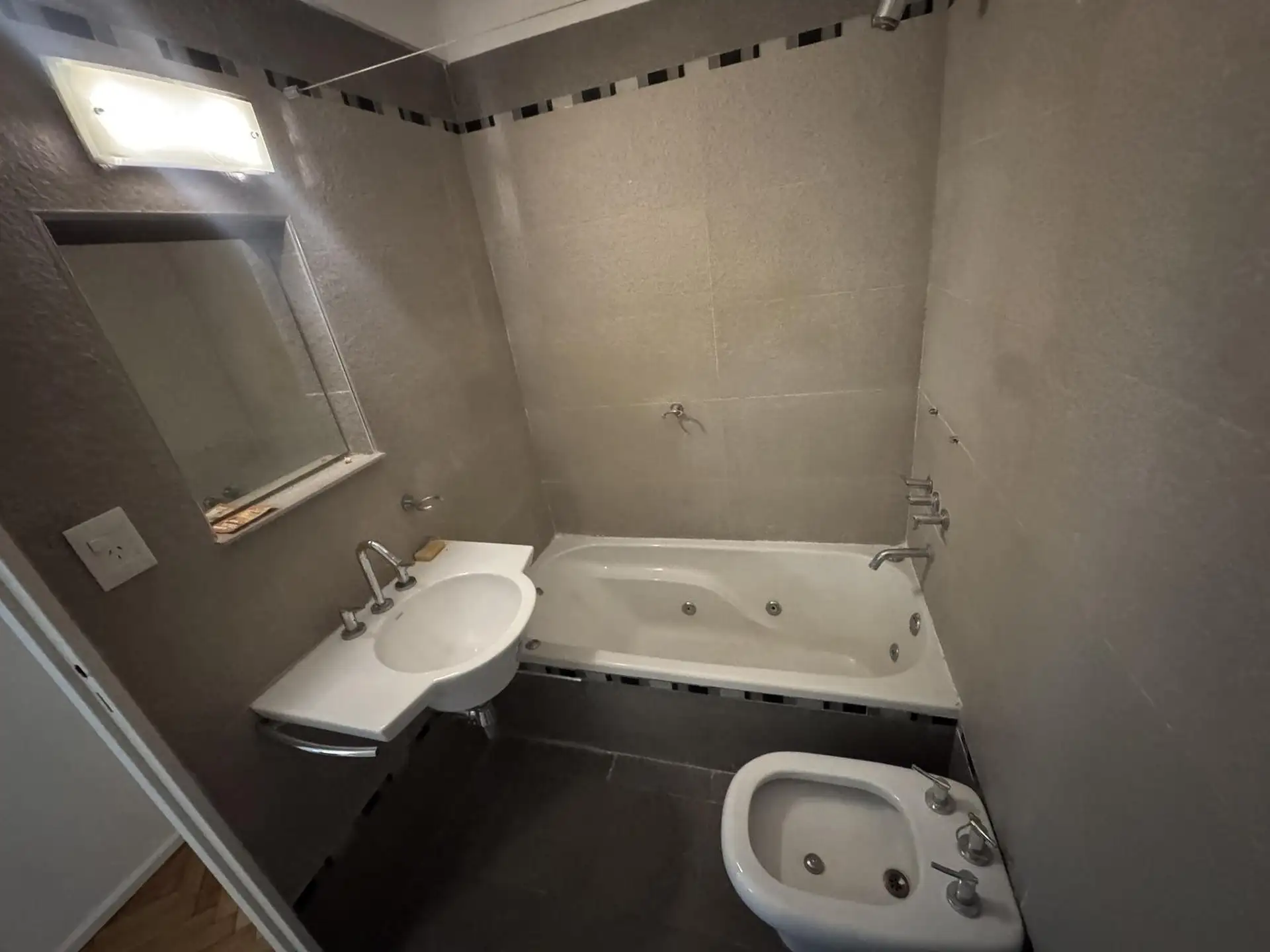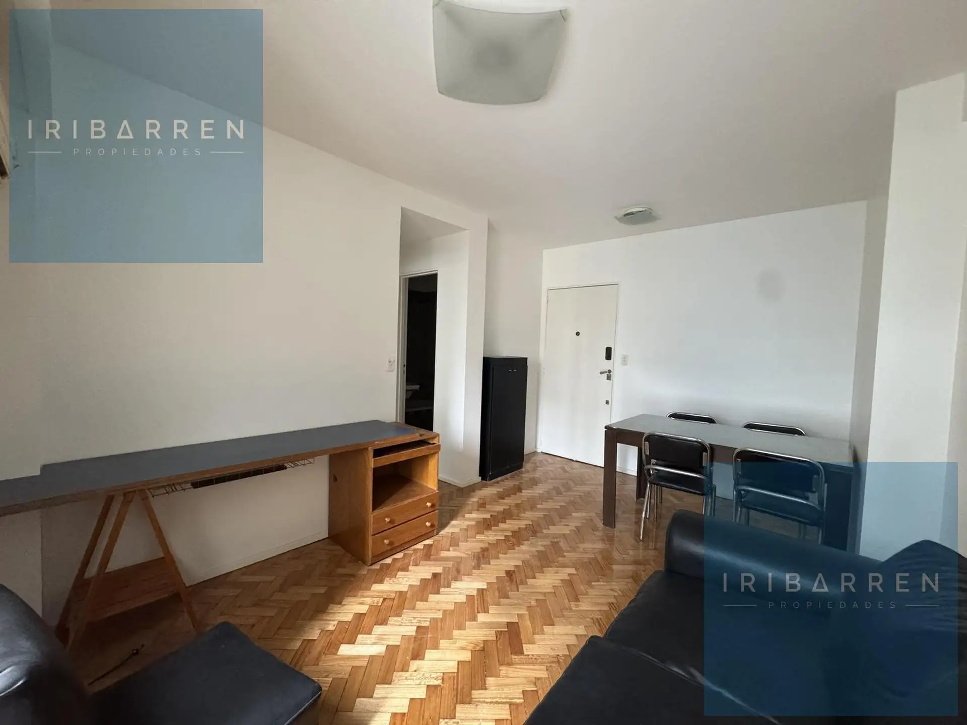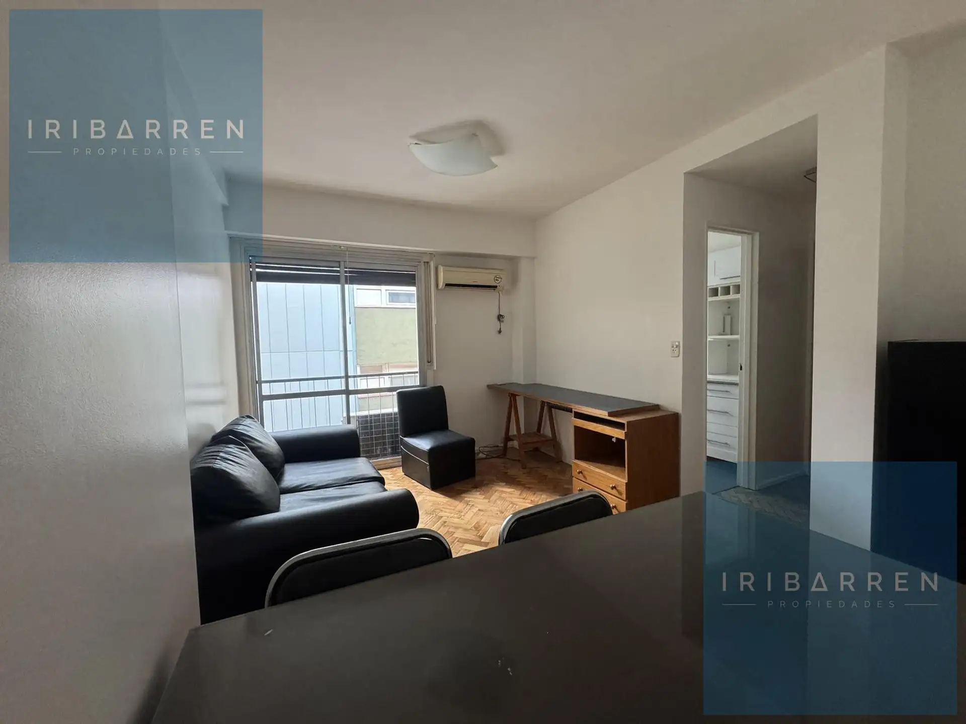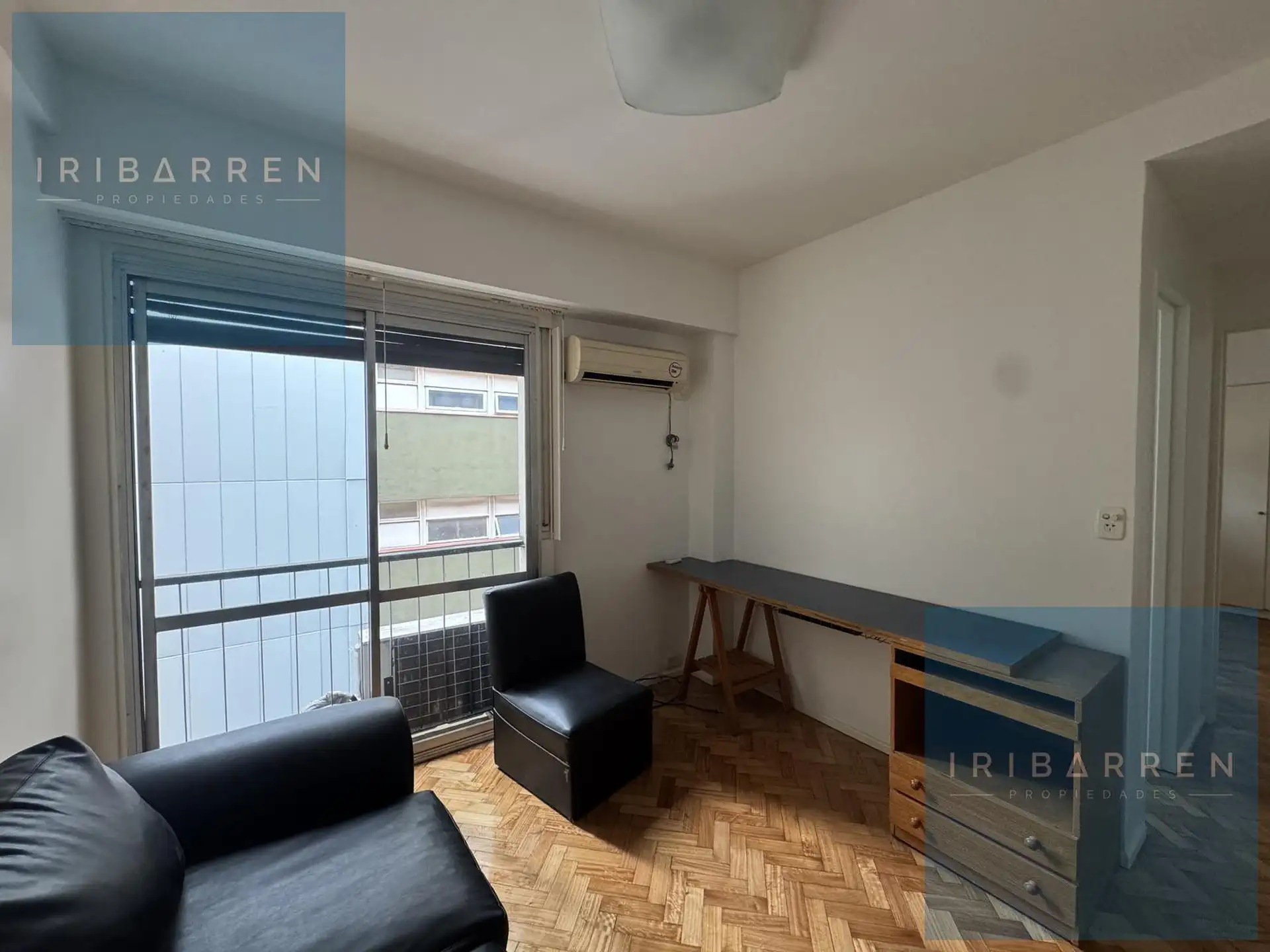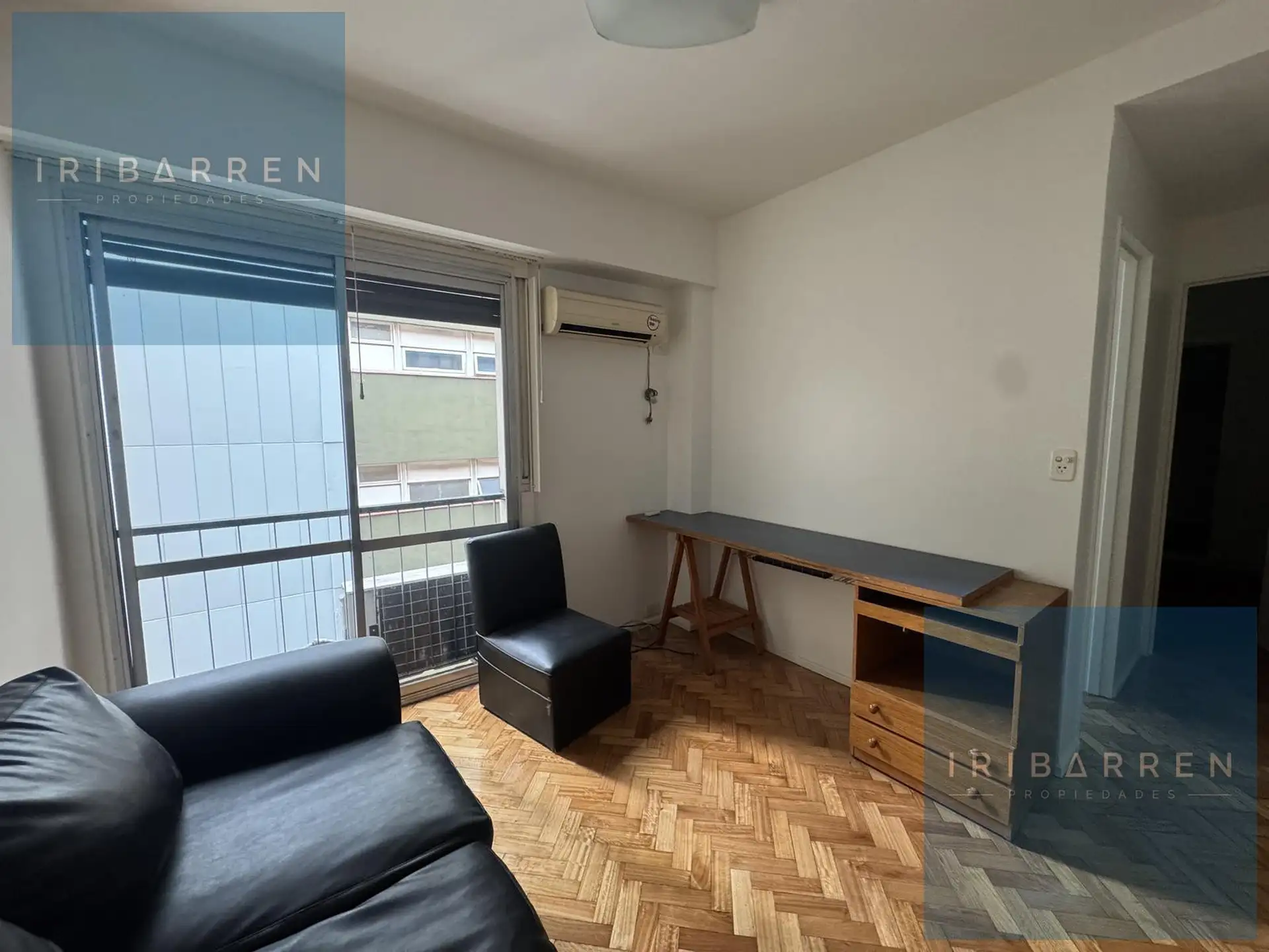 Two-room apartment for rent in Recoleta with 1 bedroom. Living-dining area and bedroom both have a French balcony, with a full bathroom and a fully equipped kitchen that has space for a washing machine. The unit has cold air conditioning in the living area, central radiant slab heating, central hot water, and a gas stove with oven. No pets. Location is about 100 metres from Av. Callao and 550 metres from Av. Santa Fé.