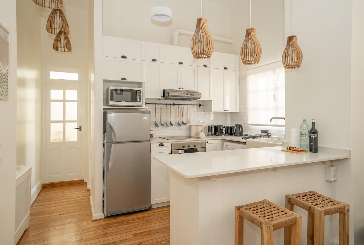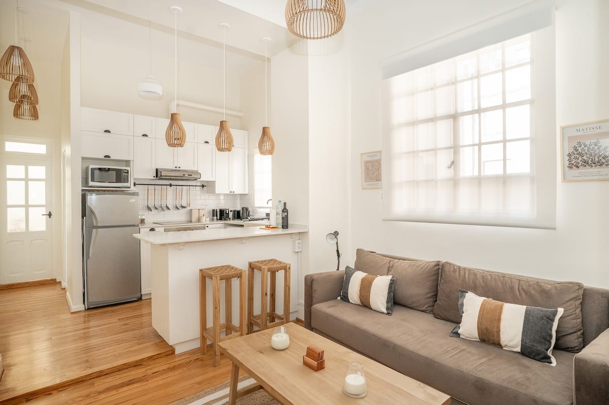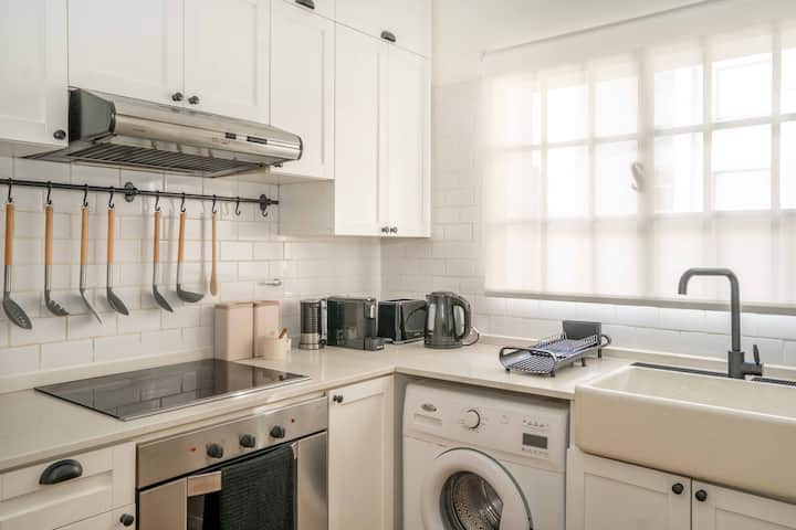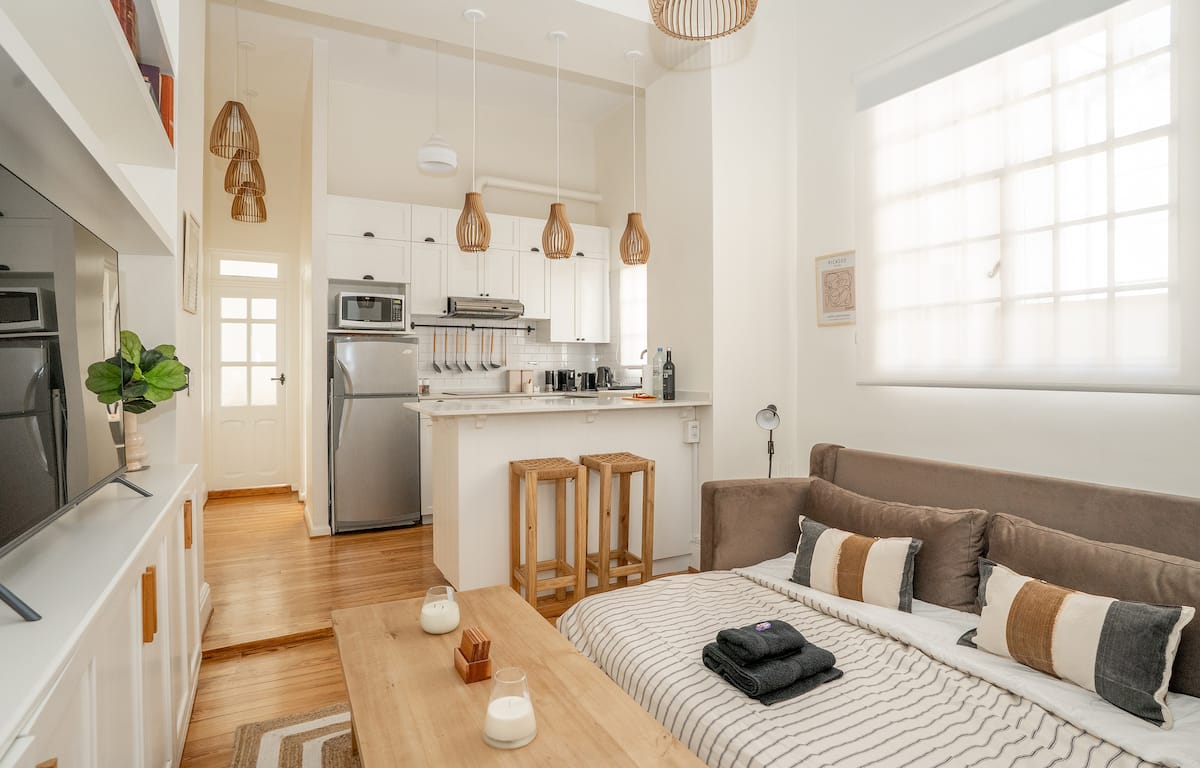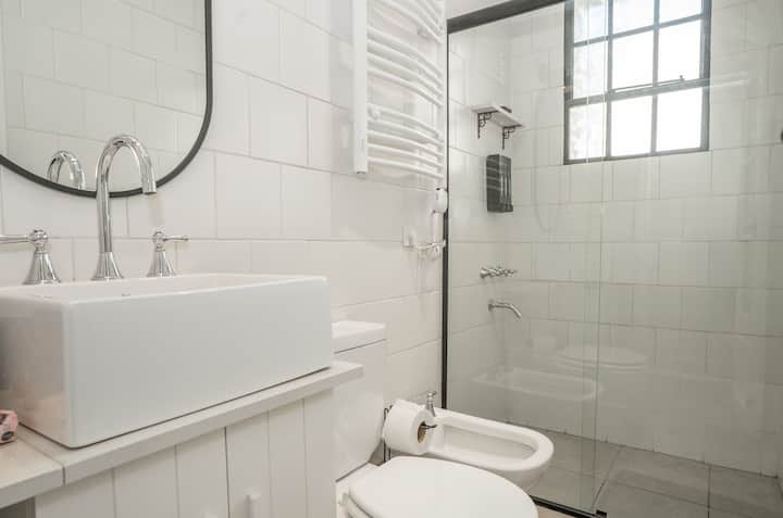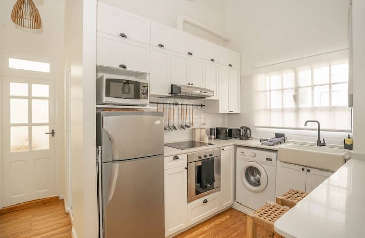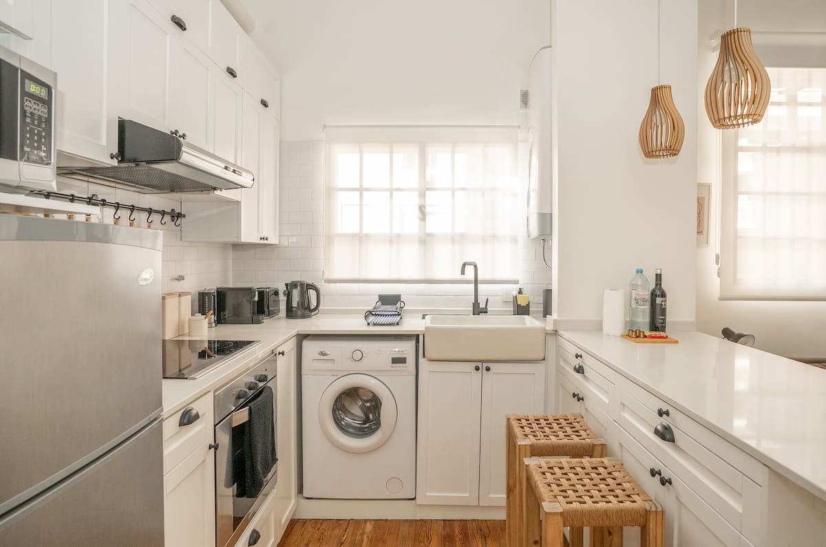Two-room apartment in Recoleta, refurbished and presented as new. The bedroom has a closet, a work desk and a Smart TV. The living room includes a sofa with pull-out bed and a Smart TV. The fully equipped kitchen has an electric oven, refrigerator, coffee maker, microwave, toaster, electric kettle and kitchen utensils. The bathroom has been modernised, and the unit has air conditioning in all rooms plus radiator heating.