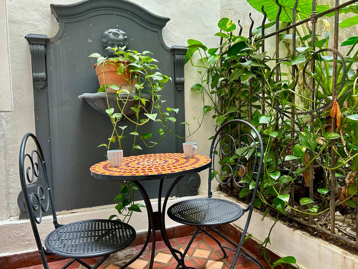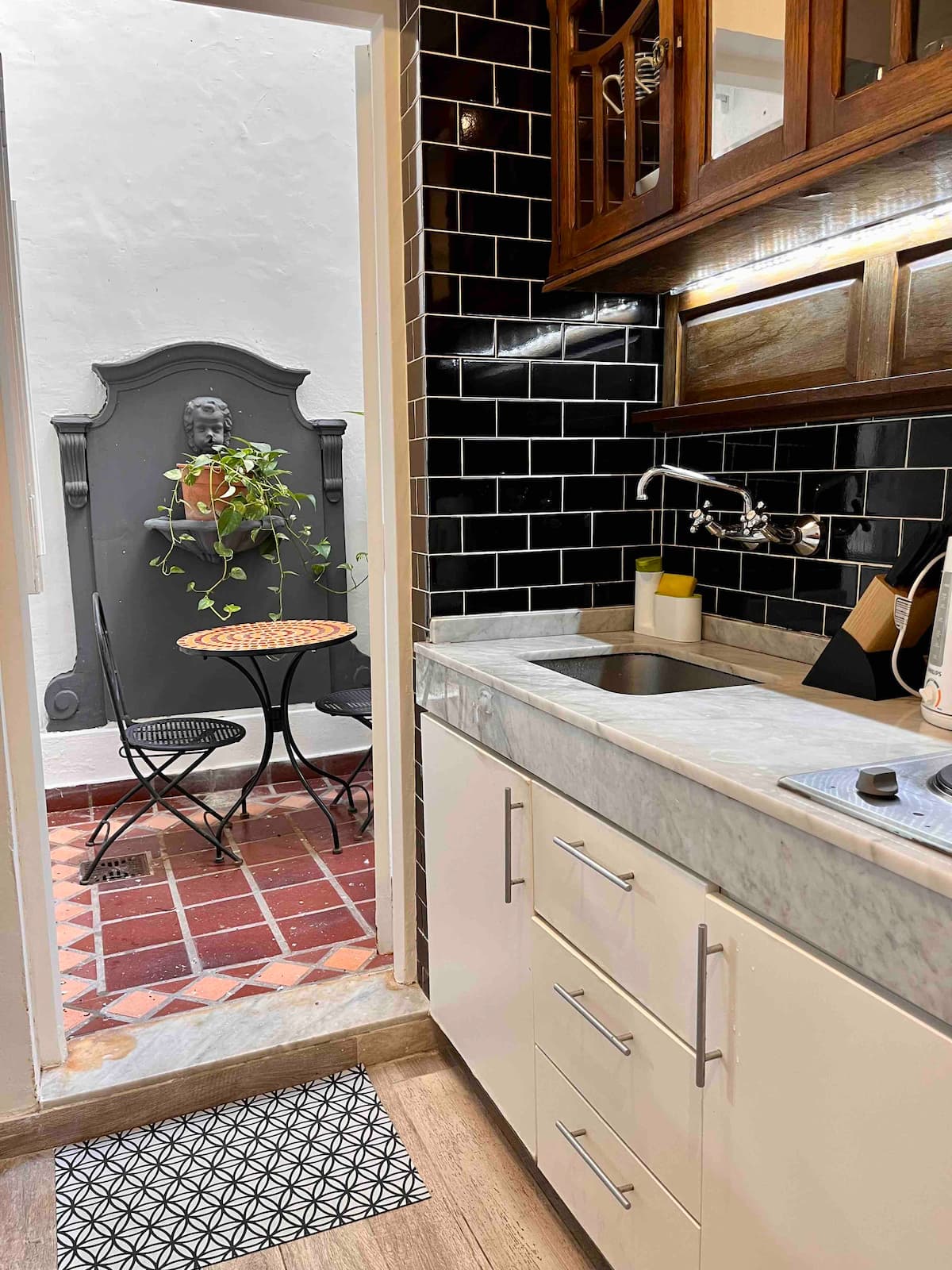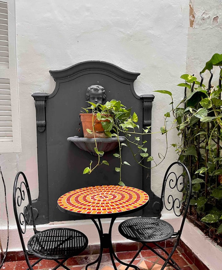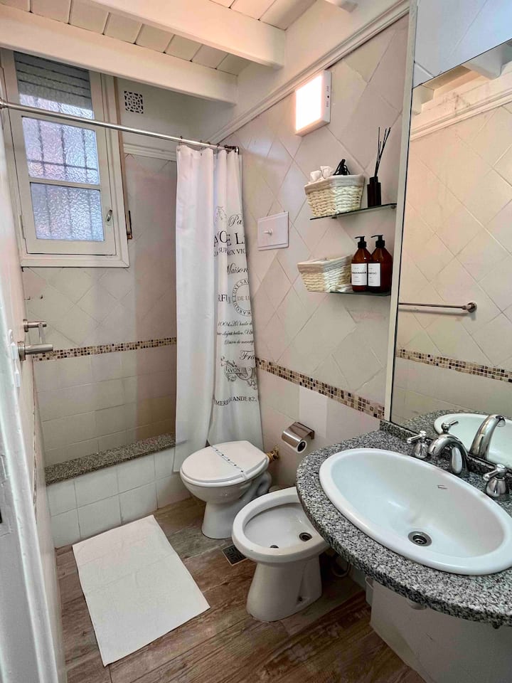 Recycled studio apartment in a building in Recoleta. It is for up to 4 people and includes a private patio. The apartment is described as fully refurbished, with modern design.