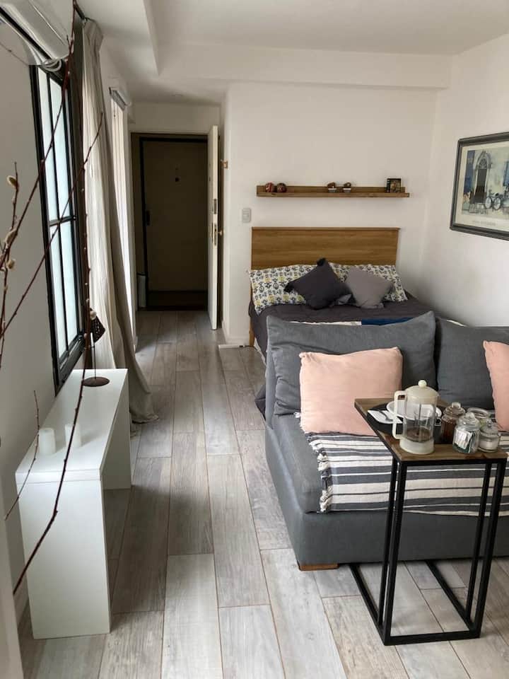 Studio apartment in Recoleta with air conditioning, a TV, and WiFi. Located near Av. Las Heras, Av. Libertador and Av. Santa Fe, with nearby public transport, restaurants and supermarkets.