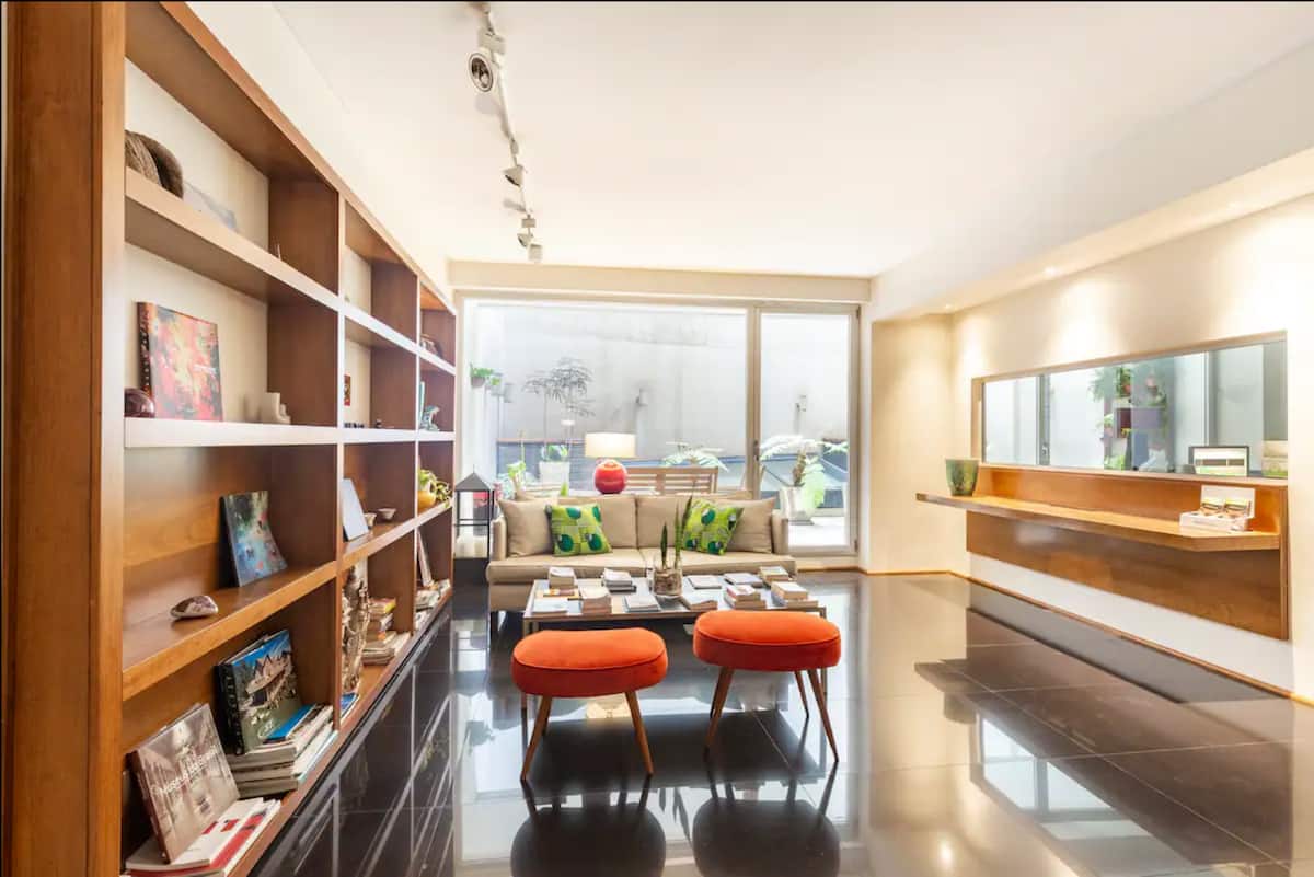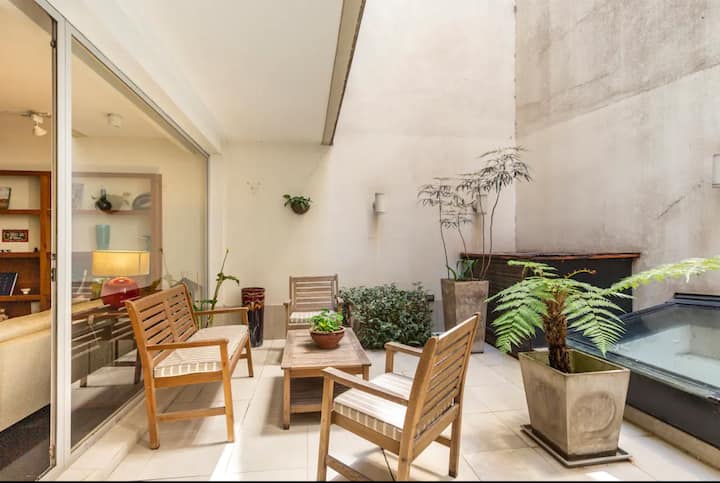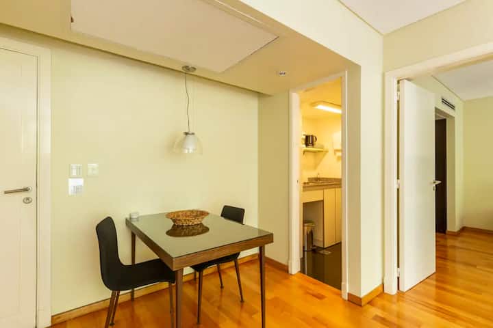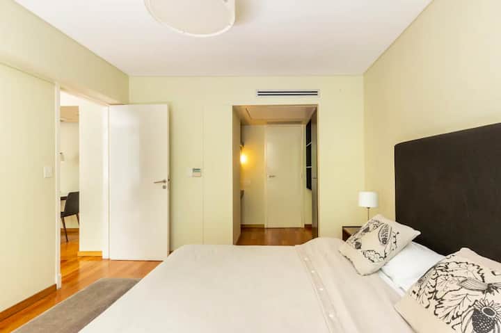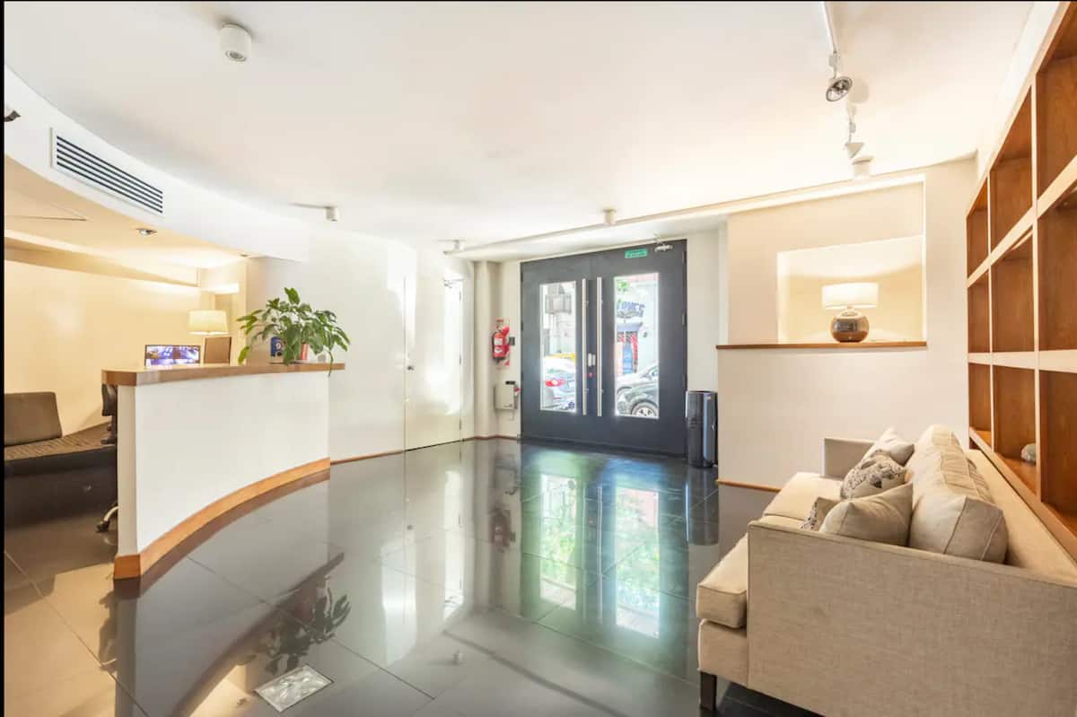 One-bedroom apartment in Recoleta. The building has a reception desk until 3:00 PM; later check-ins require advance scheduling. After 8:00 PM there is an additional charge of $10 USD, and check-ins beyond 24 hours cost $25 USD; the $25 charge is waived if arrival is by plane and the airport transfer is coordinated with the building’s “trusted driver”.