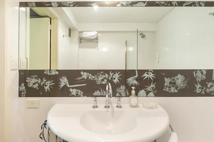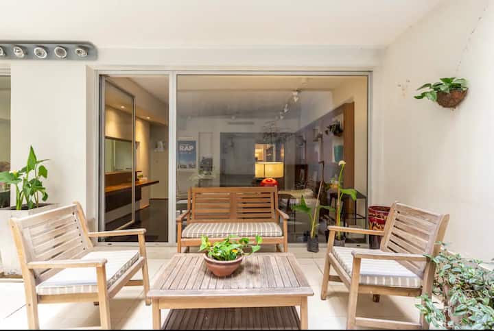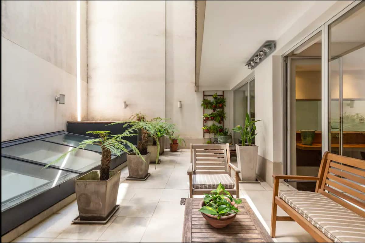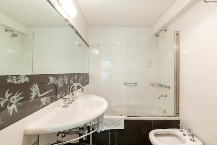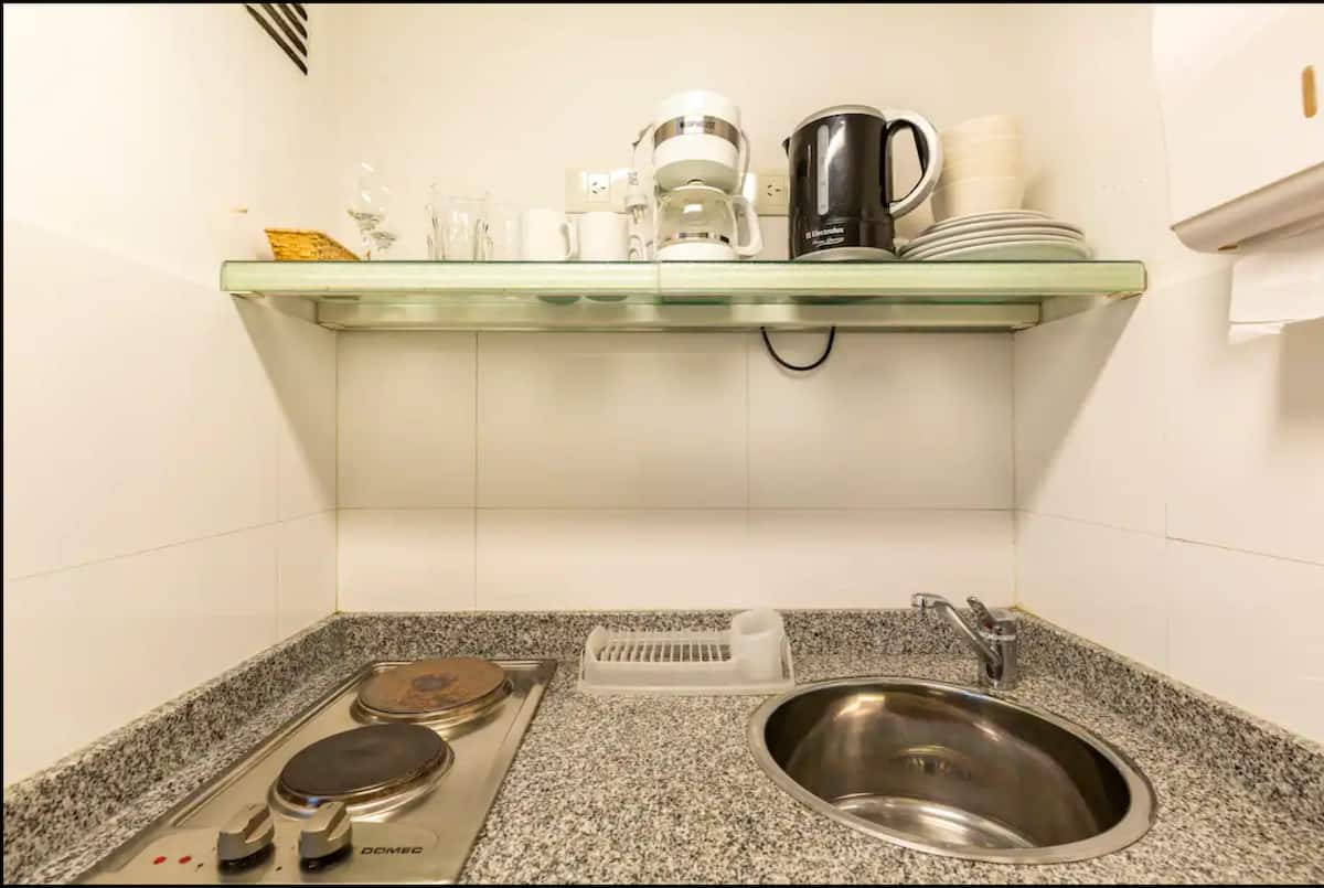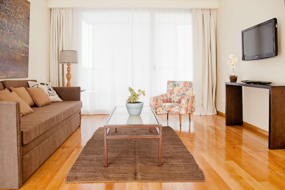 One-bedroom apartment in Recoleta. The building has a reception desk until 3:00 PM; later check-ins require advance scheduling. After 8:00 PM there is an additional charge of $10 USD, and check-ins beyond 24 hours cost $25 USD; the $25 charge is waived if arrival is by plane and the airport transfer is coordinated with the building’s “trusted driver”.