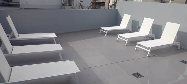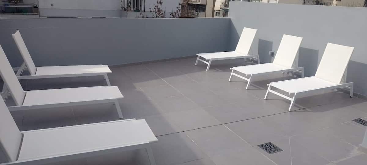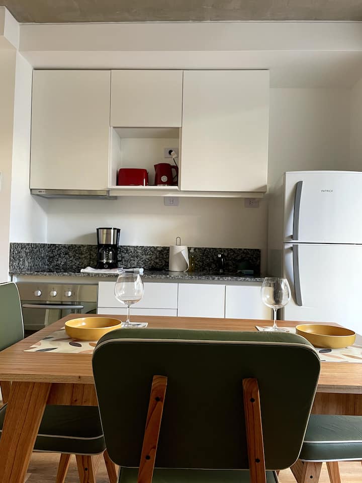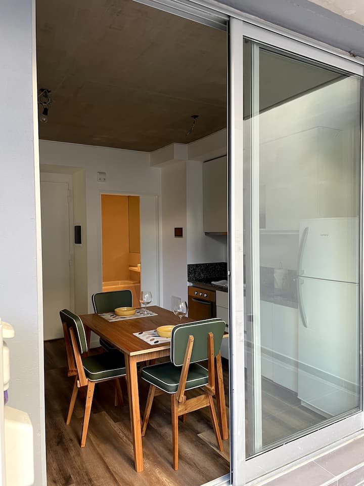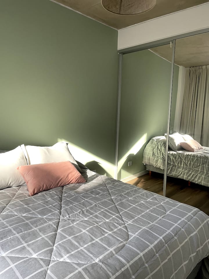 One-bedroom apartment in Recoleta. The listing notes proximity to the subway and multiple bus lines. The apartment is described as quiet and functional for short stays and longer visits.