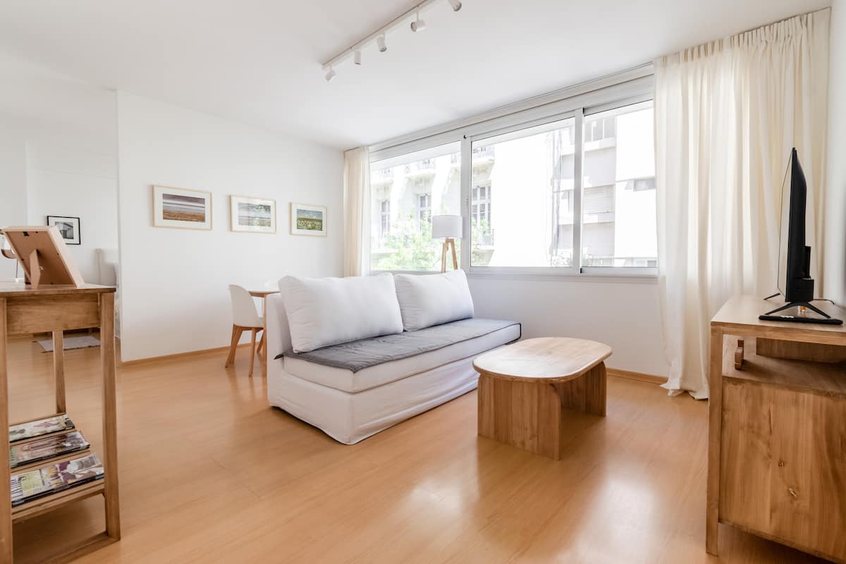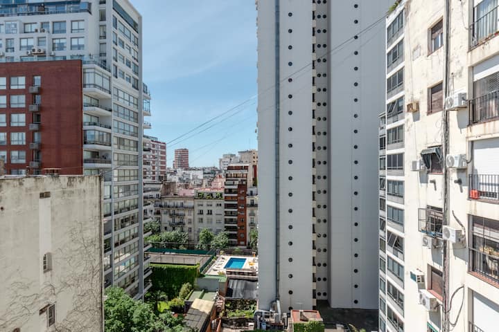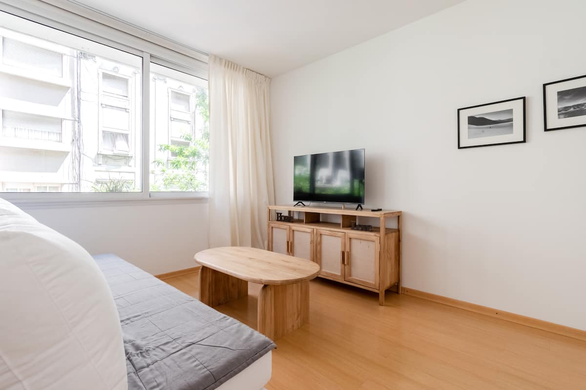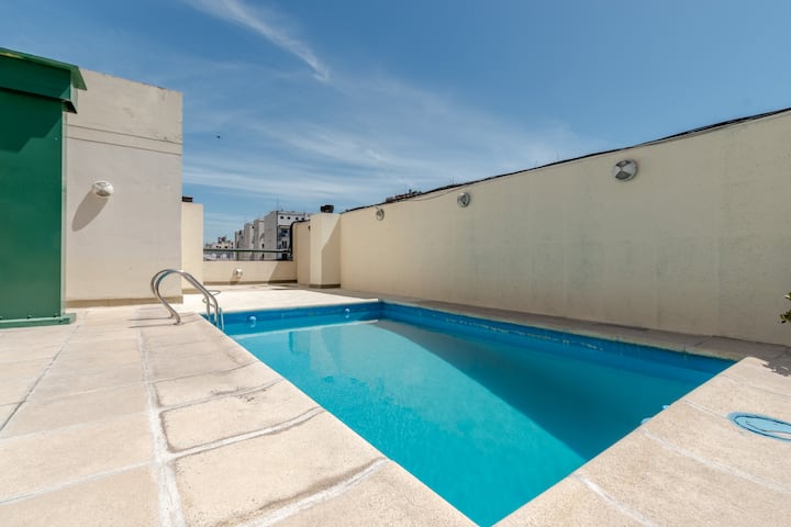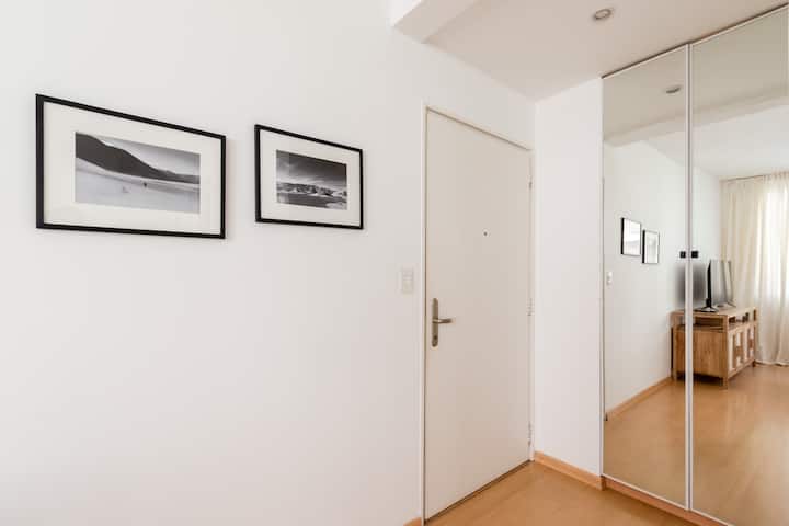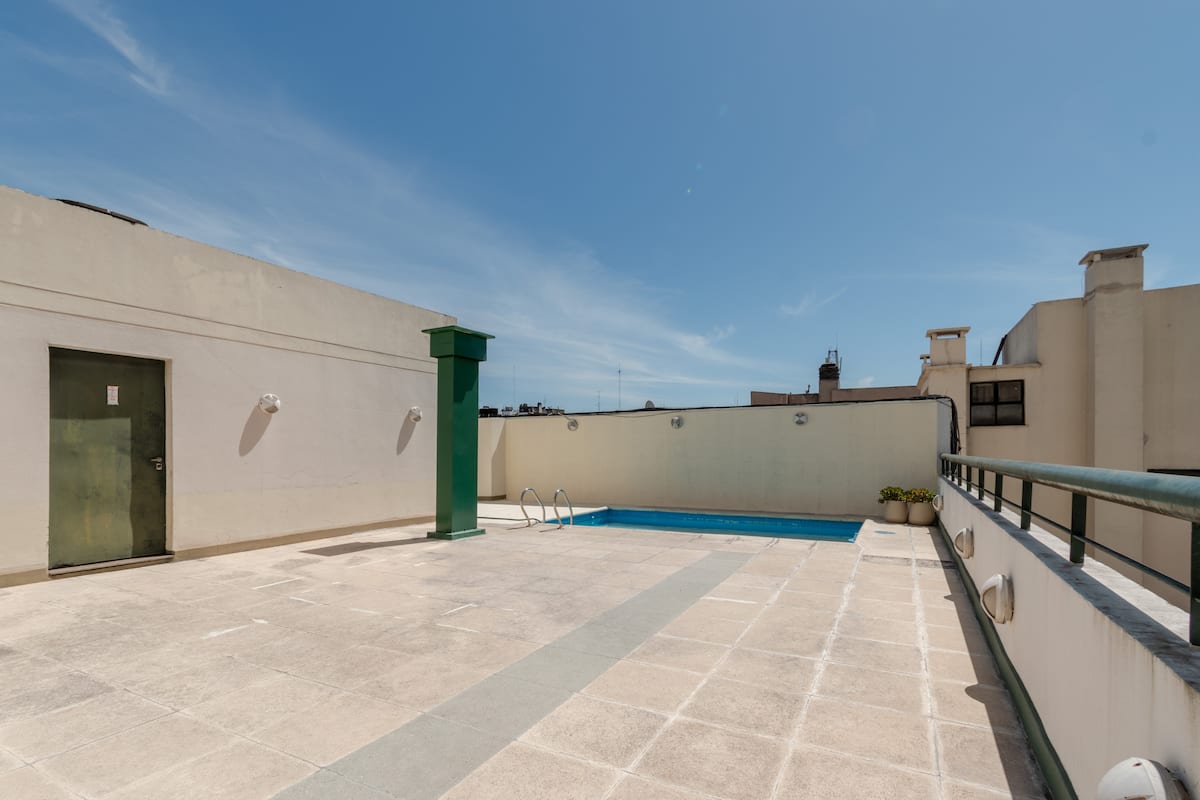 One-bedroom apartment in Recoleta for up to 3 people. The master bedroom has a double bed and an additional single armchair bed. The building has a swimming pool and a laundry room.
