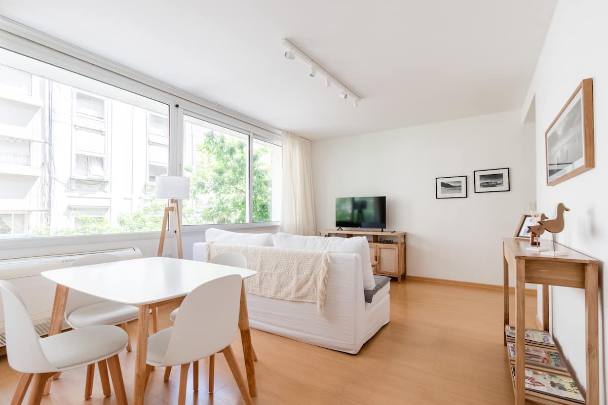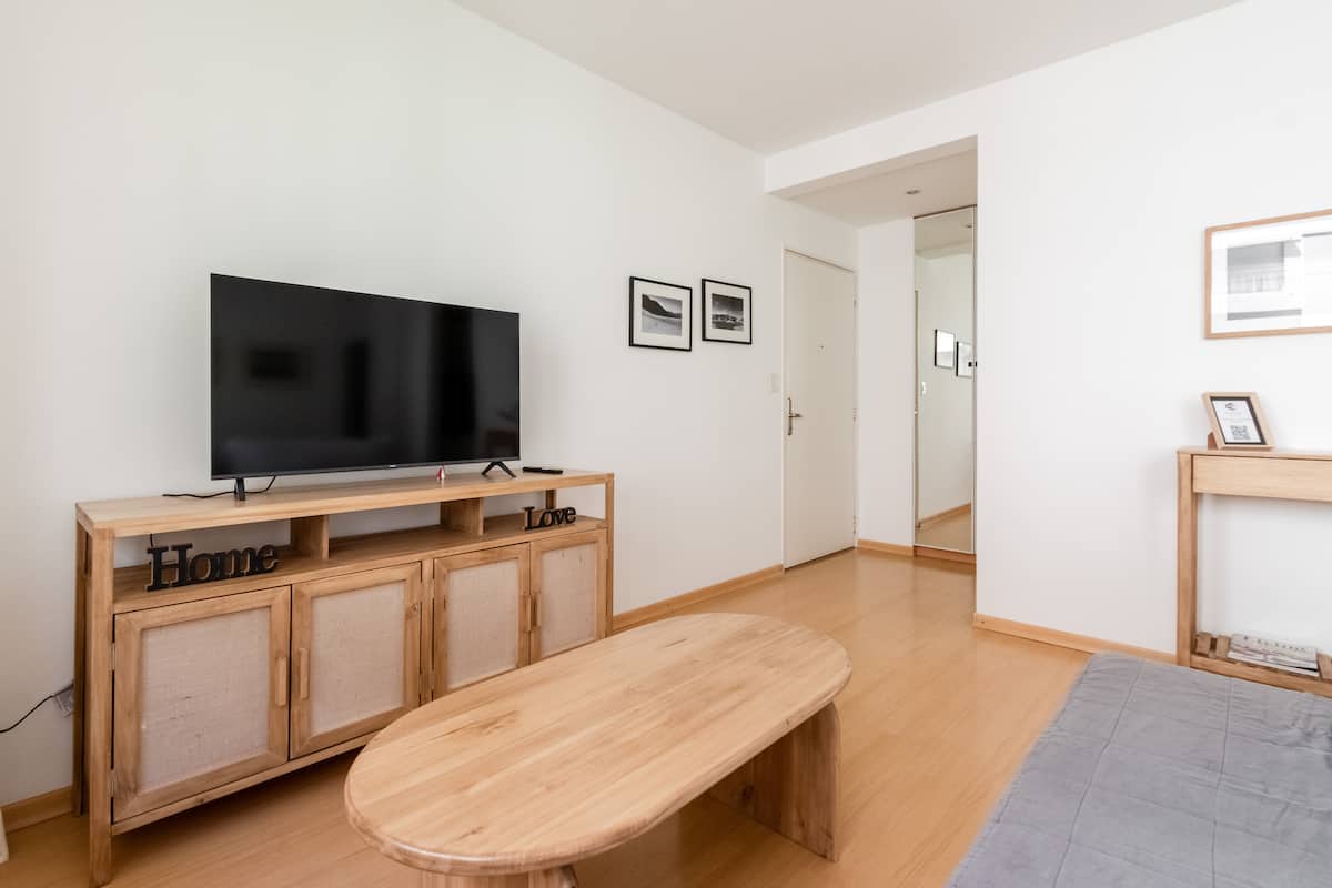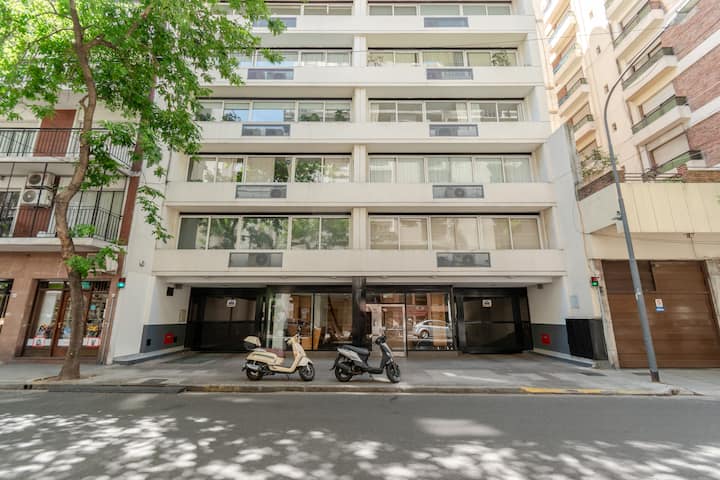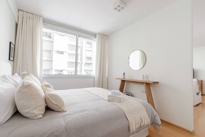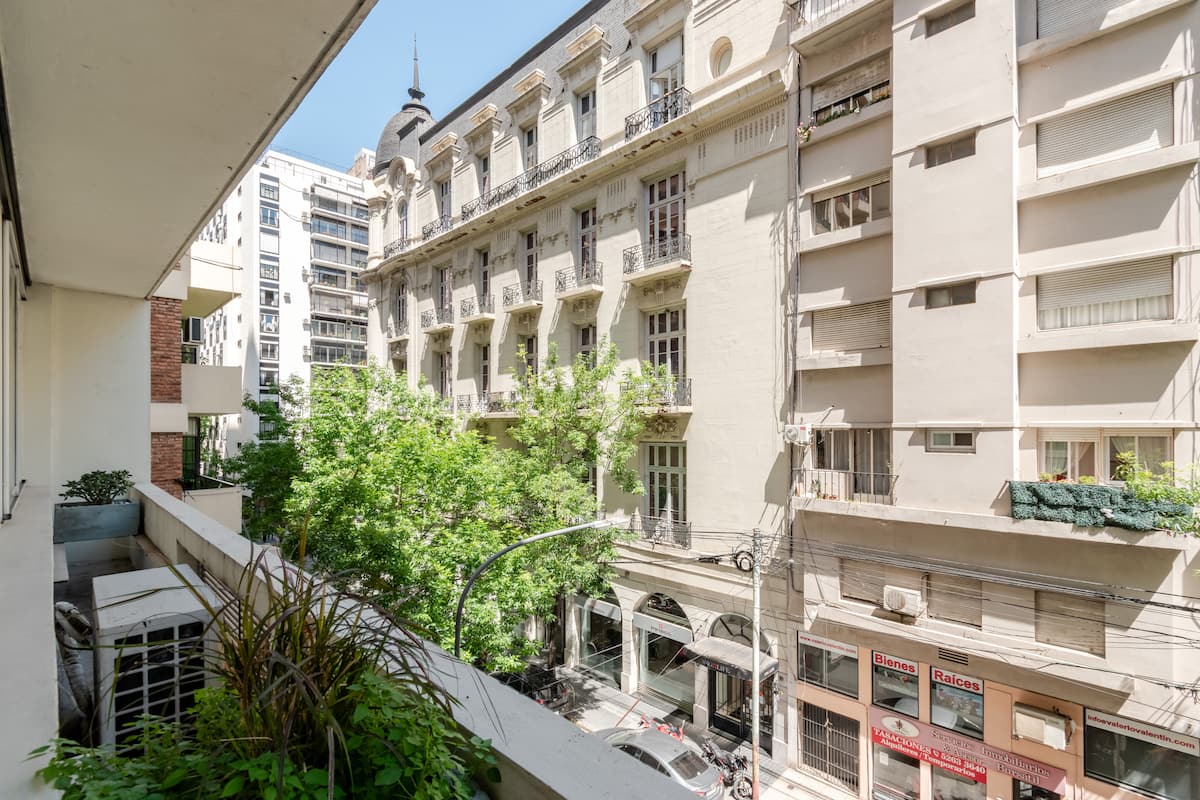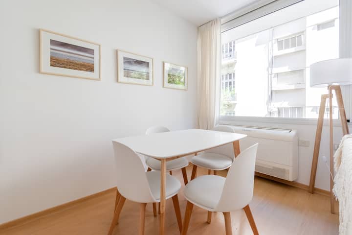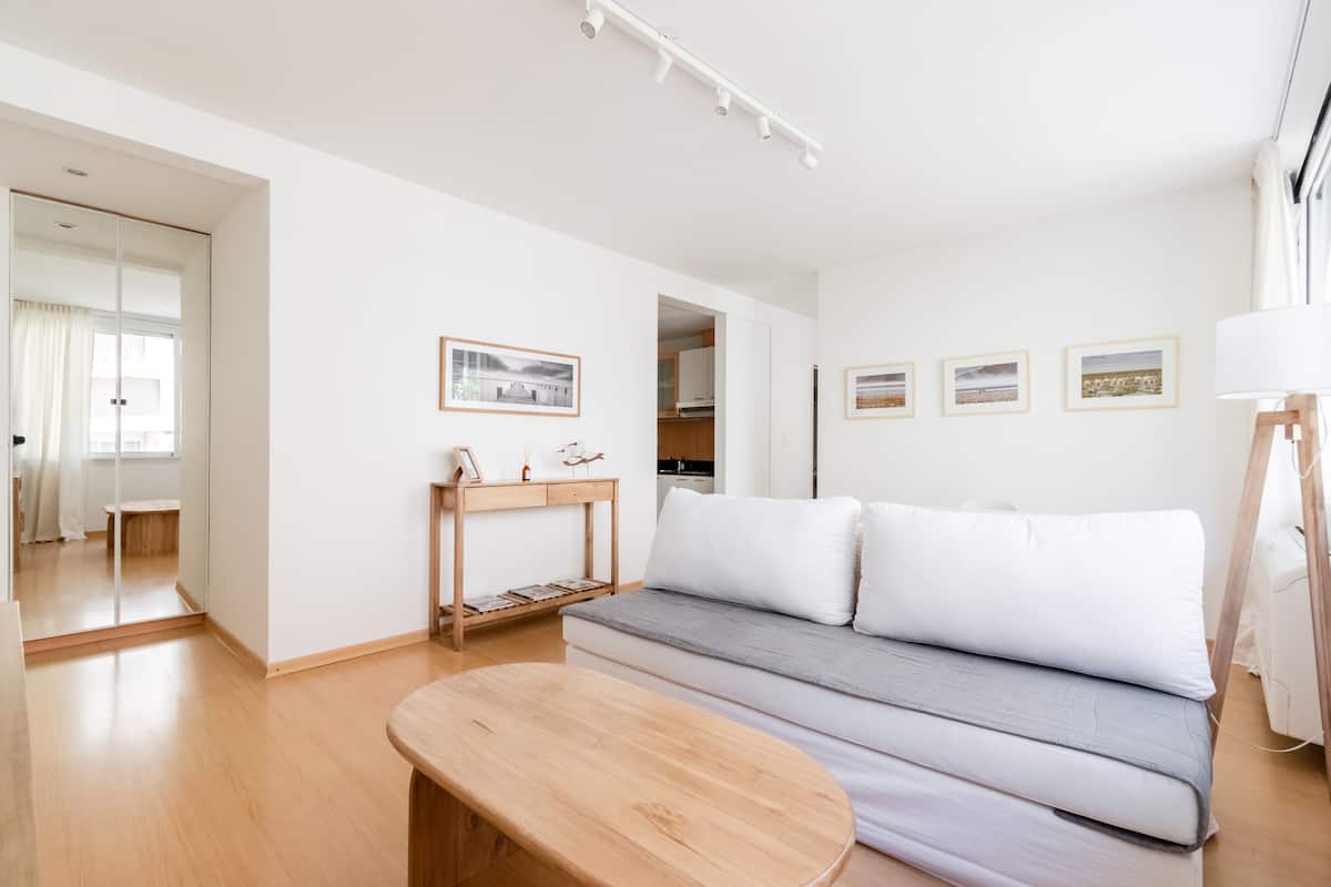 One-bedroom apartment in Recoleta for up to 3 people. The master bedroom has a double bed and an additional single armchair bed. The building has a swimming pool and a laundry room.