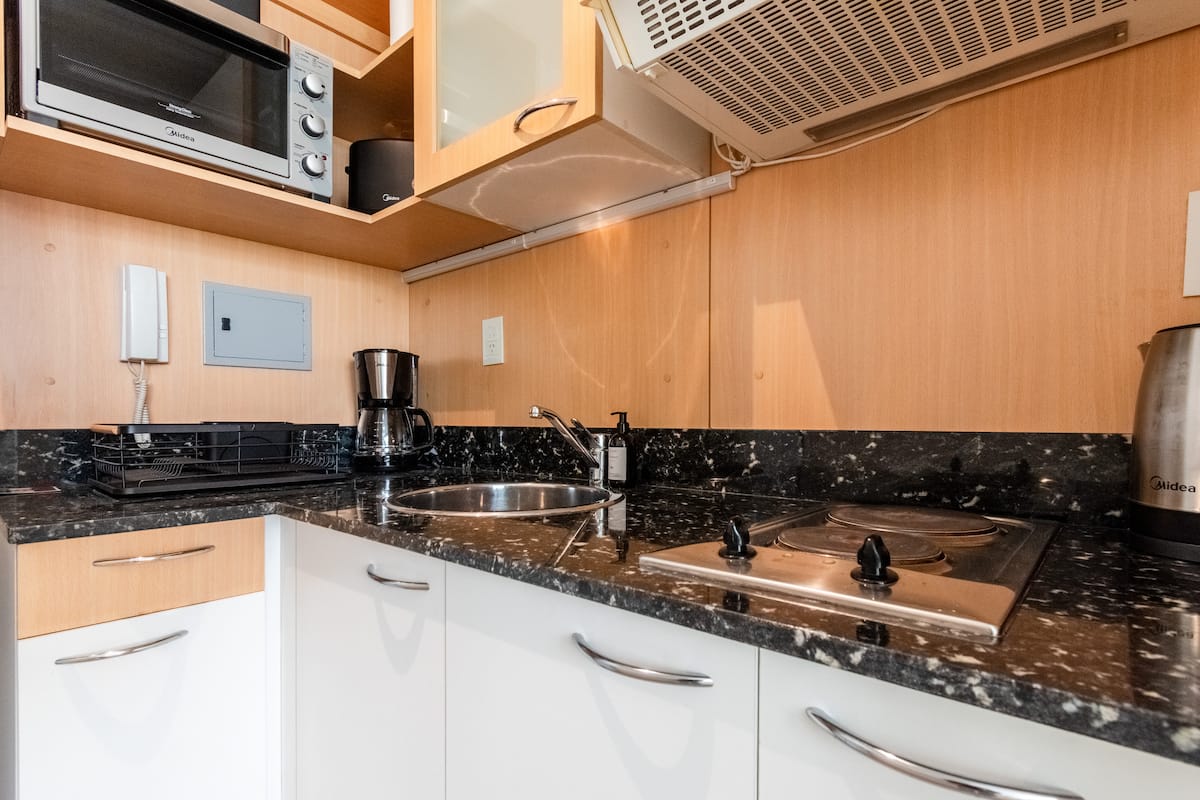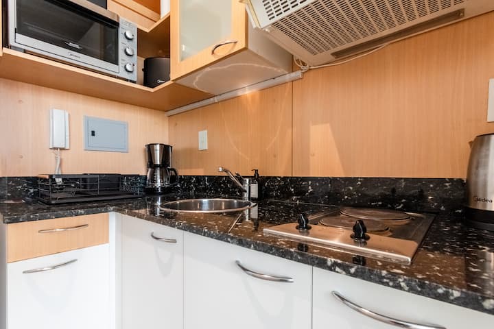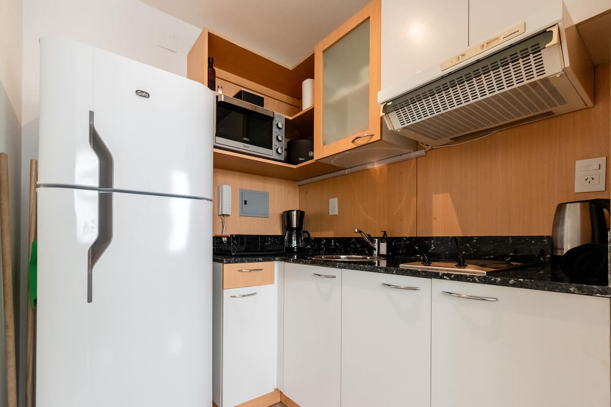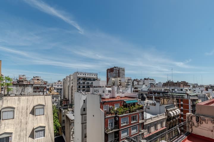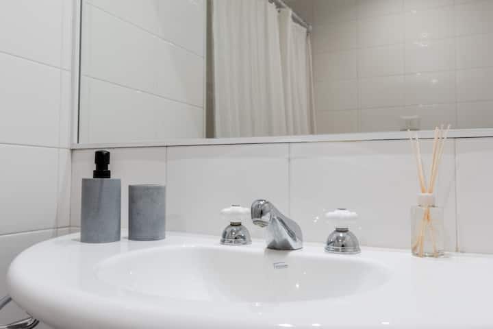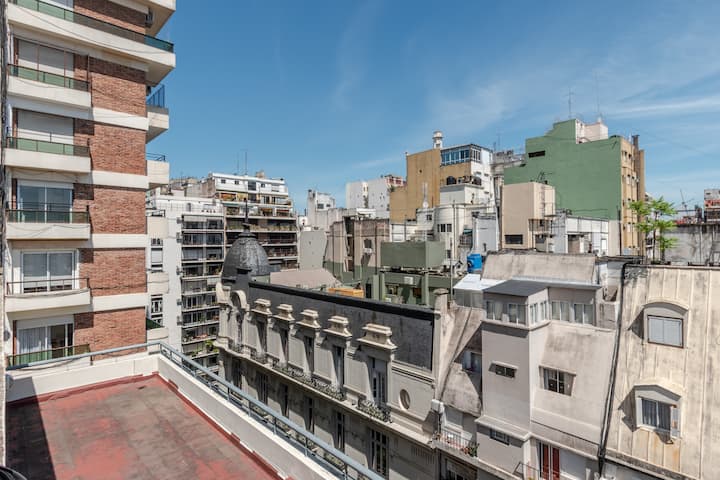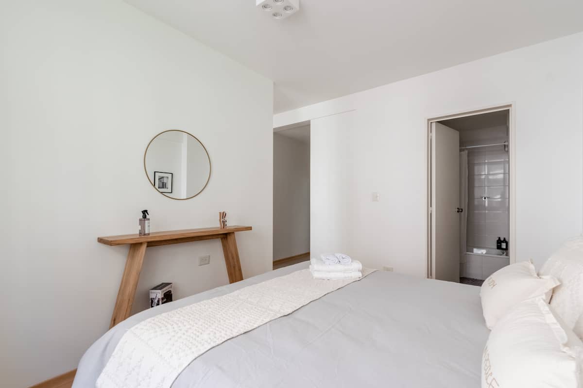 One-bedroom apartment in Recoleta for up to 3 people. The master bedroom has a double bed and an additional single armchair bed. The building has a swimming pool and a laundry room.