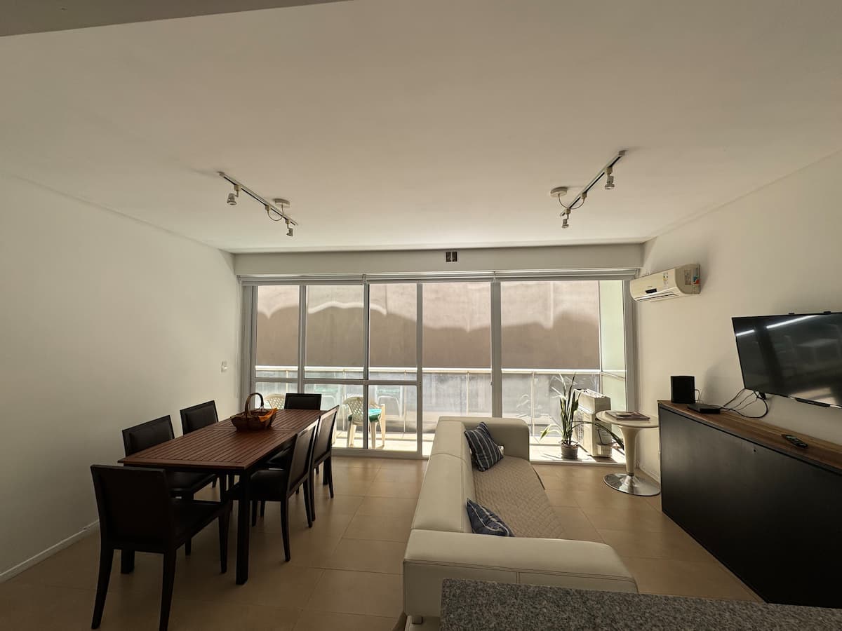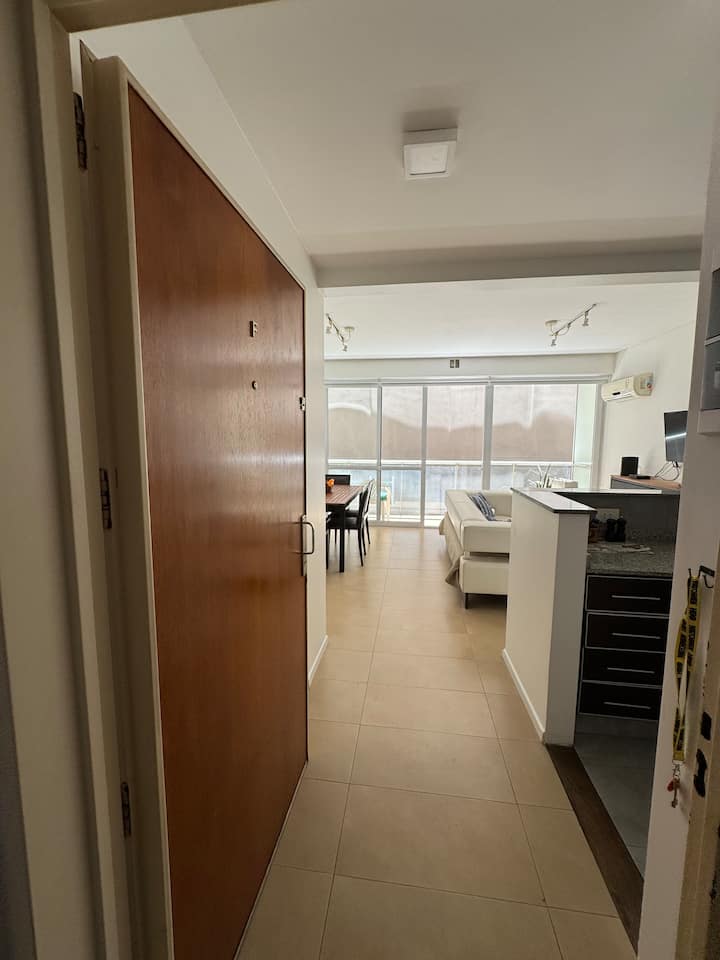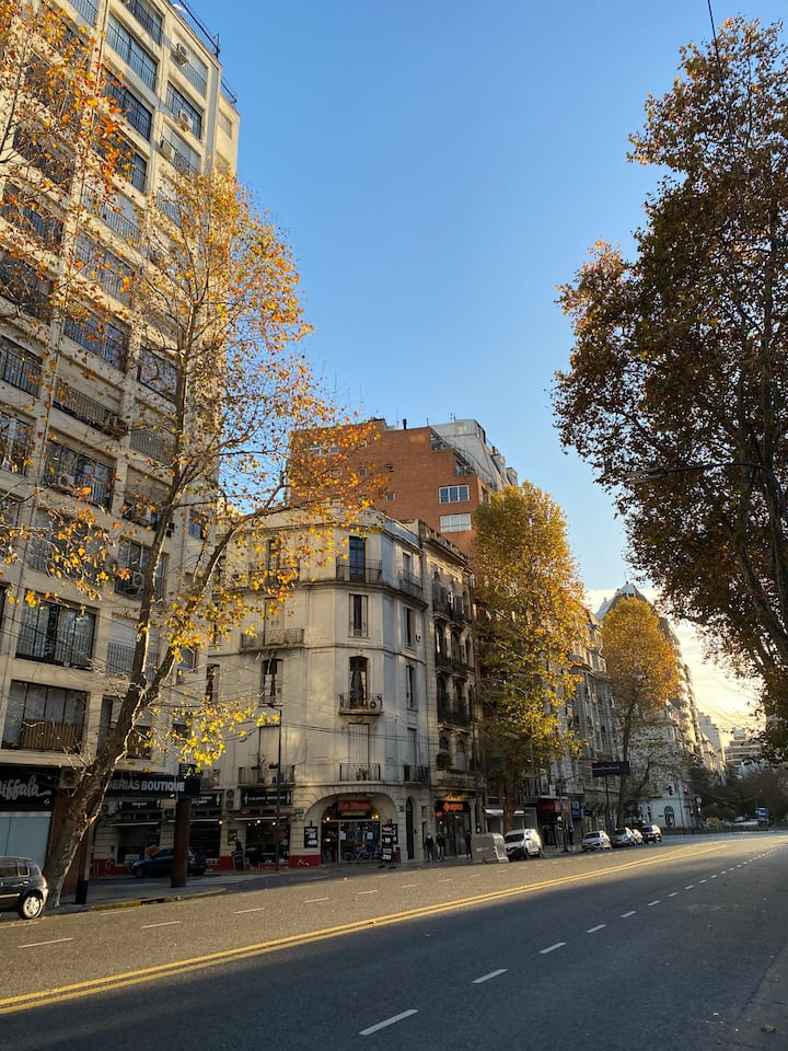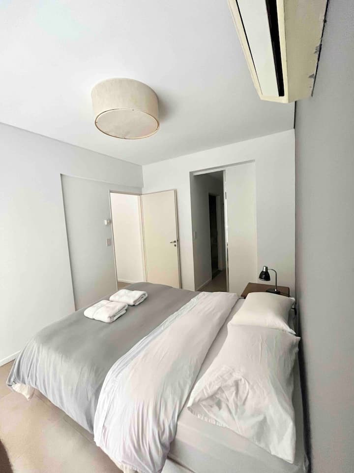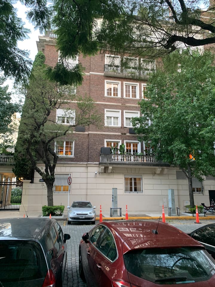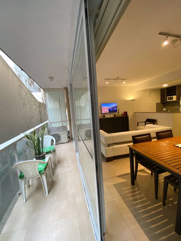 One-bedroom apartment with 55 m² and a balcony in Recoleta, between Av. Pueyrredón and Laprida. The bedroom has a queen-size bed and the living room includes a single foldable bed. The kitchen is equipped with heating, microwave, toaster, large refrigerator, coffee maker, kettle, an extendable drying rack, iron and ironing board; high-speed Wi-Fi, a 42" TV with Netflix and 2 air conditioners are also included. The building has 24-hour security, a security camera system and entry with a magnetic
