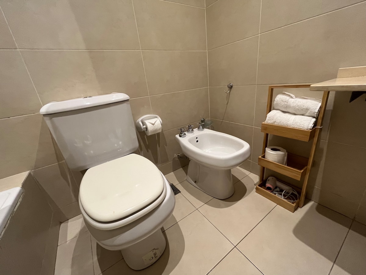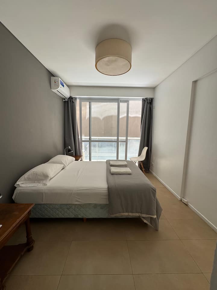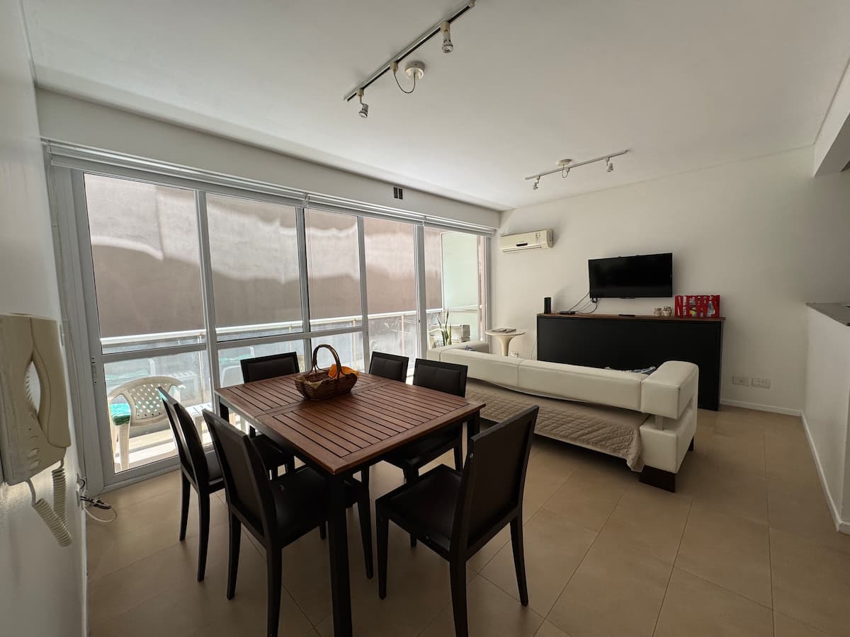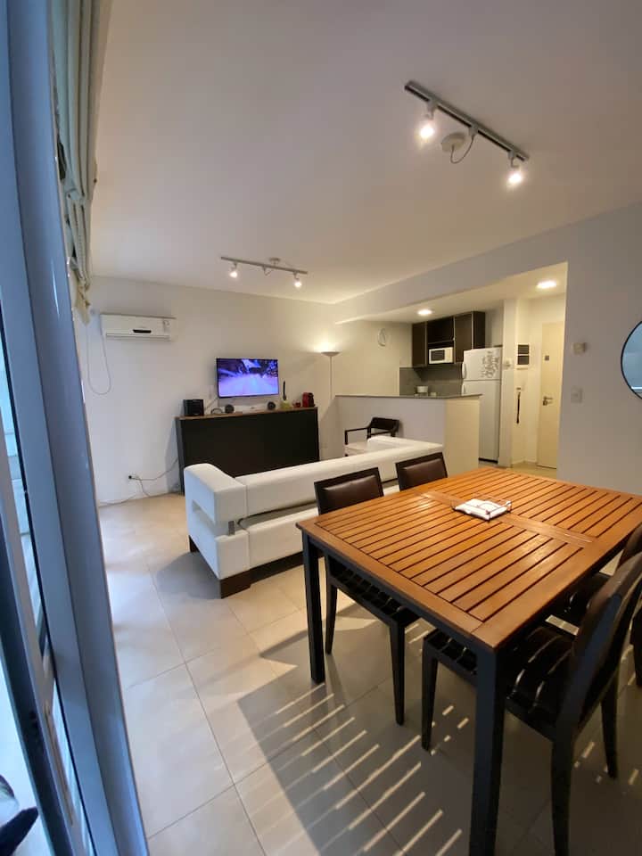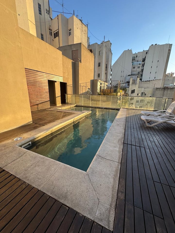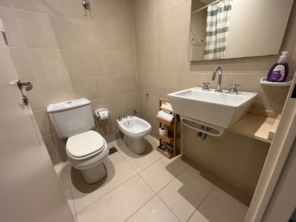 One-bedroom apartment with 55 m² and a balcony in Recoleta, between Av. Pueyrredón and Laprida. The bedroom has a queen-size bed and the living room includes a single foldable bed. The kitchen is equipped with heating, microwave, toaster, large refrigerator, coffee maker, kettle, an extendable drying rack, iron and ironing board; high-speed Wi-Fi, a 42" TV with Netflix and 2 air conditioners are also included. The building has 24-hour security, a security camera system and entry with a magnetic