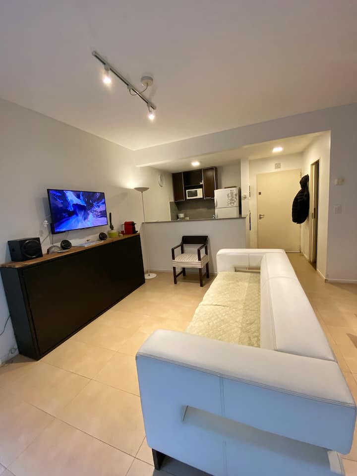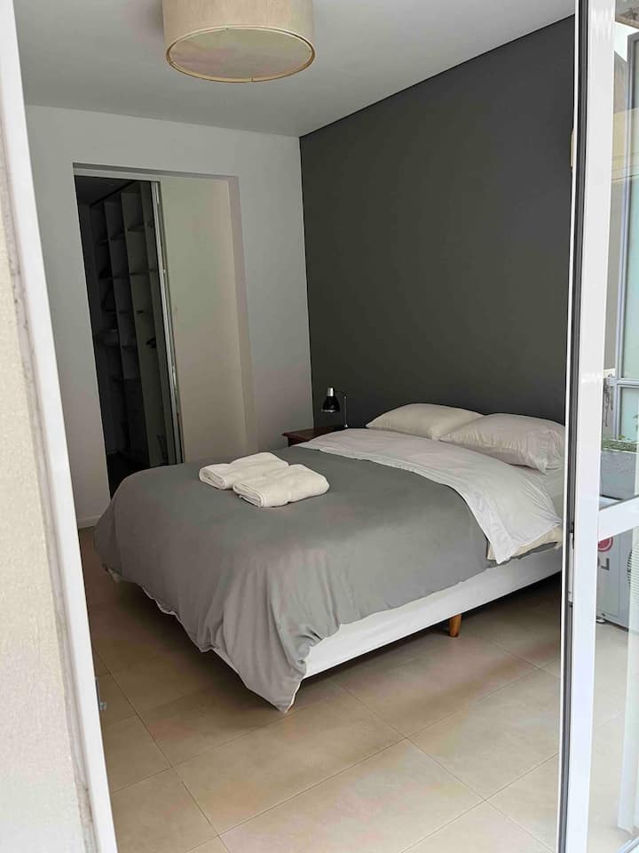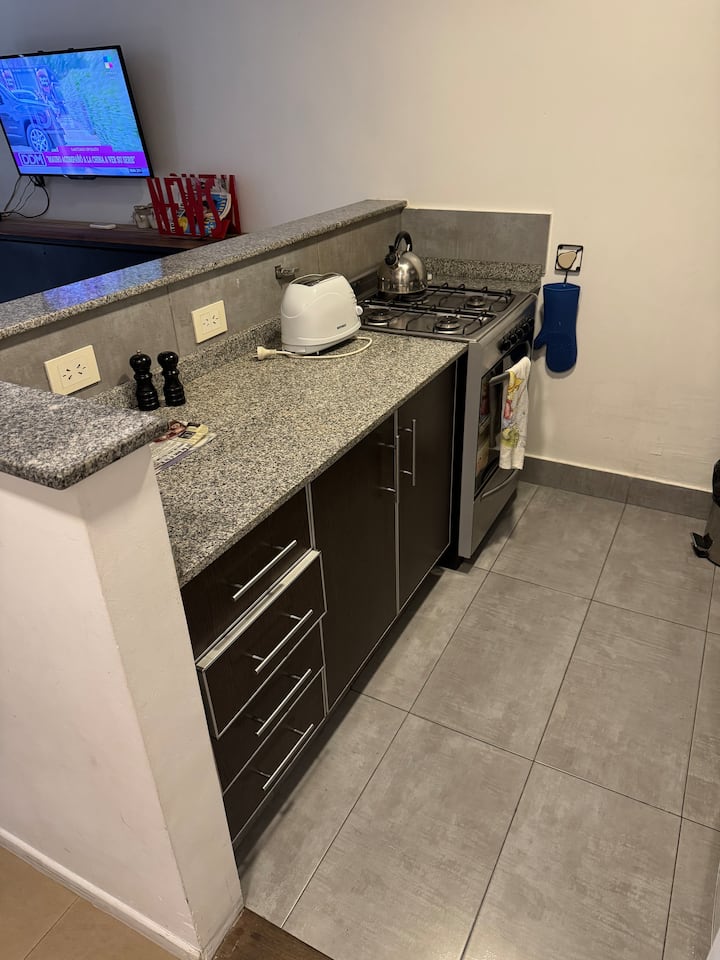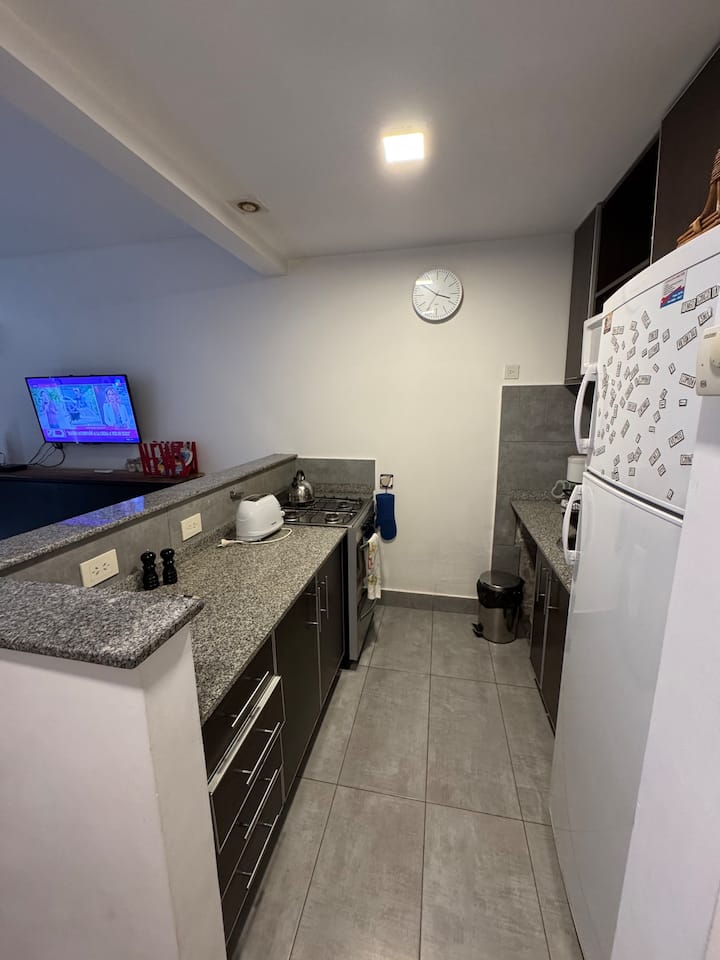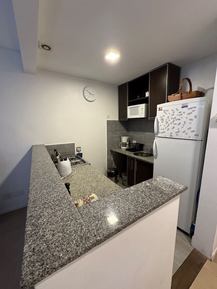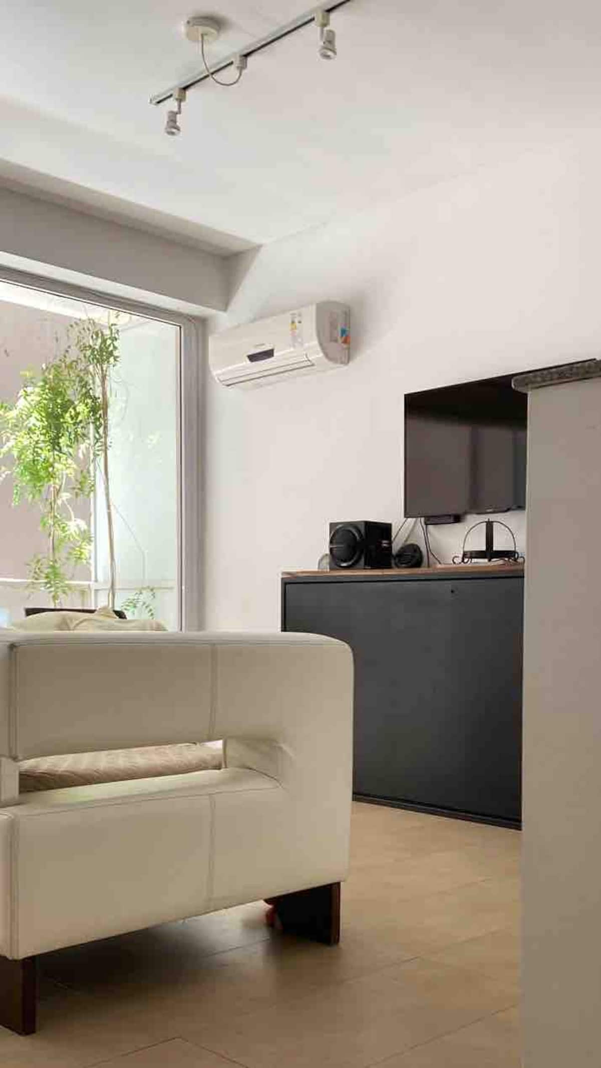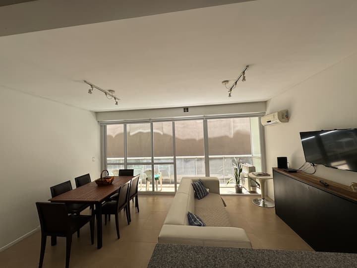 One-bedroom apartment with 55 m² and a balcony in Recoleta, between Av. Pueyrredón and Laprida. The bedroom has a queen-size bed and the living room includes a single foldable bed. The kitchen is equipped with heating, microwave, toaster, large refrigerator, coffee maker, kettle, an extendable drying rack, iron and ironing board; high-speed Wi-Fi, a 42" TV with Netflix and 2 air conditioners are also included. The building has 24-hour security, a security camera system and entry with a magnetic