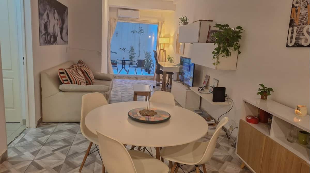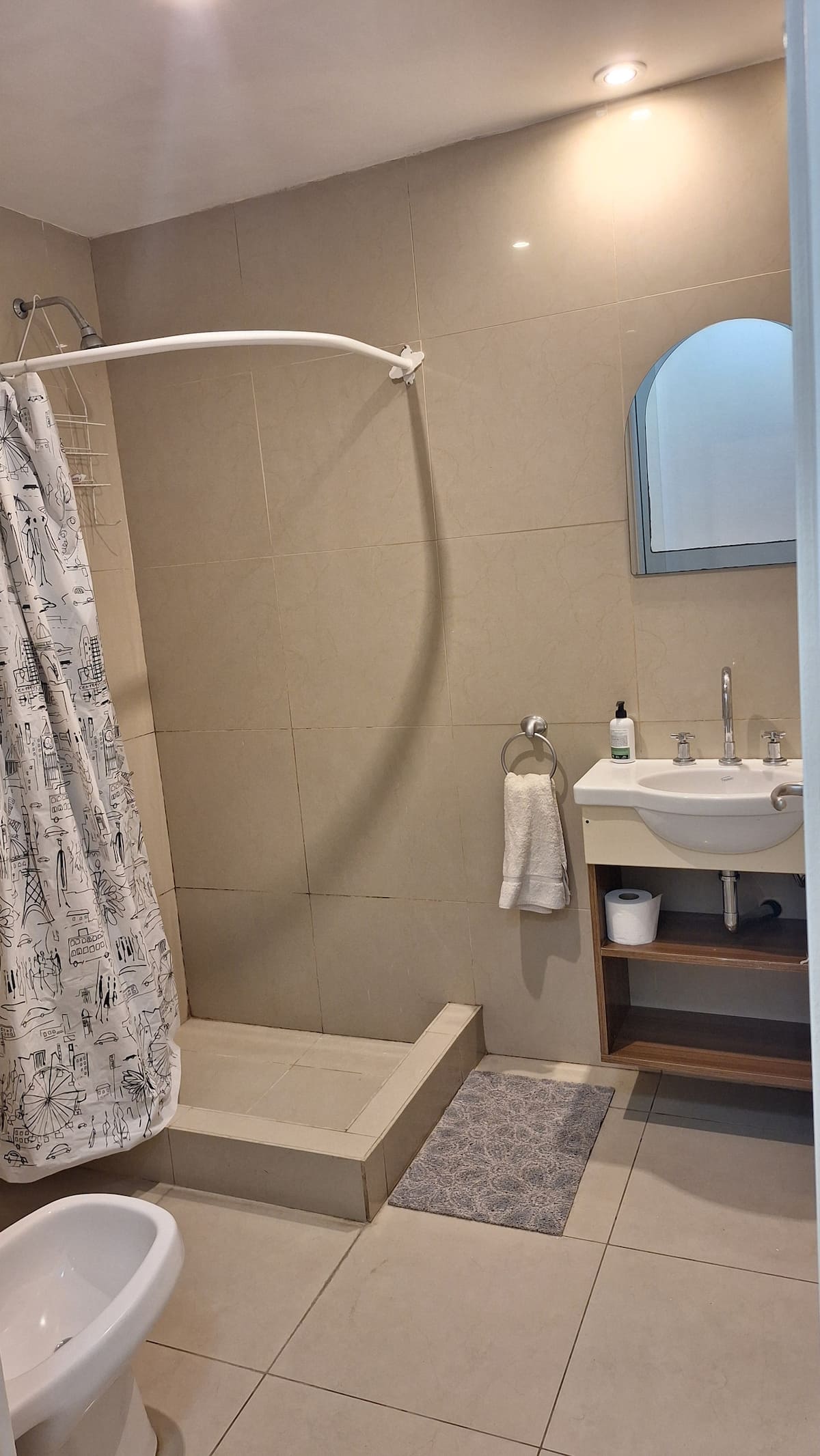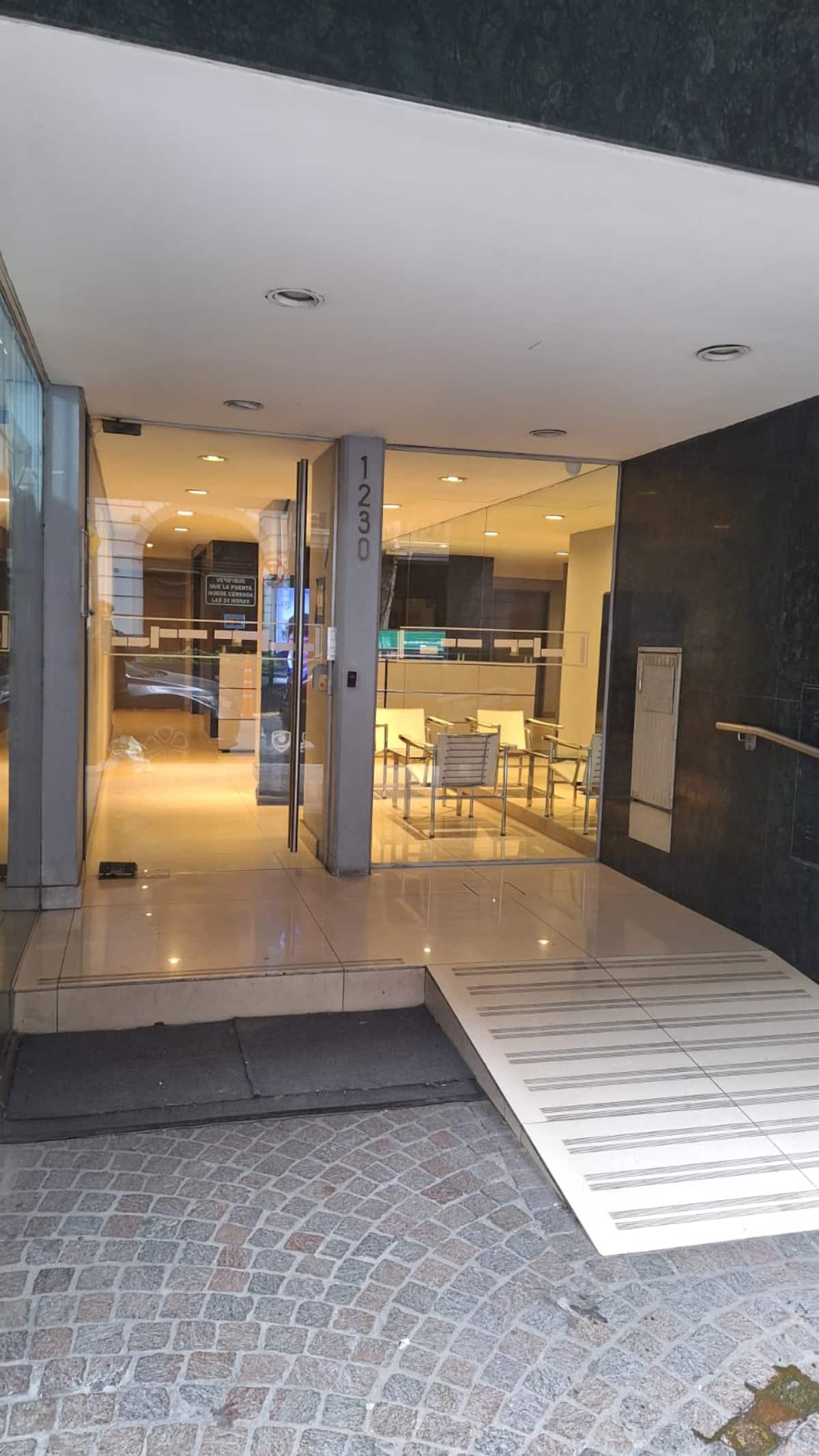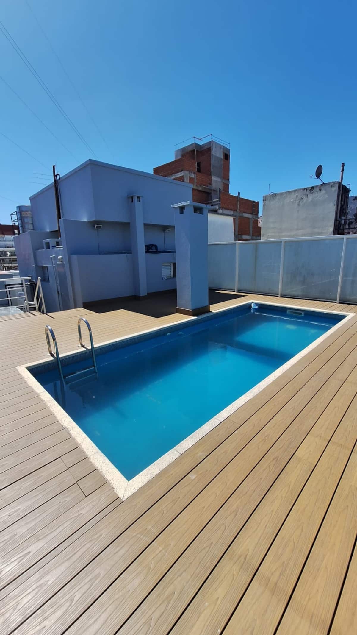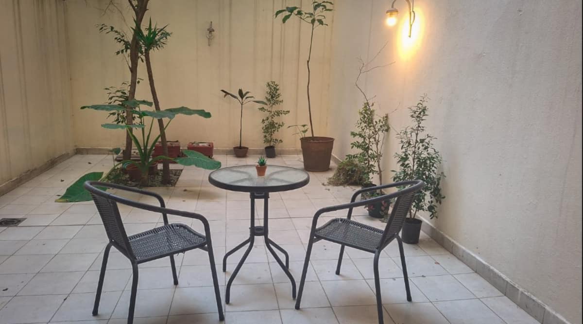Two-room apartment in Recoleta with a private patio. Fully furnished with WiFi, Flow TV and air conditioning. The listing notes multiple entrances and a quiet environment; the pool is closed for the season.