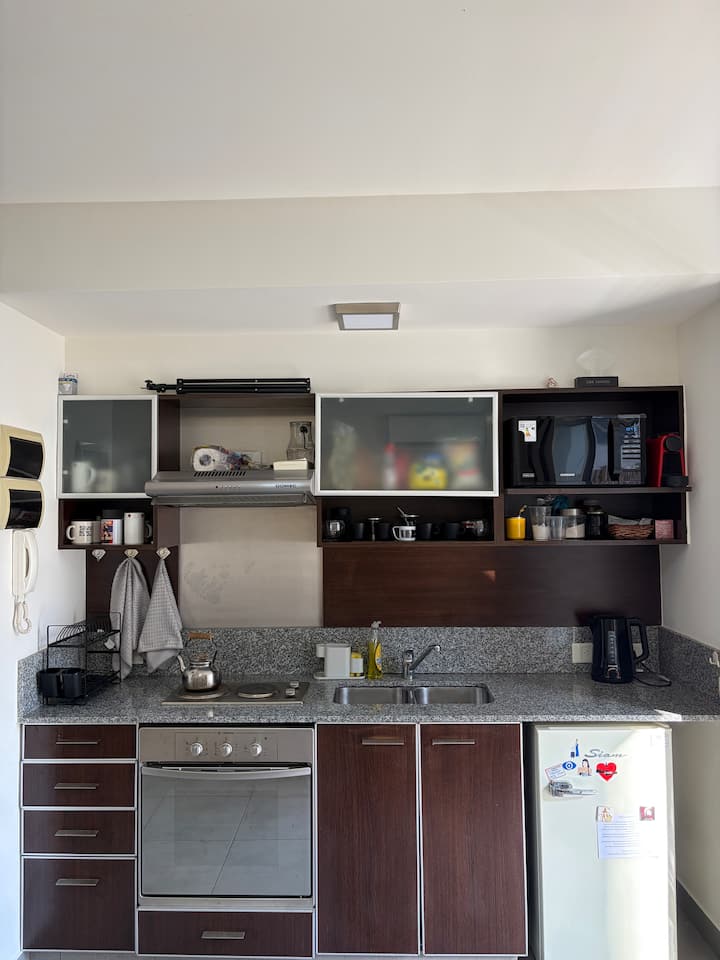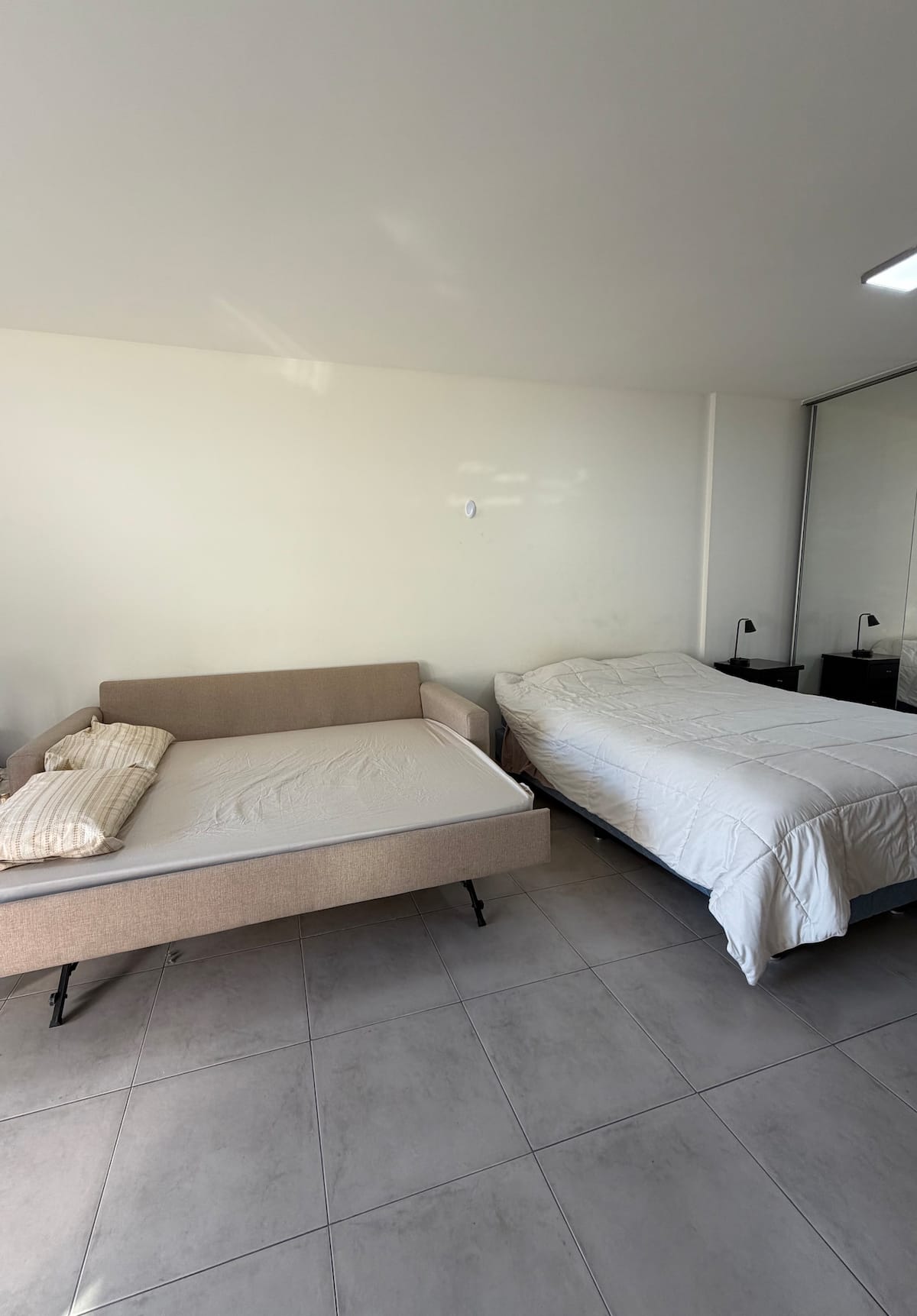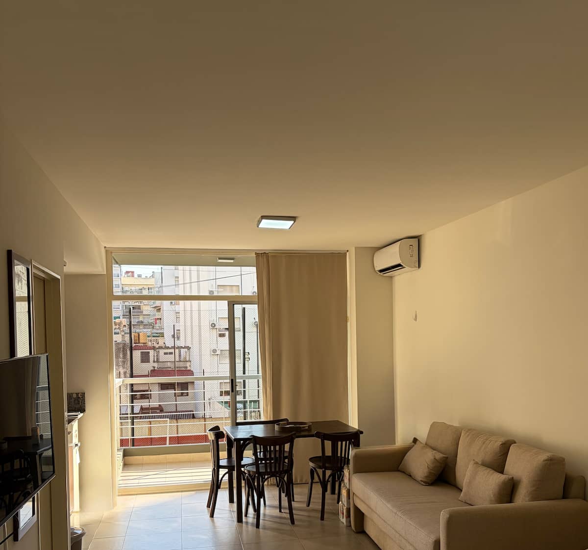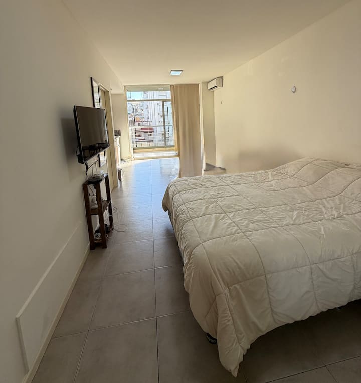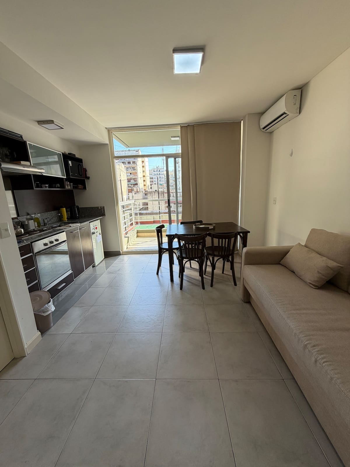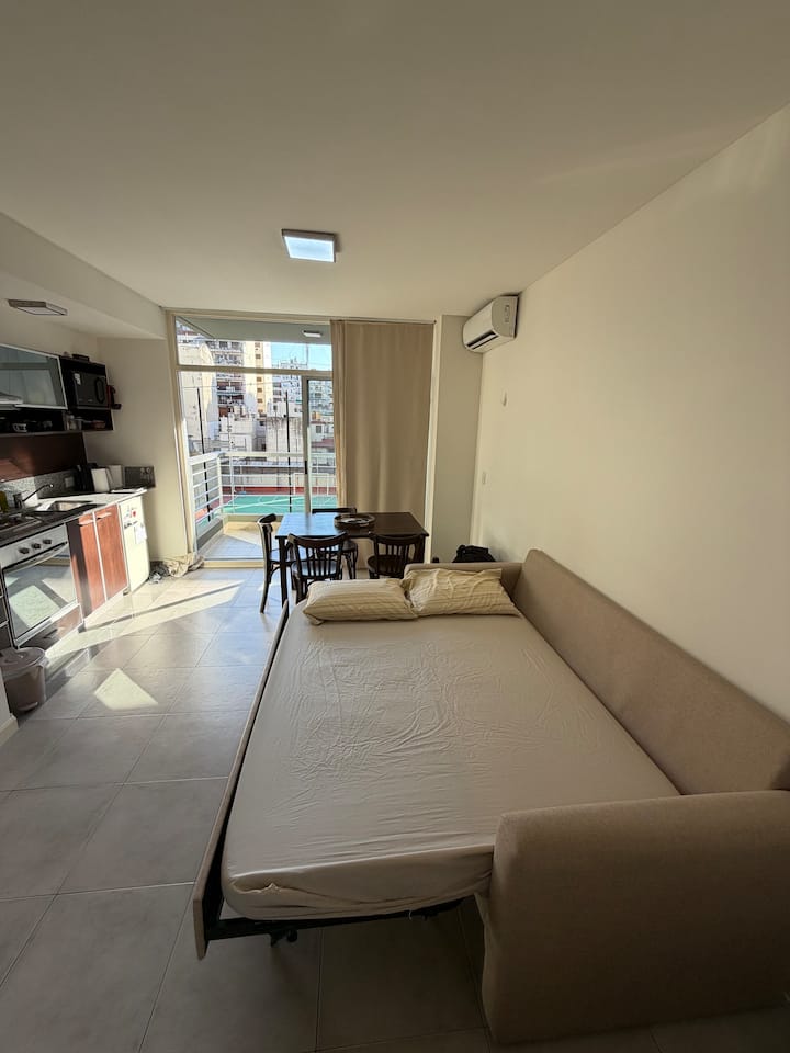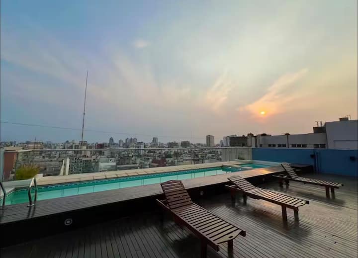 One-bedroom apartment in Recoleta with a living/dining room, a balcony, and a workspace. Fully equipped kitchen with oven, microwave, dishwasher, refrigerator with freezer, coffee maker, toaster and electric kettle. Cable TV, high-speed WiFi, and a bathroom with bathtub; furnished with a premium smart bed and a two-seater sofa bed in the living room. The building has security, a rooftop pool, solarium, gym, sauna and paid laundry facilities, with parking inside the building available for an addi