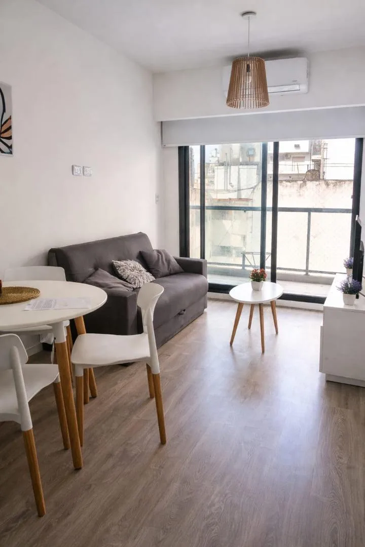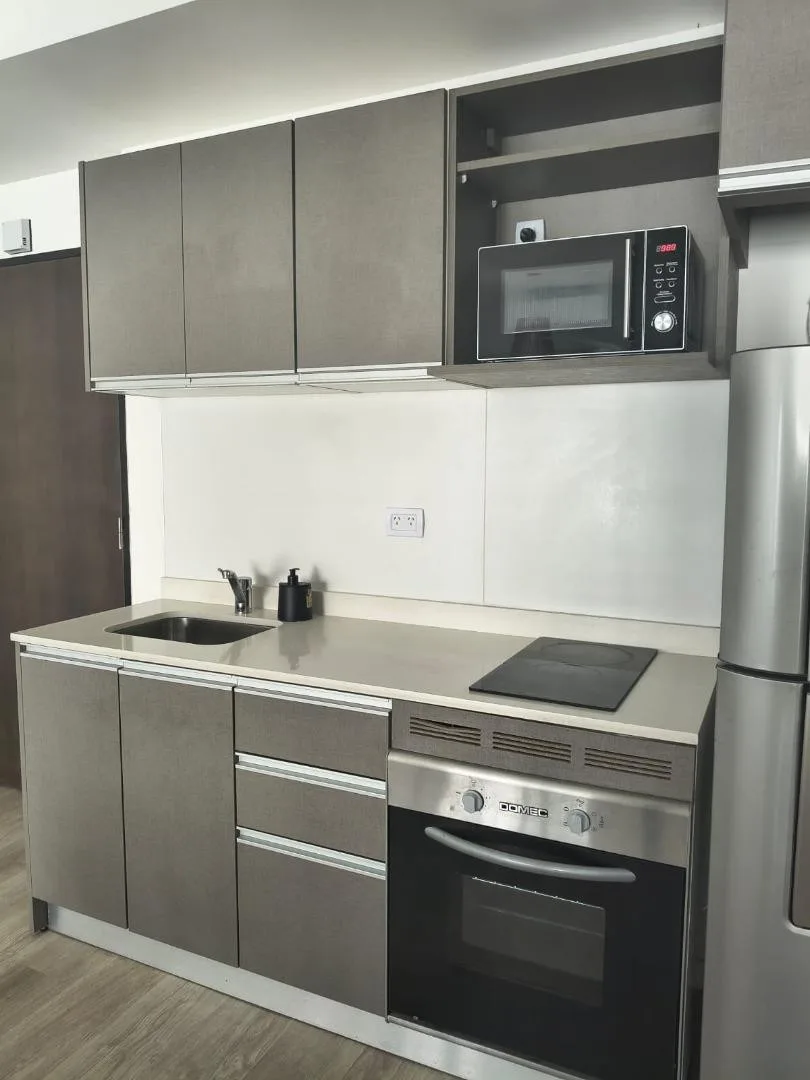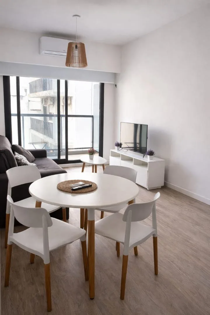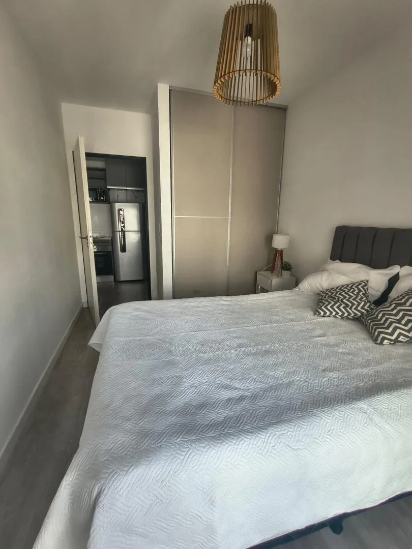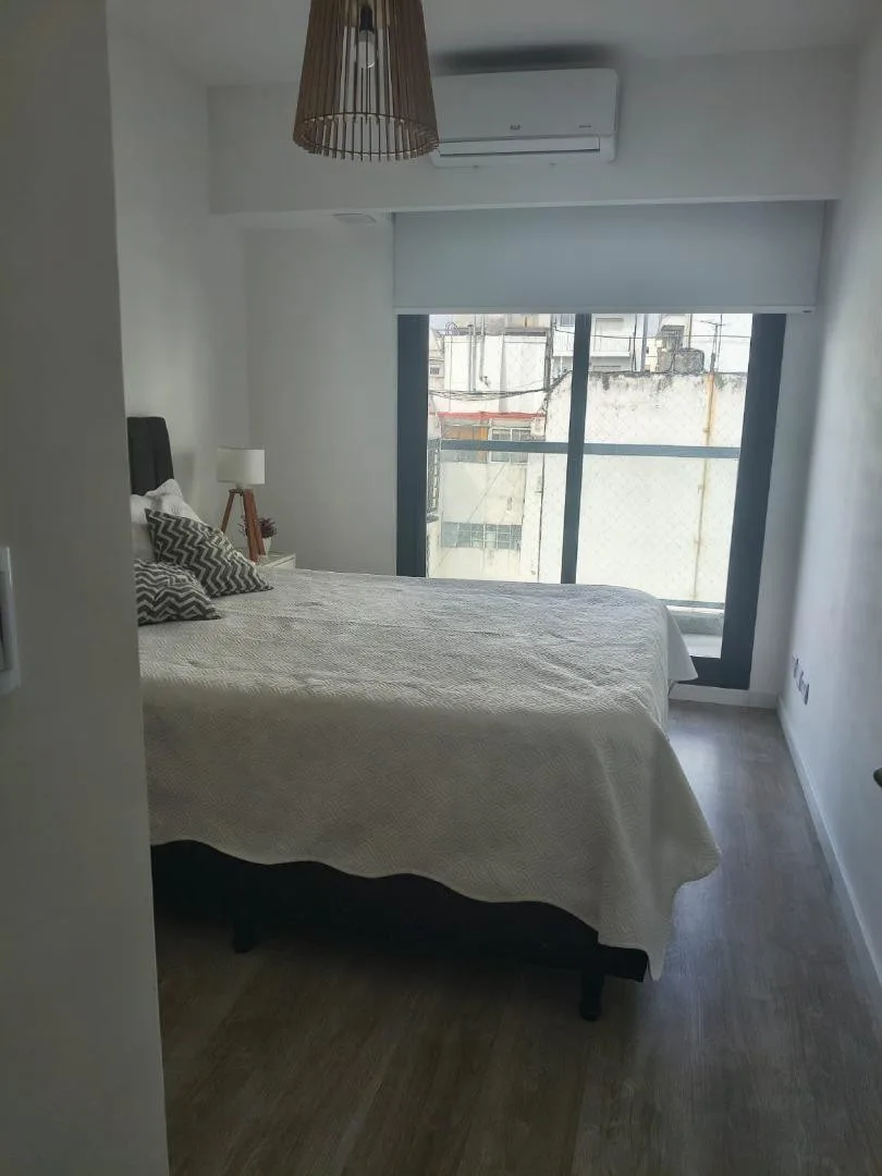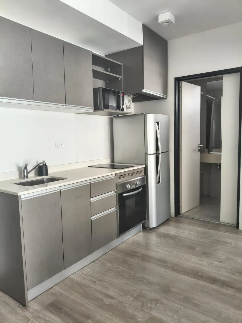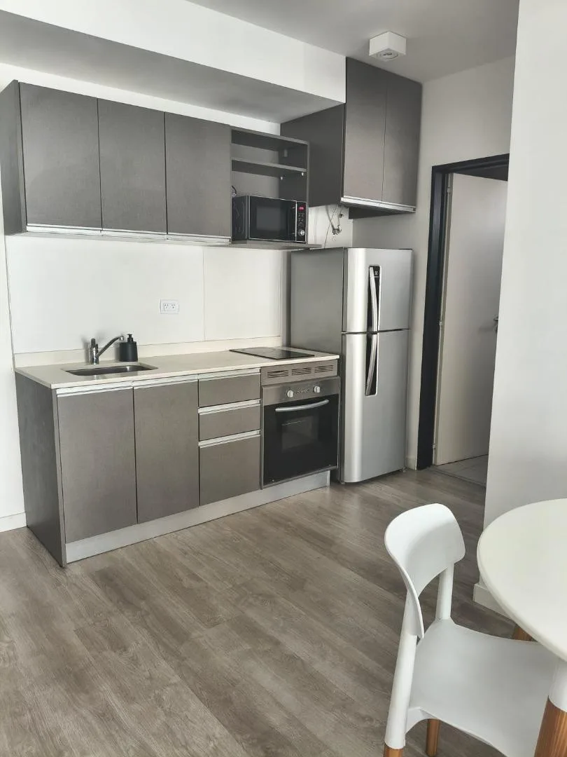 Furnished two-room apartment in Recoleta with 1 bedroom, a living-dining area and a balcony. The integrated kitchen includes an electric oven and a vitroceramic cooktop. It has a full bathroom with a bathtub, a bedroom with built-in wardrobe and access to a balcony, electric hot water via a rapid-recovery electric water heater, and split air conditioning (heating and cooling). The building offers a pool, communal room (SUM), grill area, and laundry, with an entry hall, 2 elevators, and a securit
