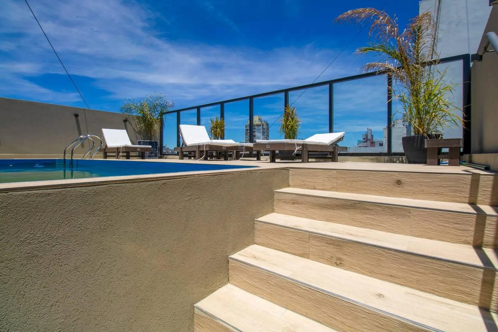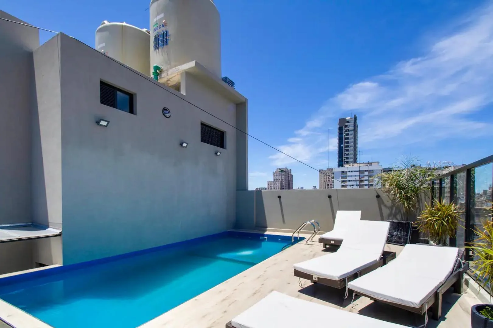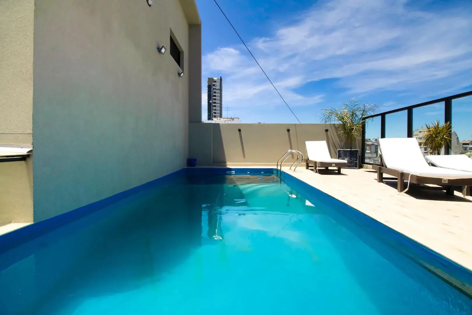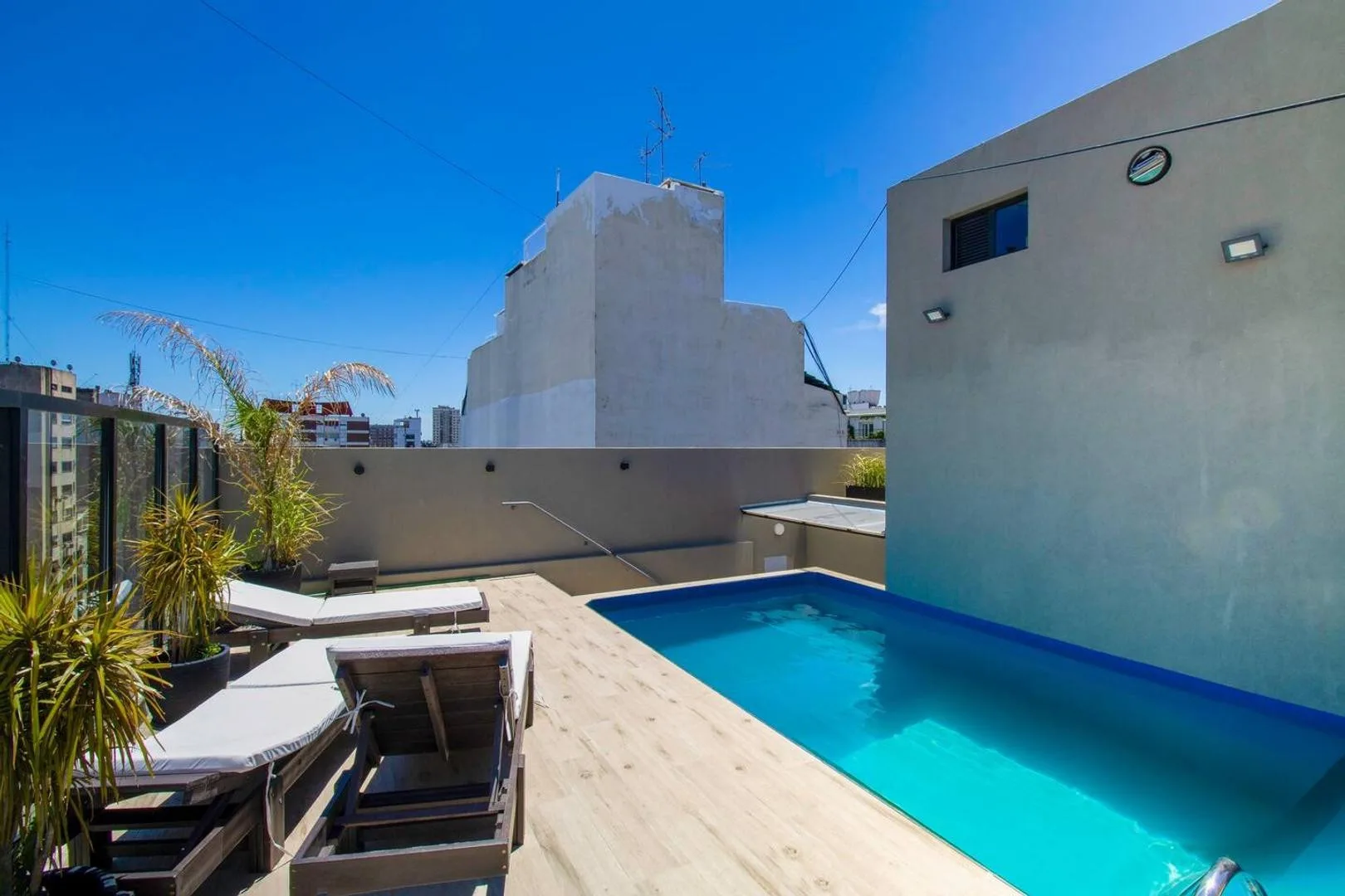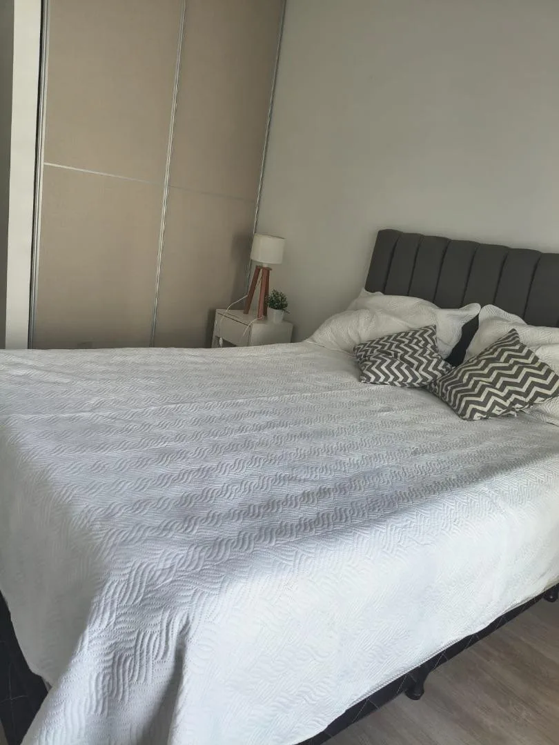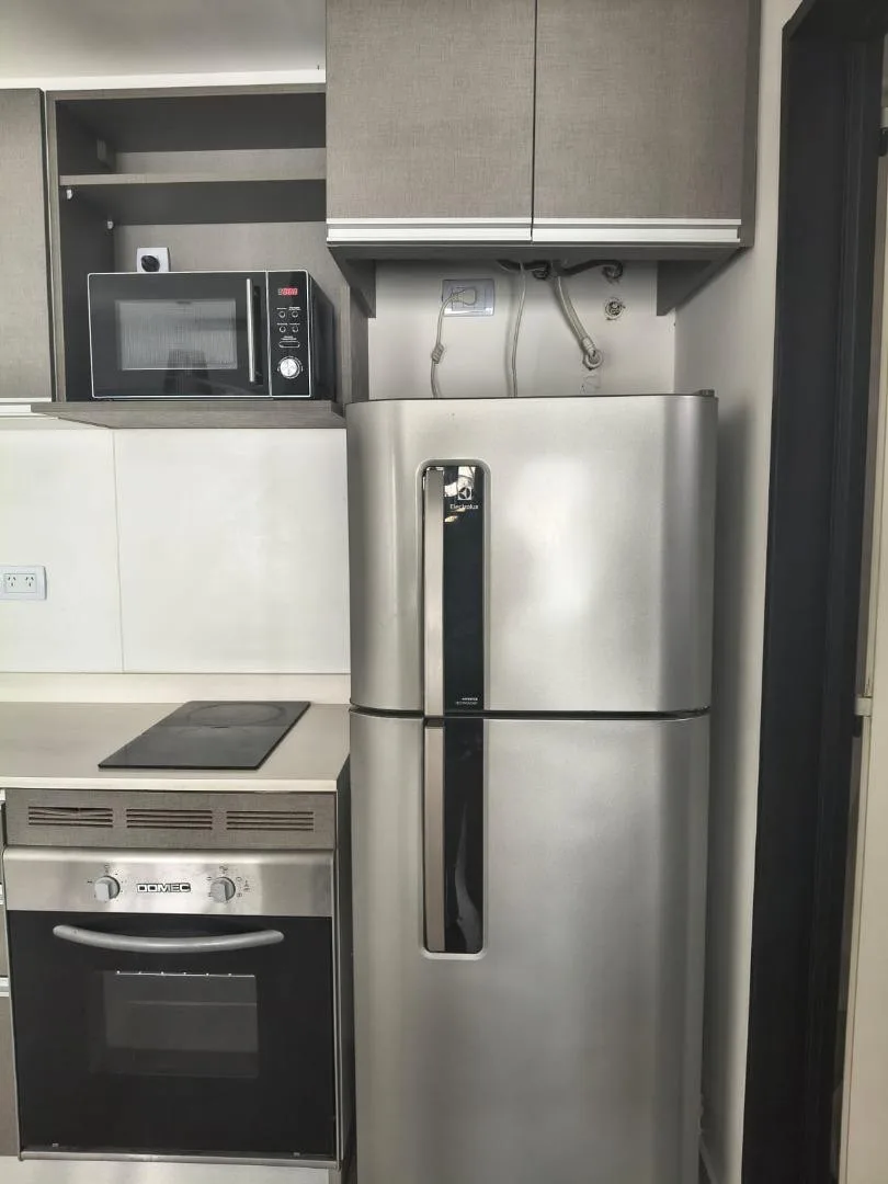 Furnished two-room apartment in Recoleta with 1 bedroom, a living-dining area and a balcony. The integrated kitchen includes an electric oven and a vitroceramic cooktop. It has a full bathroom with a bathtub, a bedroom with built-in wardrobe and access to a balcony, electric hot water via a rapid-recovery electric water heater, and split air conditioning (heating and cooling). The building offers a pool, communal room (SUM), grill area, and laundry, with an entry hall, 2 elevators, and a securit
