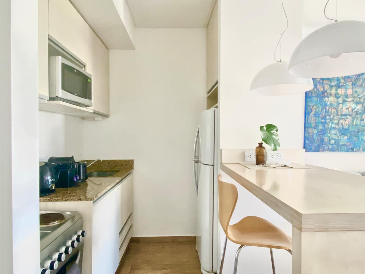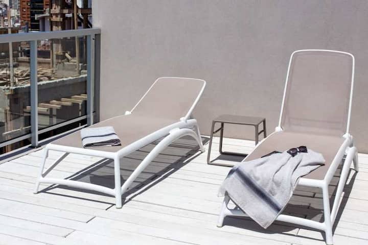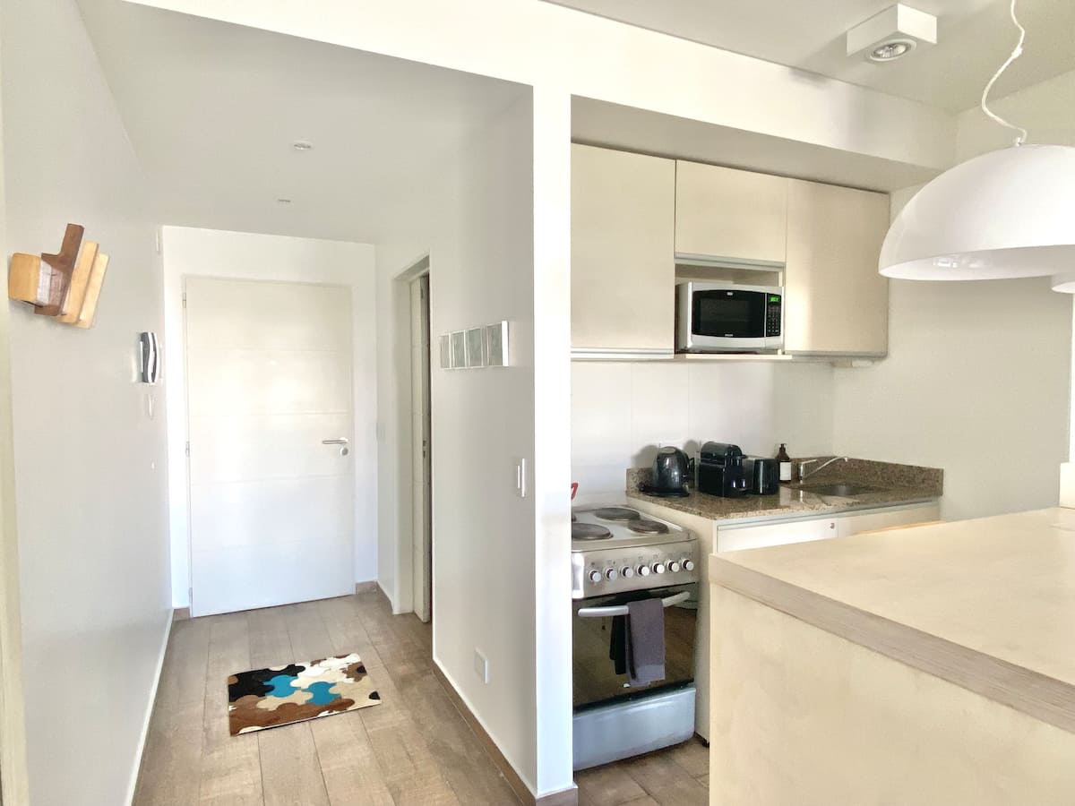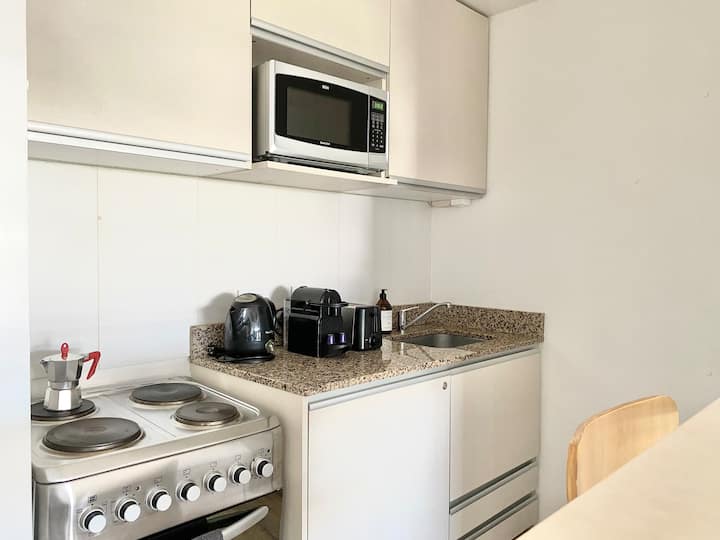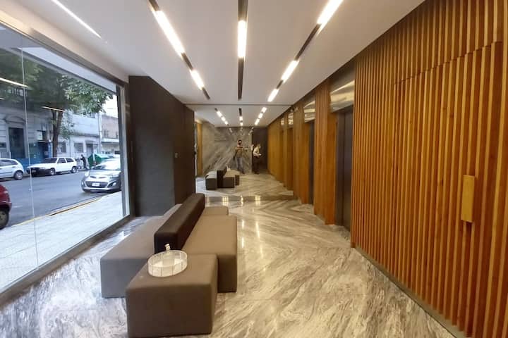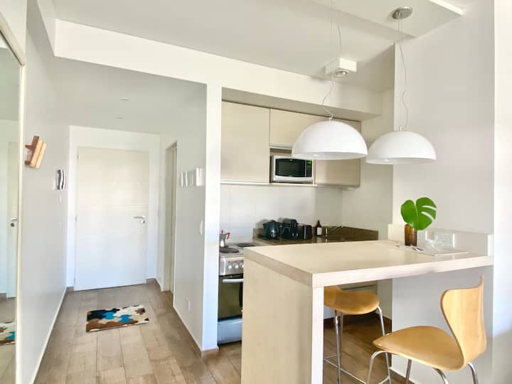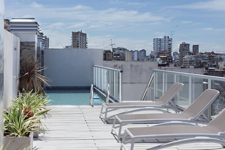 Studio apartment in Recoleta. Fully equipped unit with a washing machine. Building amenities include a gym, terrace, pool and 24-hour security with video surveillance at the entrance.