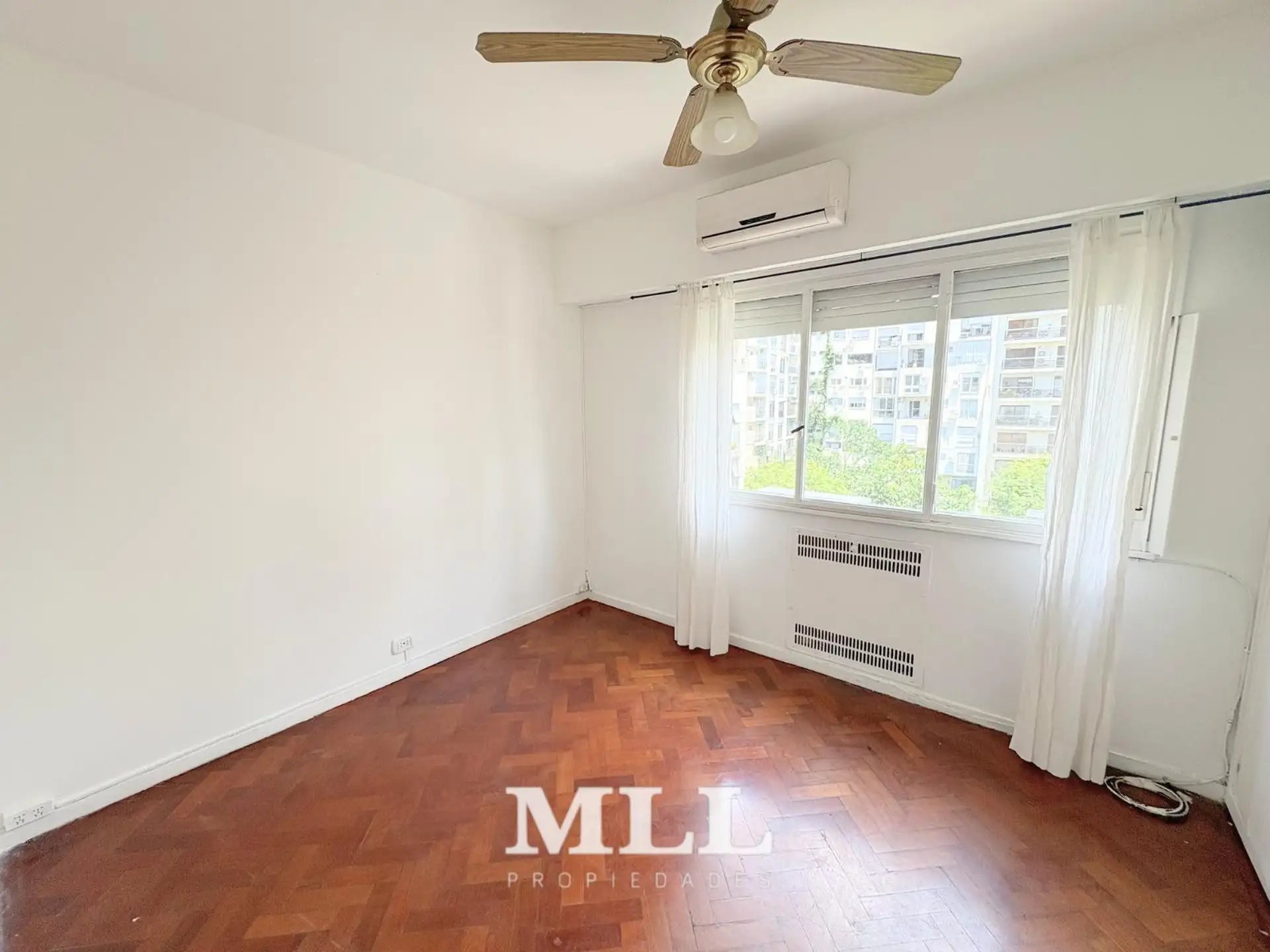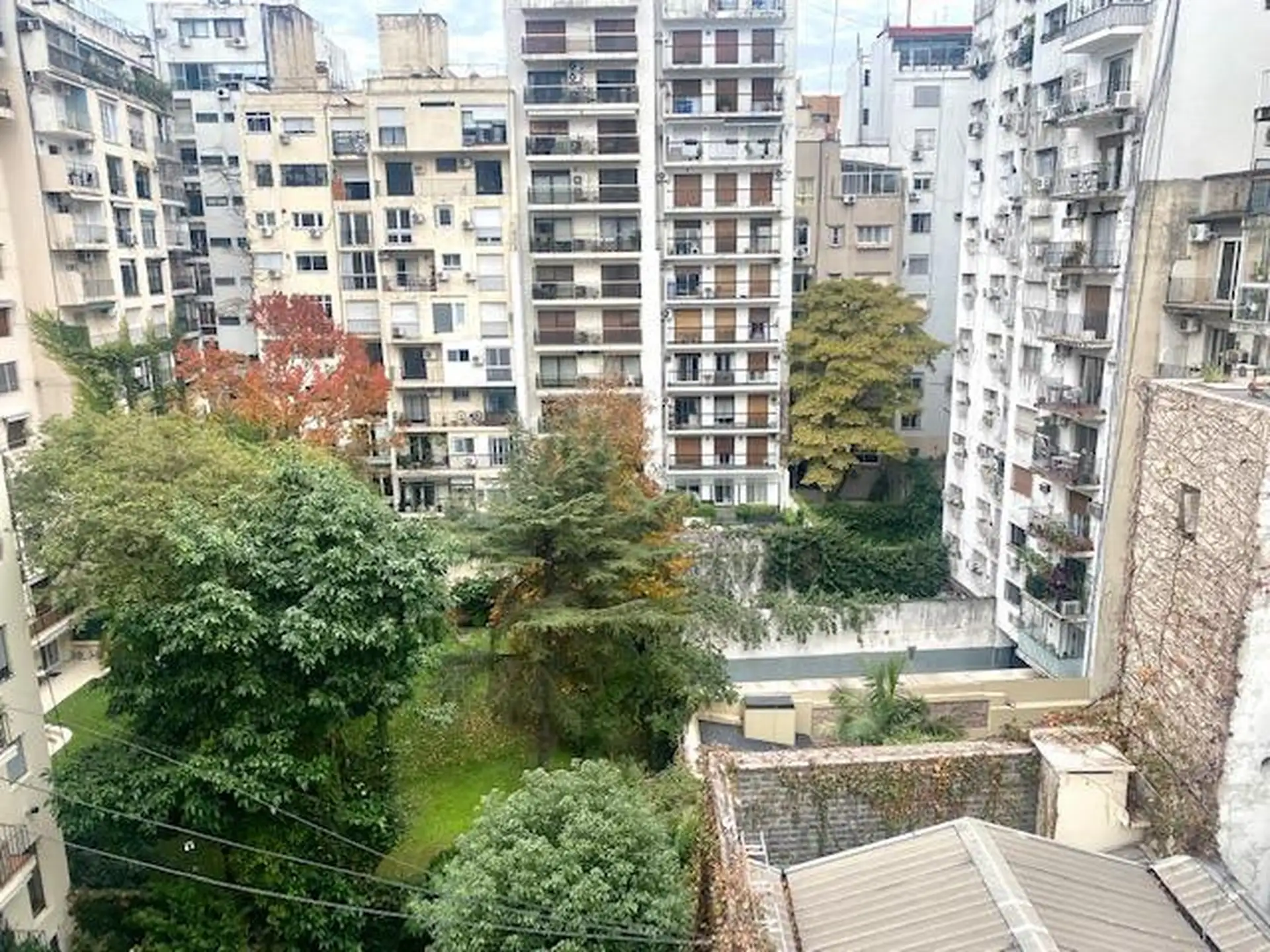 One-bedroom apartment in Recoleta on the 7th floor, courtyard-facing with a view of gardens. The unit has a distribution hall, living-dining room with a fireplace, a bedroom with built-in wardrobes, a full bathroom and a small kitchen. Parquet floors are installed. The building offers 24-hour security, a laundry area on the ground floor with 3 washing machines and 3 dryers, a gym and a solarium on the rooftop. Expensas are approximate. Rental requirements include a guarantee in CABA or a first-t
